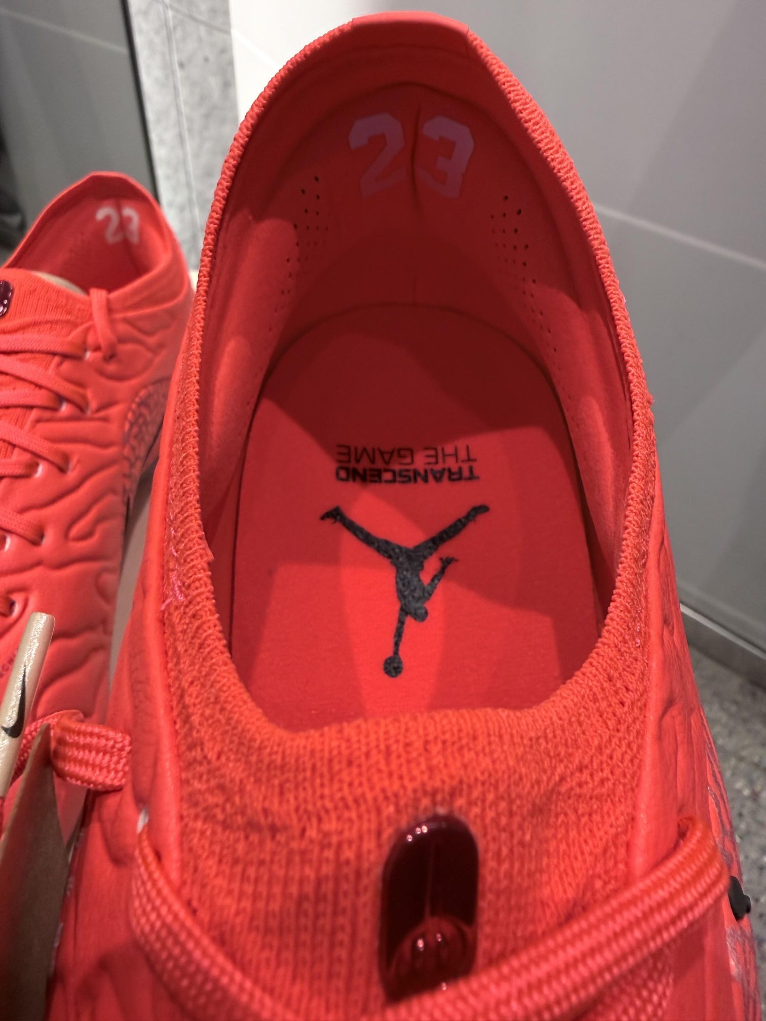灵感来自足球场激情与荣耀,鞋面红色+飞人Logo,辨识度超高🔥。鞋面纹理设计,抓地力和触球感都很棒,适合高强度比赛。鞋底多颗鞋钉,草地抓地力强,运动表现更稳✨。不仅实用,还很有收藏价值,足球迷和球鞋控都别错过!