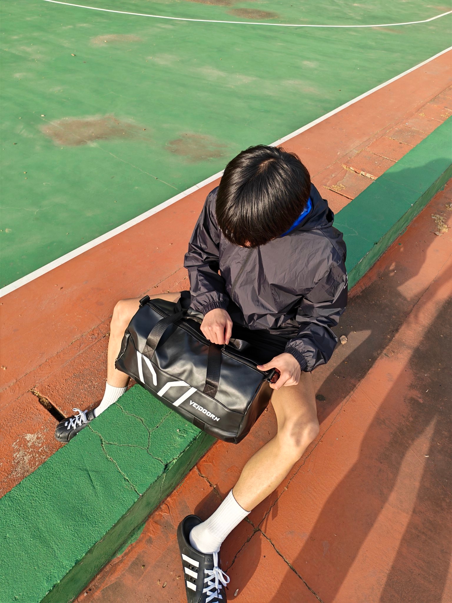 今日分享: 终于放假啦!打球去咯!给大家分享我的球场装备! VEIDOORN 运动包,这个颜值,真的帅气!pu材质防水,雨天也不容易打湿!这款背包,容量也挺大!放衣服和鞋子,没啥问题!目前,价格也挺合适,值得推荐啊! 篮球包