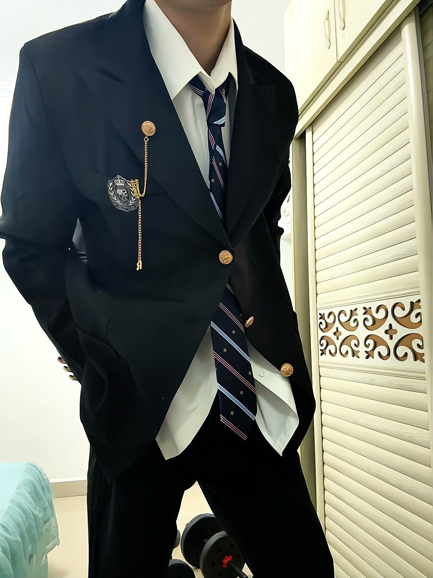 这一身DK制服穿搭质感超绝,白衬衫搭配藏青条纹领带,简约中透着精致,肩上随性搭着的外套再加上黑金腕表的点缀,整体look干净又利落,少年感拉满,还透着一股清爽的贵气!#制服穿搭 #DK制服西装