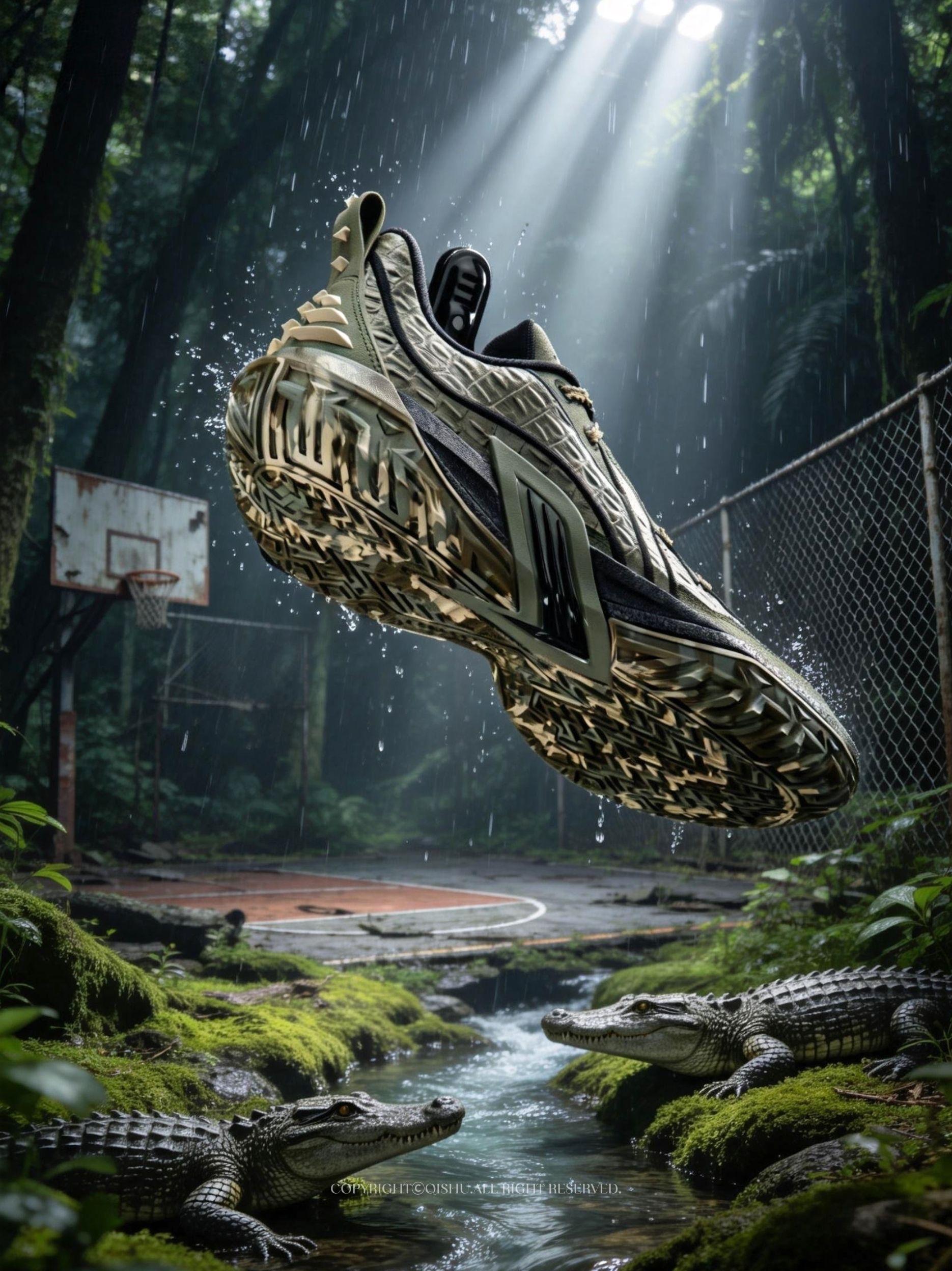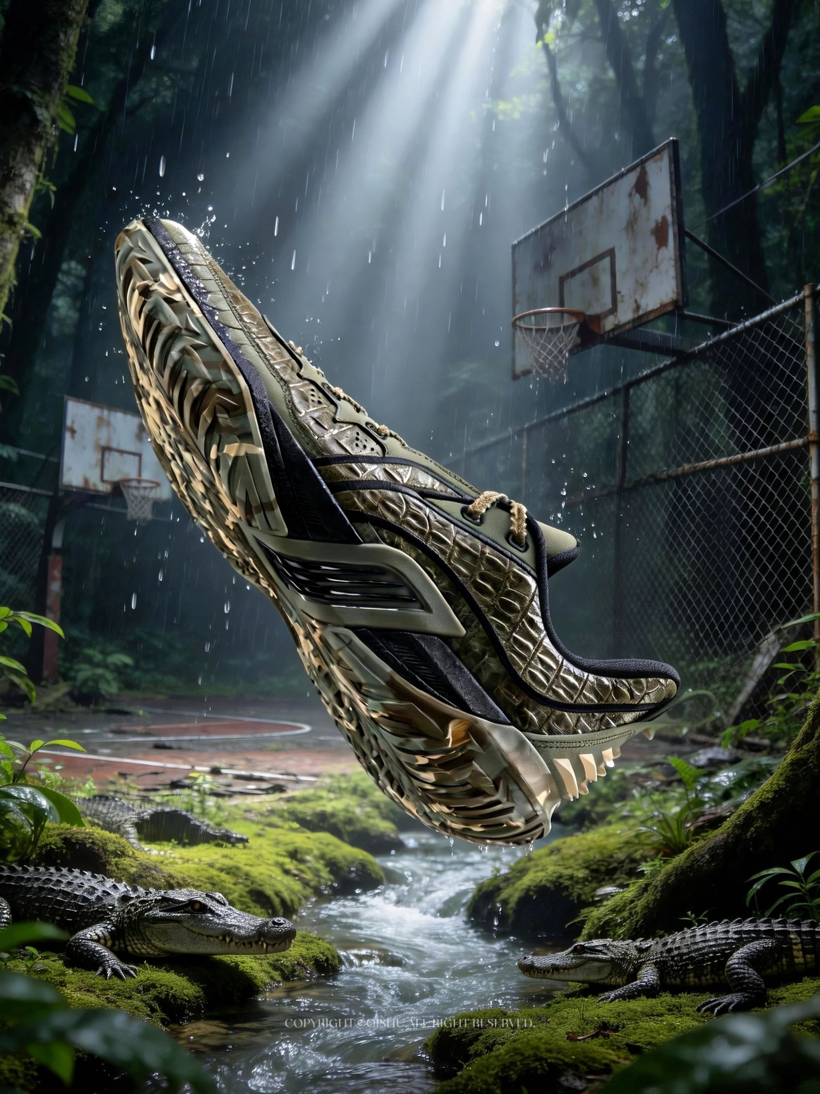 桀骜3「尼罗鳄」配色直接给鞋面贴上了鳄鱼皮革,纹路凹凸有致,非常符合外场“野兽”这个称号,鞋舌还藏了只鳄鱼眼,闪卡材质,角度一变它就像在瞪你——穿它打球,对手可能不是被晃倒的,是被盯毛的。 军绿迷彩加做旧处理,整双鞋透着“别惹我”的气场。配置也升级了,全掌䨻+超临界鞋垫,韧弹到位;三维TPU增强了整体的稳定性;TUFF OS大底纹路深基本不打滑,外场水泥地随便造。 想找一双长得凶、穿得稳、还不心疼...