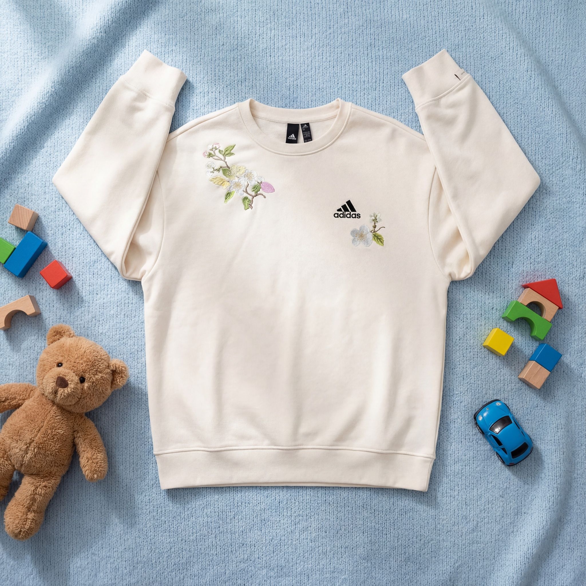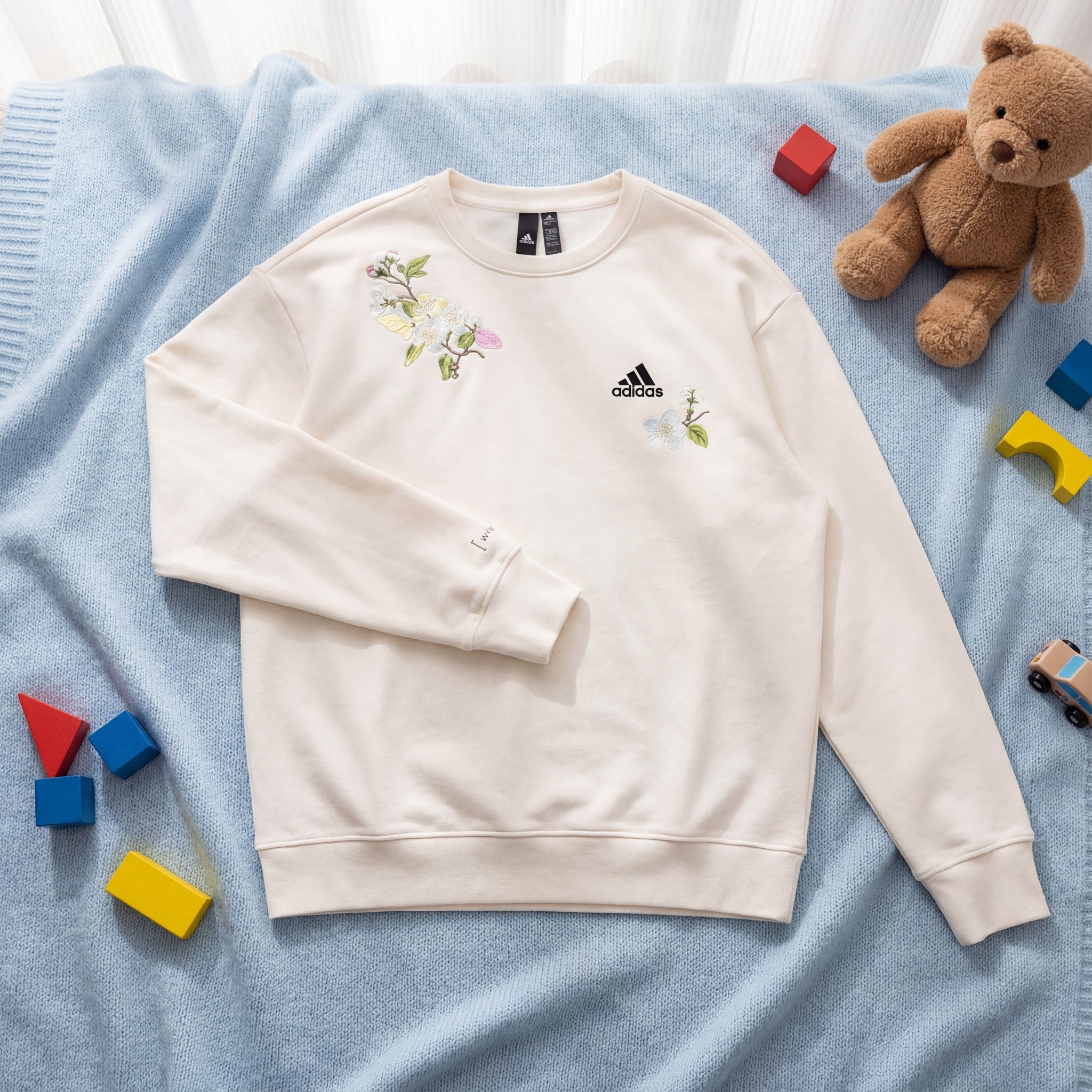 奶fufu的米白色真的太治愈了!我这件阿迪达斯卫衣完全长在审美上,基础圆领+宽松版型,不挑身材不挑风格,不管是搭牛仔裤、运动裤还是半身裙,都能轻松穿出松弛感。 我觉得最绝的就是这个精致的花卉刺绣,针脚细腻、花色清新,给简约的运动款注入了满满的春日温柔感,甜而不腻,甜酷风、休闲风都能驾驭。面料软乎乎的,亲肤又透气,春秋单穿清爽,冬天内搭也不臃肿,日常通勤、约会、逛街穿都合适,属于那种衣柜里常备、...