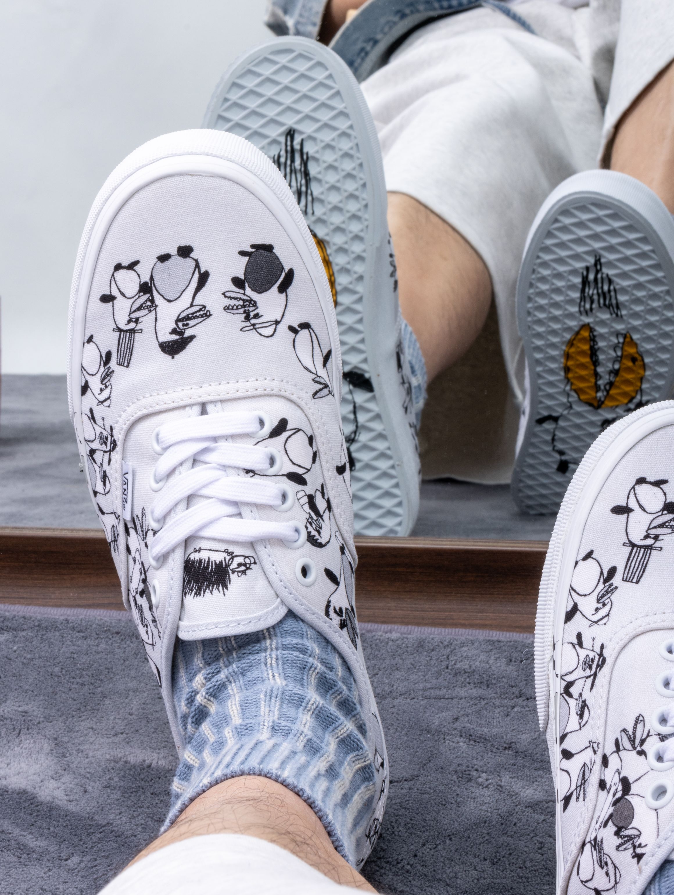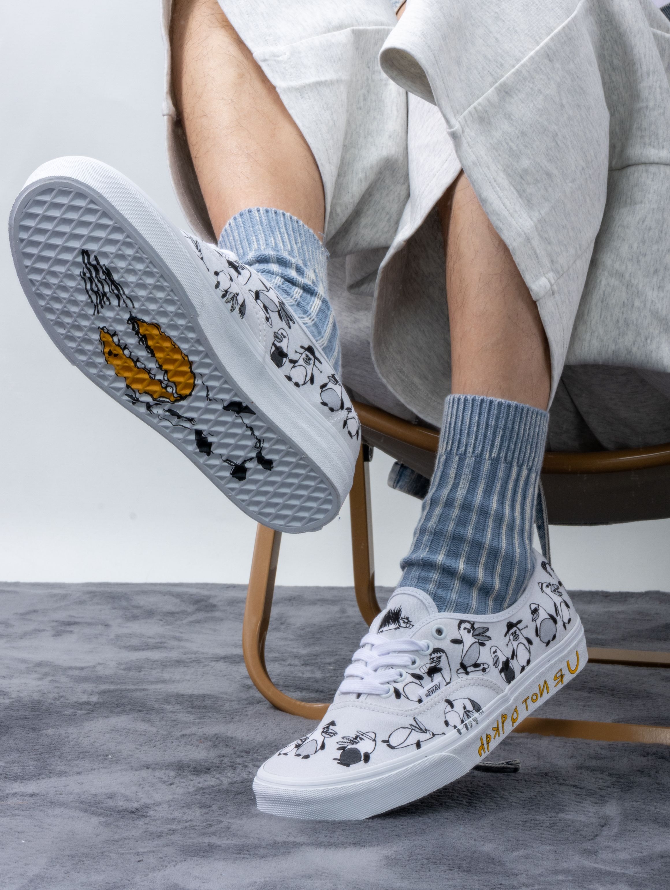 RIROO这双白色Authentic,第一眼看以为是基础款,凑近才发现鞋面藏着刺猬和企鹅的手绘插画。穿上走了几天,帆布柔软不磨脚,后跟贴合度刚好。 鞋底包边刻的那句“U R NOT .. QKQH”——在韩文键盘打QKQH就是“바보(傻瓜)”,艺术家想告诉你:“你不是傻瓜。”Riroo的灵感就来自她那些为了生活放下滑板的朋友,她说:“别停下,继续向前。” 有故事又有温度的一双鞋,白色百搭不挑人...