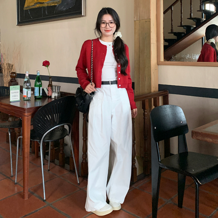 显白到发光的复古酒红色,黄皮姐妹直接闭眼冲! 短款版型巨显腿长,藏肉又显瘦, 软糯针织面料,贴身穿超舒服, 春天配吊带、夏天当防晒、冬天内搭, 一年四季都能穿, 随便搭条牛仔裤就很有氛围感, 约会通勤穿都美到犯规, 还没入红开衫的姐妹,这件直接冲!