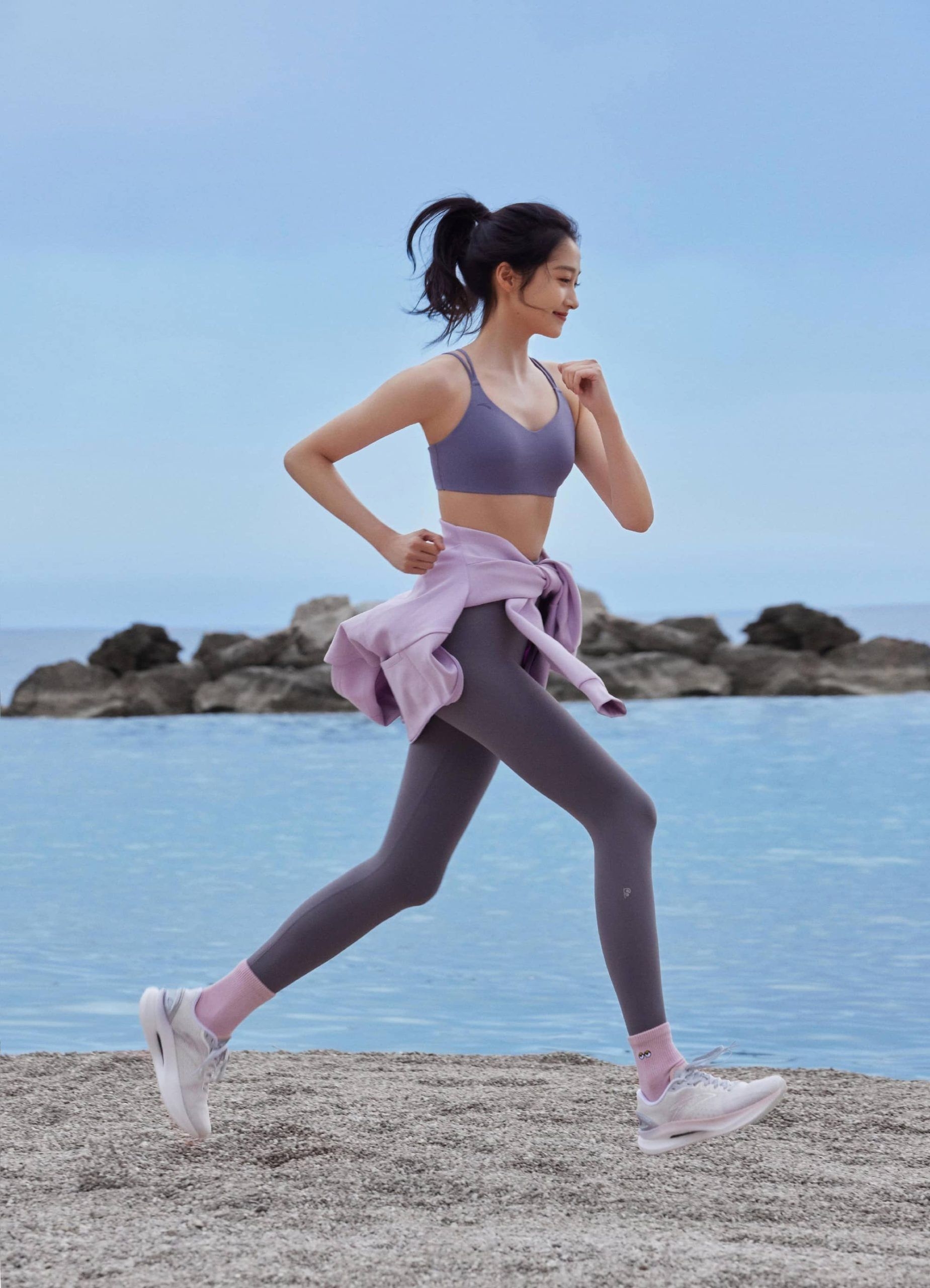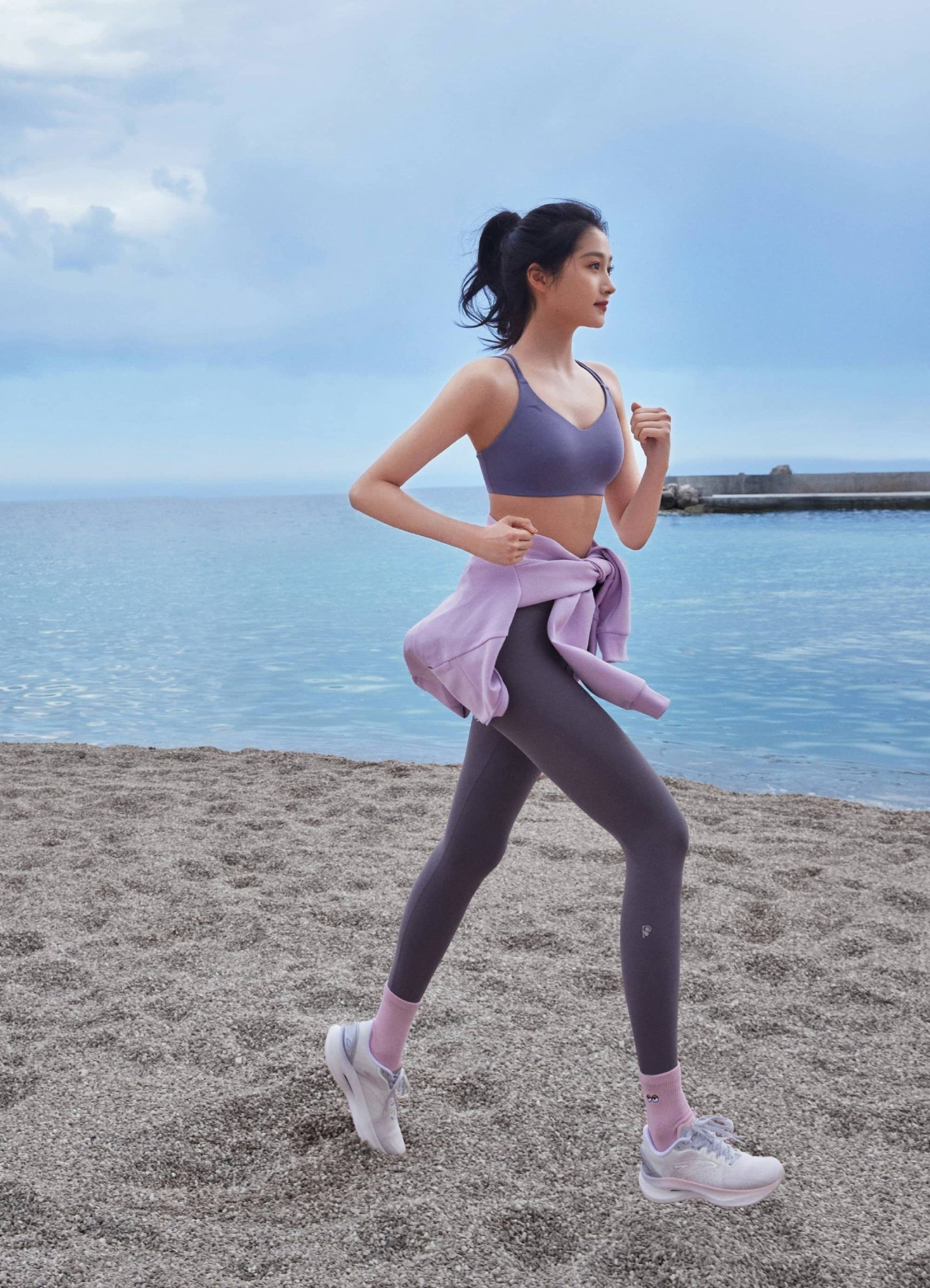 海边运动穿搭就跟着关晓彤一起get同款活力吧!🌊 关晓彤这身安踏运动装备,完美演绎了舒适与时尚的结合。香芋紫运动内衣搭配深灰色高腰紧身裤,勾勒出流畅身形,露出一抹健康马甲线,清新又充满力量。浅粉长袜与白色运动鞋的点缀,让整体色调柔和又亮眼。 迎着海风,在蓝天白云下舒展身体,无论是单腿平衡还是屈膝拉伸,这身衣服都给了最大的自由度。户外运动既要穿得舒服,也要穿得好看,安踏这套运动穿搭真是恰到好处—...