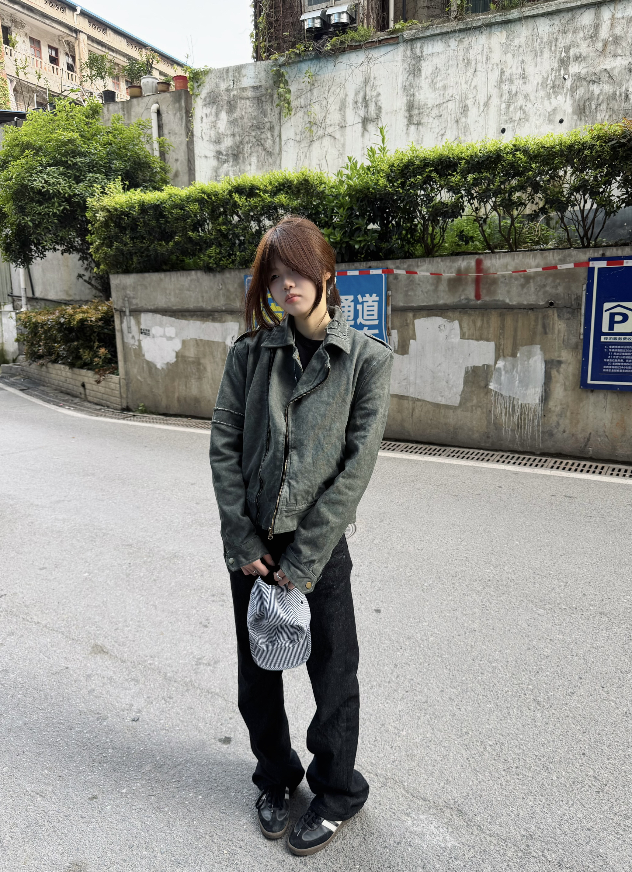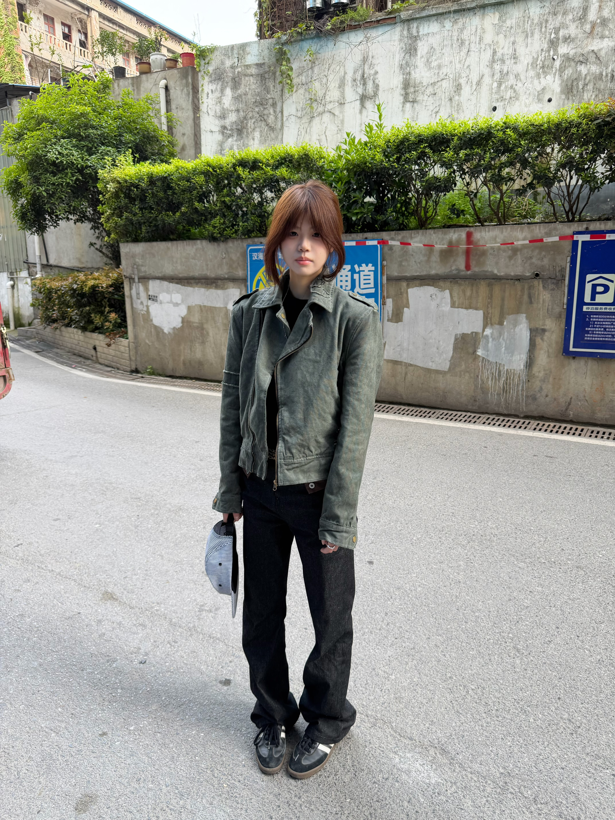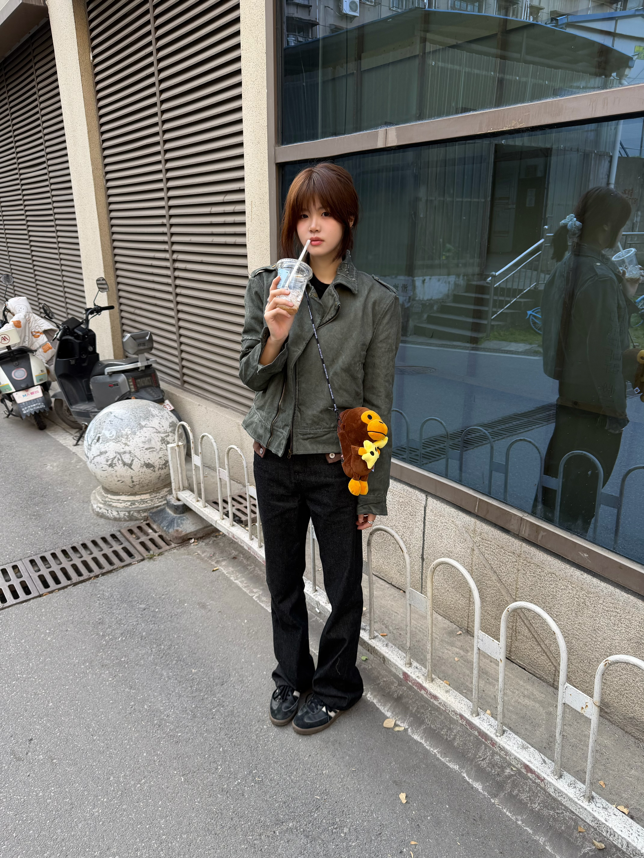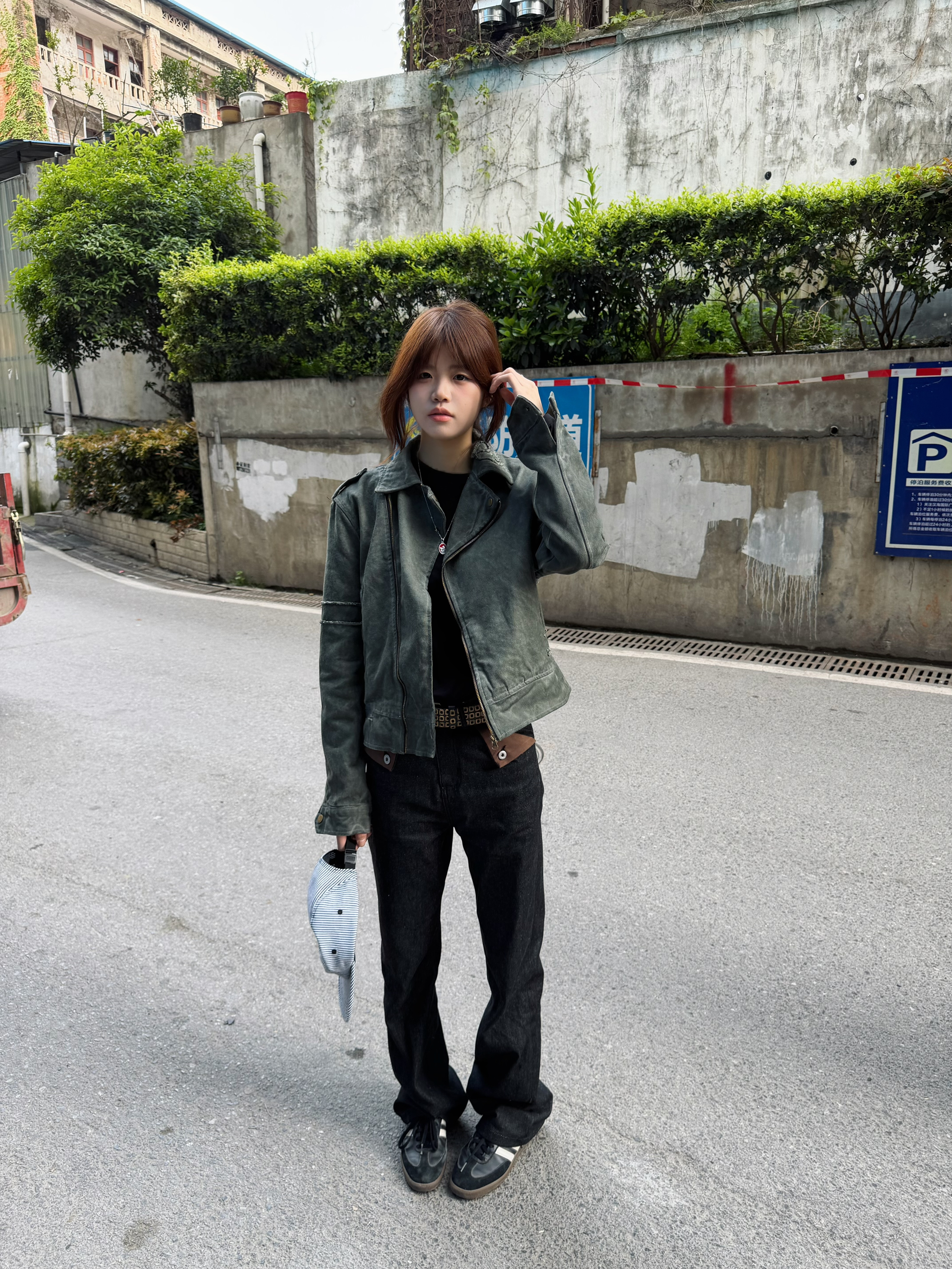 复古做旧水洗灰绿,是今年的氛围感本命色 💚 版型太绝了,肩宽显瘦,高街女孩的日常通勤公式。 软硬适中的面料,搭配腰间的小玩偶,酷飒中带点小俏皮。 一件夹克,撑起整个早秋的穿搭气场。🌿