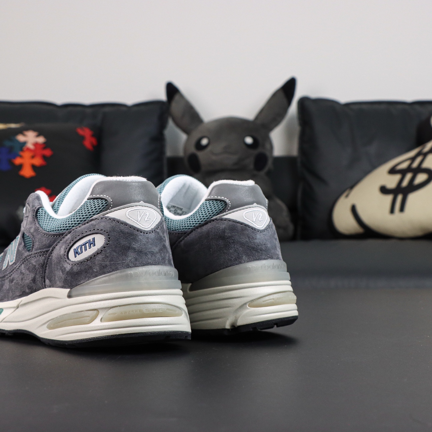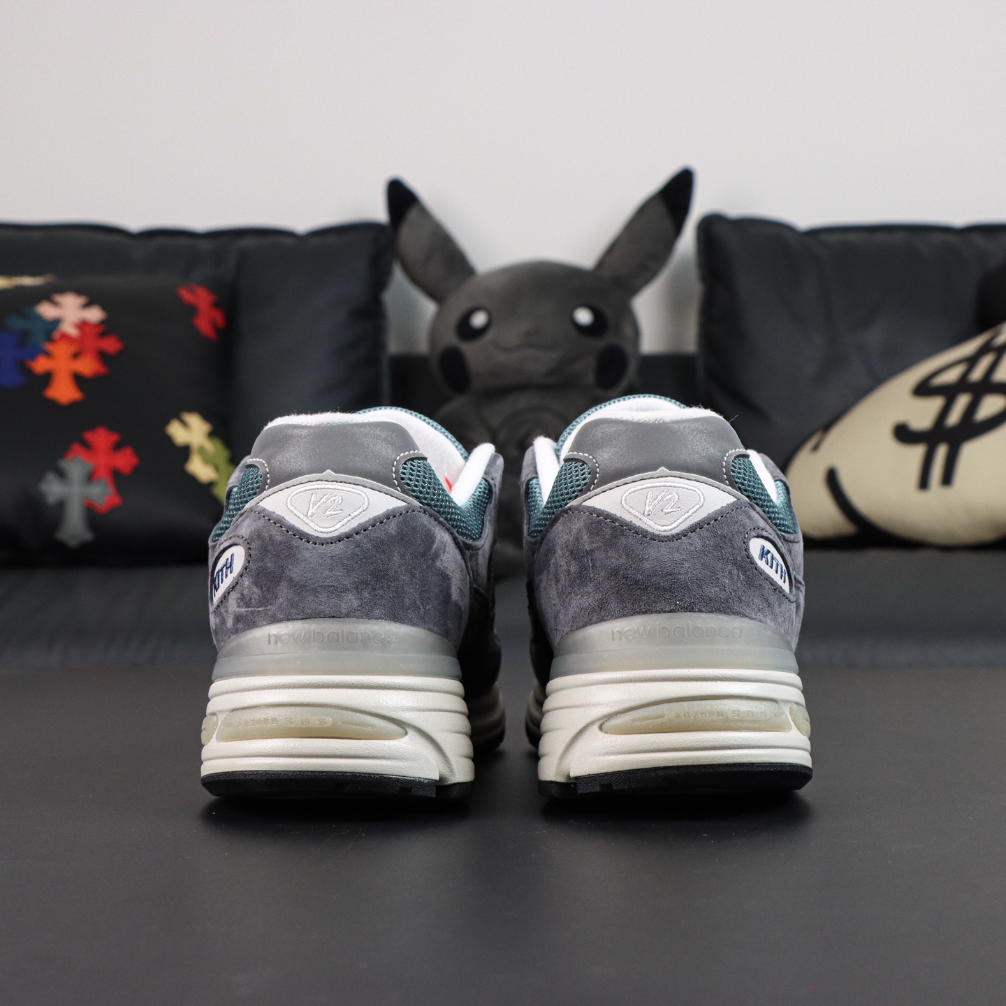 谁能拒绝一双把「复古质感」和「高级感」焊死的NB啊!! KITH联名的New Balance 991V2灰蓝款,真的是今年复古鞋圈的王炸选手✨ ▫️颜值直接戳心巴 深灰麂皮+冰蓝网面的撞色,温柔又有层次,奶白中底做旧感拉满,不管是搭牛仔裤、运动裤还是小裙子都巨适配!上脚直接把穿搭质感拉到满分,日常通勤、出街拍照都超上镜,显脚小一绝! ▫️质感拉满的细节控狂喜 美产工艺的麂皮用料超扎实,摸起来软...