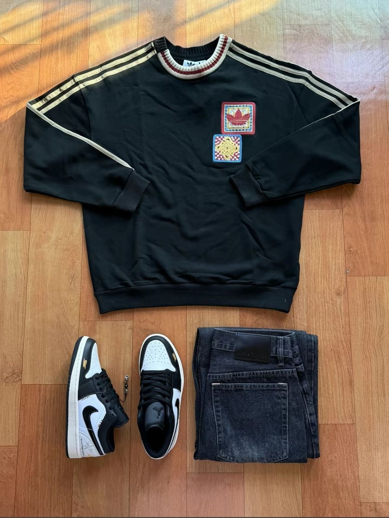 家人们!谁懂啊!这套清爽蓝白穿搭,直接把16岁的少年感焊死了! 先夸爆这双AJ1!冰蓝+奶白的神仙配色,像把春日的晴空穿在了脚上,生胶大底又添了几分复古质感,上脚软乎乎的,不管是日常上学、出街打球,颜值和脚感双在线,完全不挑穿搭风格! 再看这套搭配,直接把「松弛感少年感」玩明白了: ✅ 上半身:Drew House 薄荷绿笑脸连帽卫衣,软fufu的奶绿色自带降温感,经典笑脸logo元气拉满...