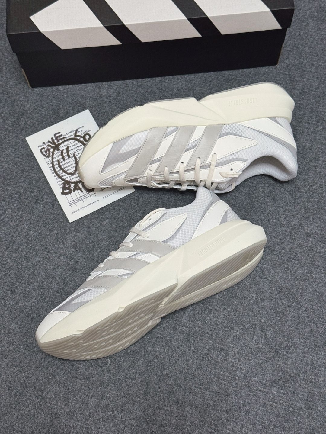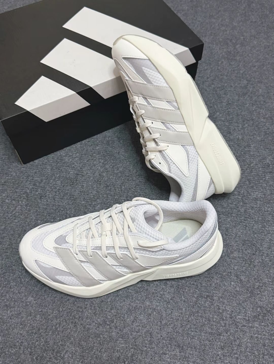 不得不说在竞速美学这个赛道,阿迪达斯真的是独一档了,这双lihtblaze流光跑鞋外观乍一看还有点evo1和椰子700的味道,这种设计让鞋子不再仅限于赛道,日常穿搭和潮流赛道各种场合都非常拿得出手,设计上这鞋子是用了合成革和网面结合的材质,保留了经典的三杠设计,鞋头和鞋身都做了流线造型,很有速度和复古未来的设计感,鞋子中底采用了EVA泡沫黑科技材料,让鞋子更加轻便的同时还能感受更加灵活的回弹脚感...