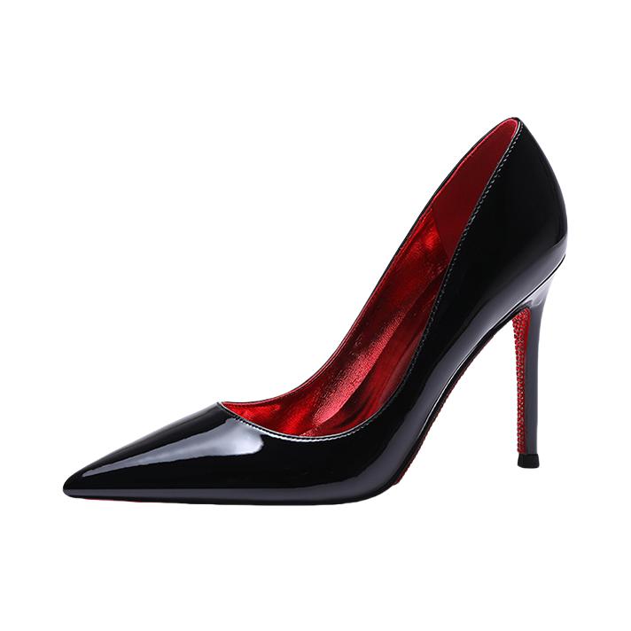 谁懂啊!这双红底高跟真的是氛围感天花板✨ 漆皮亮面高级感拉满,鞋跟的红钻细节直接戳中审美,上脚秒变细长直腿,走路都带风。不管是通勤还是约会,一双就能撑起所有造型,穿上它,自信和气场直接焊在身上~
