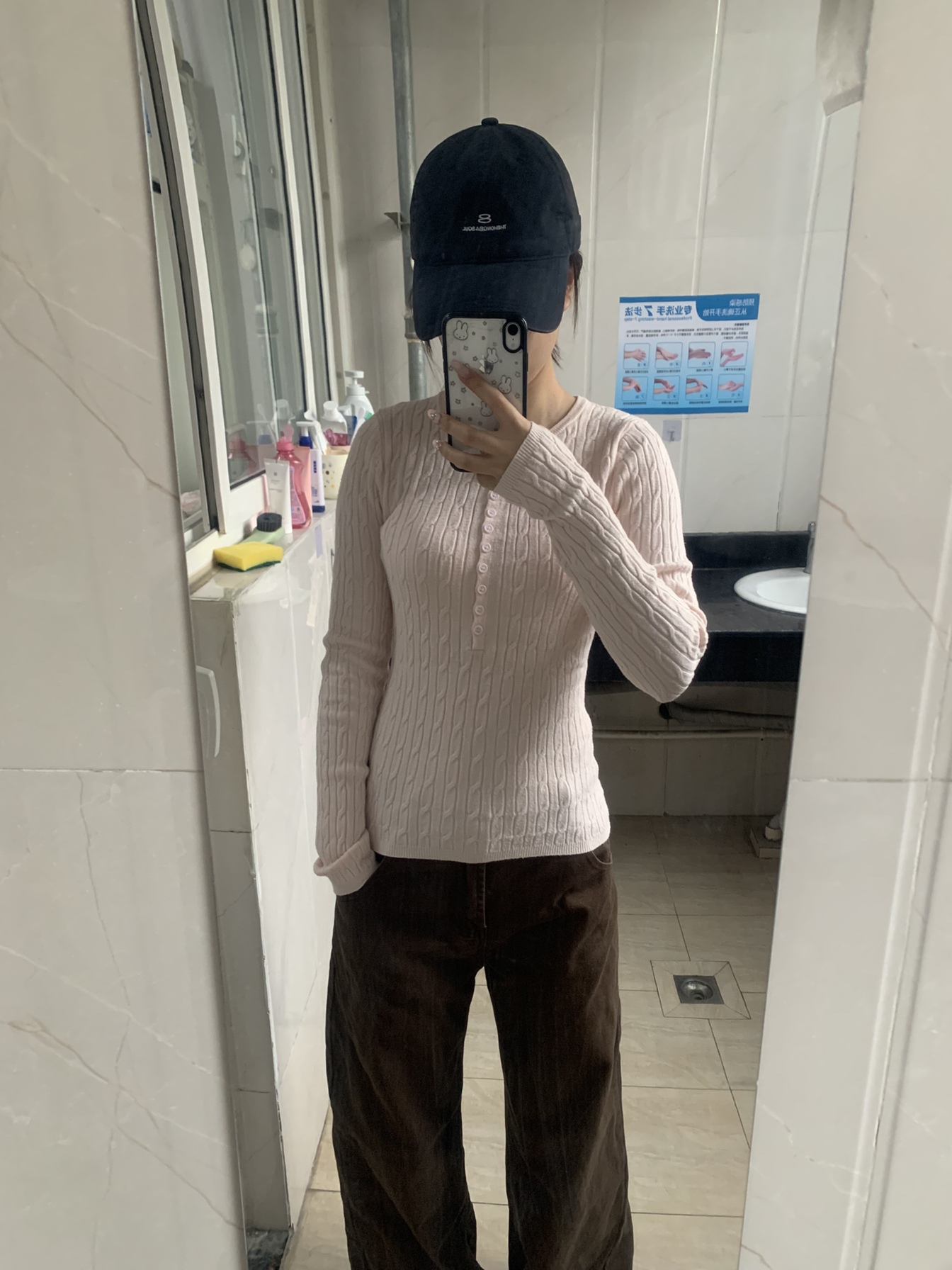 谁懂啊!这件淡粉绞花针织衫真的是春日温柔天花板🥹 修身不勒肉的版型,把身材线条拿捏得刚刚好,半开襟亨利领设计甜而不腻,单穿内搭都超绝。 搭配深棕灯芯绒阔腿裤,松弛感拉满,粉棕撞色温柔又高级,韩系女主那味儿直接拉满! 软乎乎的针织面料亲肤又保暖,春天穿温柔到骨子里,日常通勤、约会穿都超合适,闭眼入不踩雷,谁穿谁是氛围感美女!