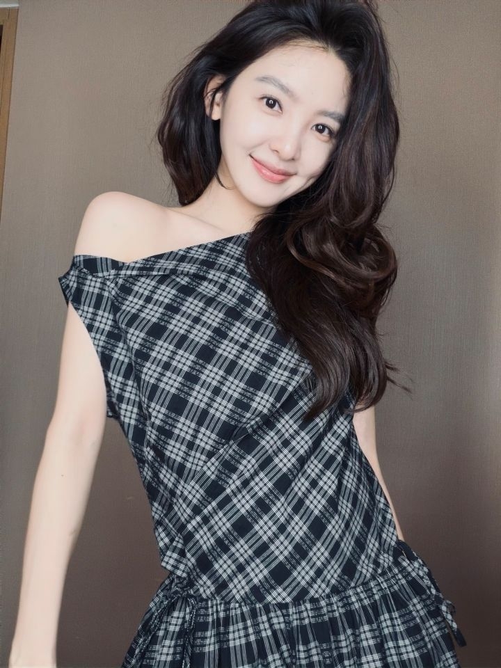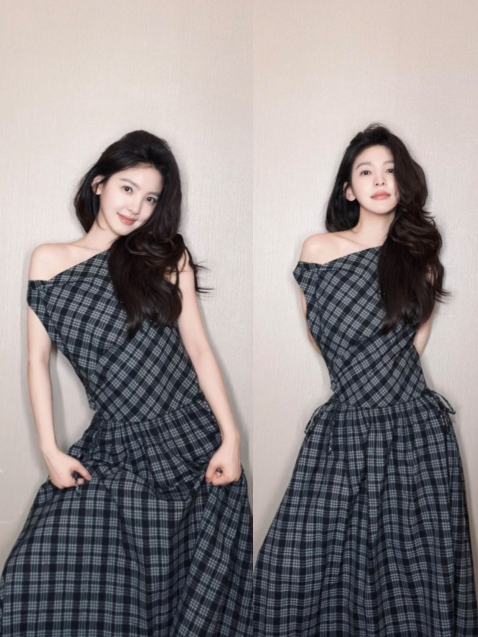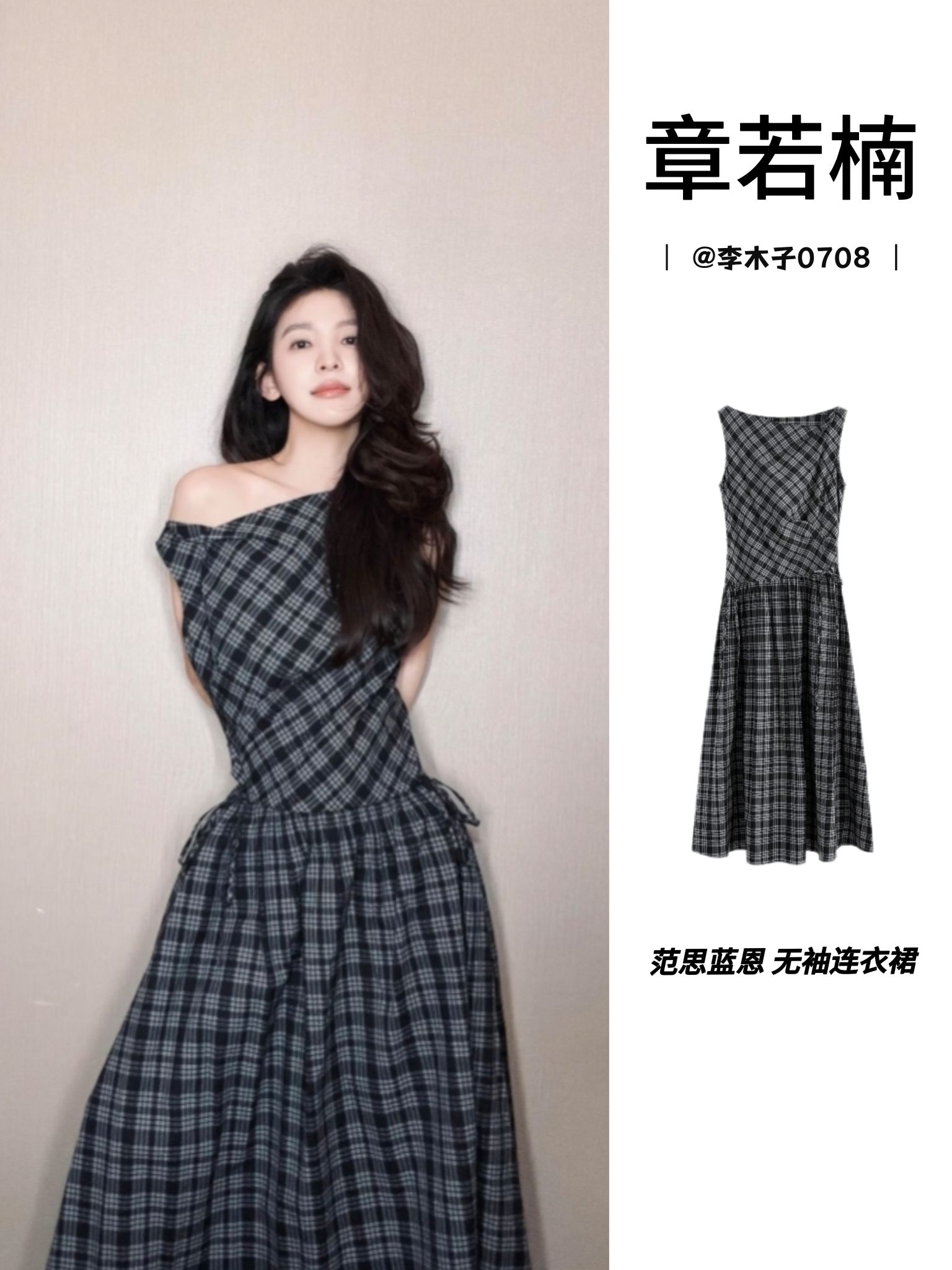 谁懂啊!章若楠穿这条范思蓝恩格纹裙也太有氛围感了吧🥹 经典黑白格纹自带复古松弛感,完全不挑人 斜肩/一字领两种穿法,露一点点肩颈线条,温柔又带点小性感。