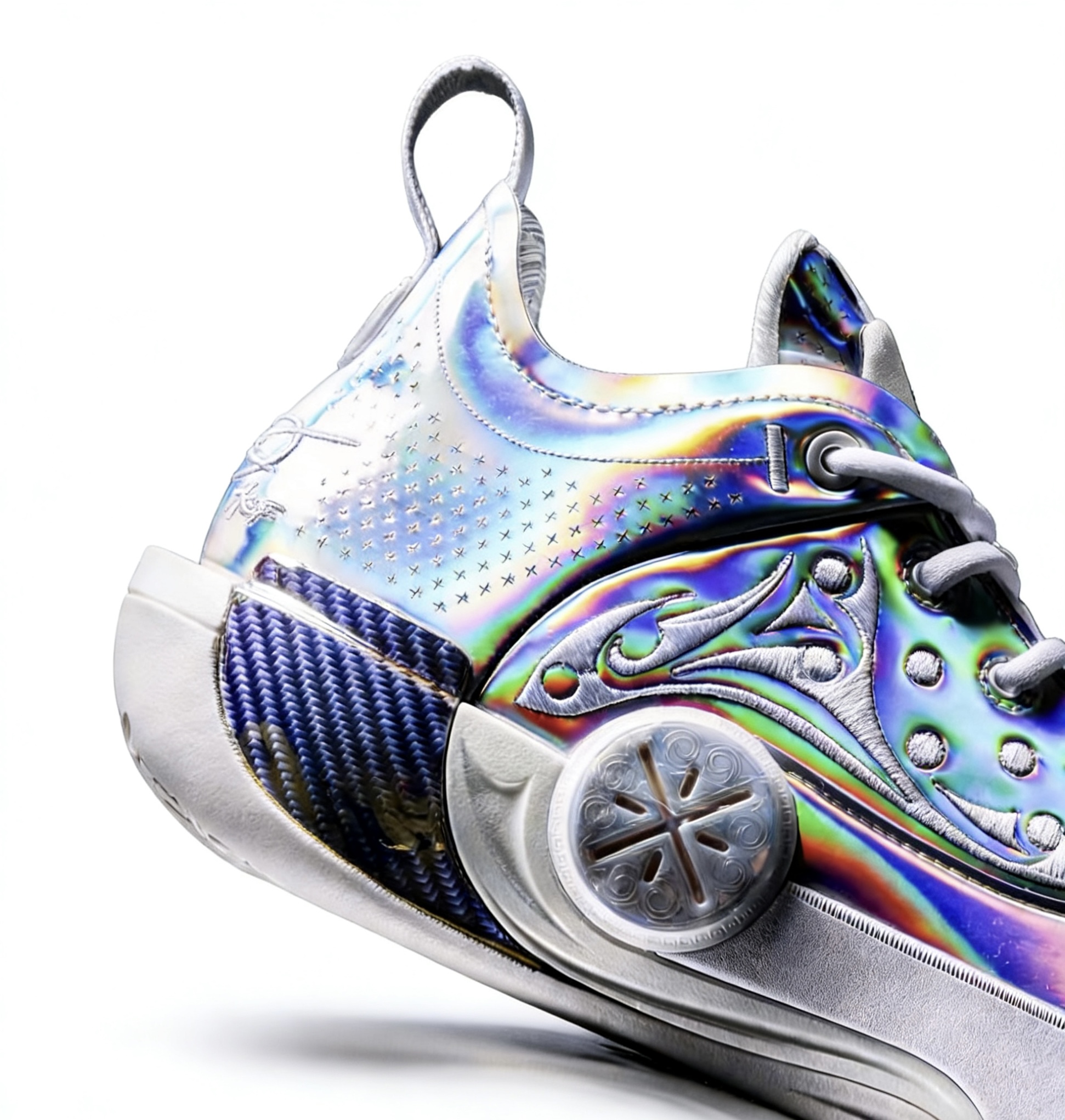 库里时隔两个多月迎来复出,因为目前还是‘球鞋自由身‘,所以库里在比赛中会穿什么鞋自然会引起大家的关注。 看到首场比赛上脚的又是韦德之道12,看得出库里是真喜欢 这次上脚的ASG配色非常亮眼,直接把炫彩玩到了极致!镭射幻彩鞋面在灯光下流转出彩虹光泽,鞋身的银纹刺绣、鞋头的韦德logo、后跟的签名刺绣,每一处细节都拉满仪式感。 作为库里球迷不入一双WOW12都有点说不过去了