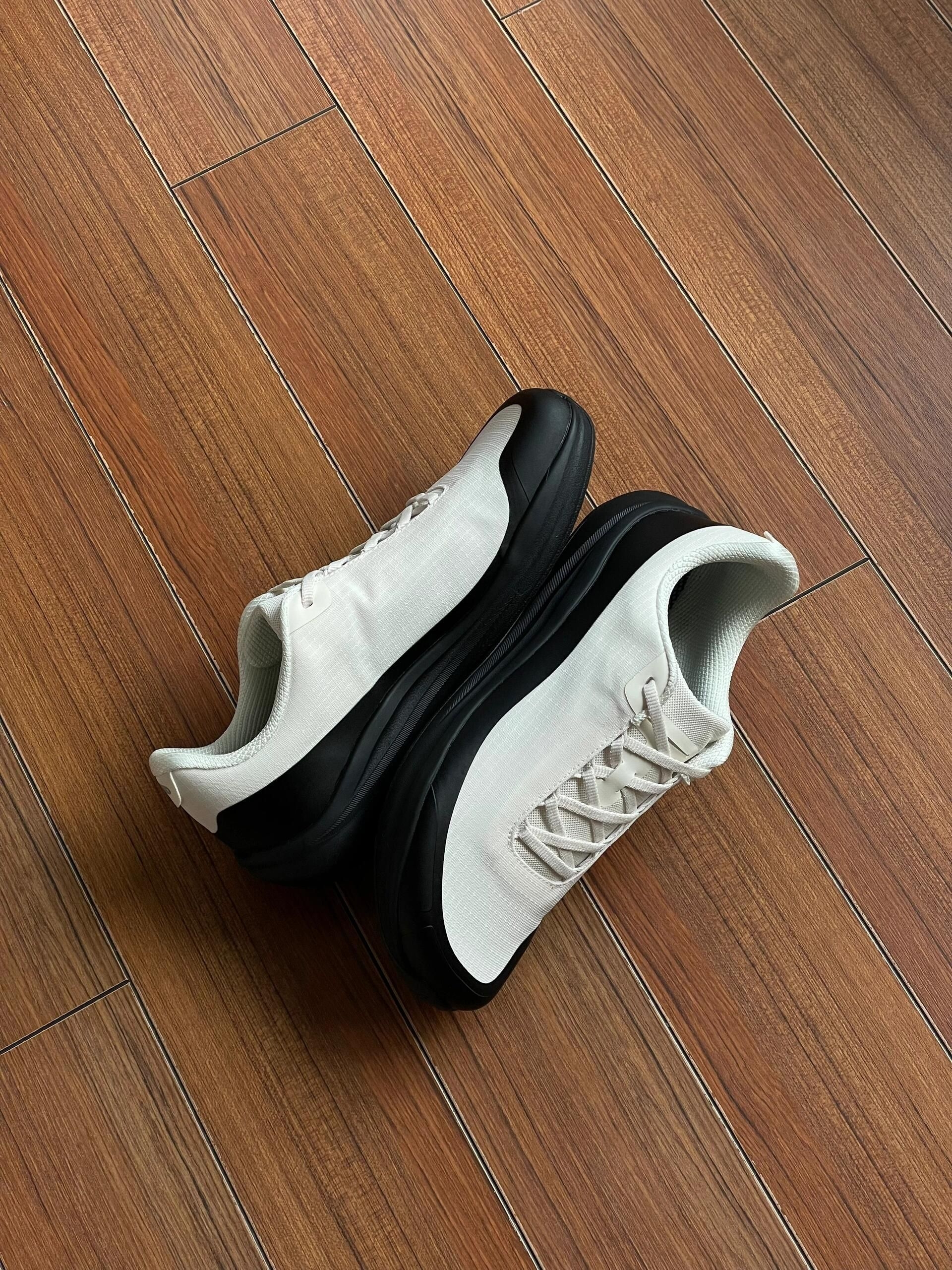 极客主打的是赤足宽楦,太太太适合我这个拇外翻的宽脚掌了,以前穿阿迪耐克走半个小时都觉得挤脚卡脚难受得慌,现在穿了平步和闺蜜逛街一整天直接爽翻,再也不用到处找地方坐着休息了!!! 其次就是低落差,能够让我双脚摆平地面的感觉,不用我小腿肌肉去代偿发力,也不会觉得酸疼肿胀!! 喜欢喜欢,而且这个山水墨这个配色异常的好搭。今天穿的比较帅气,下次穿个蛋糕裙配个推推袜也好看[狗头_blue]