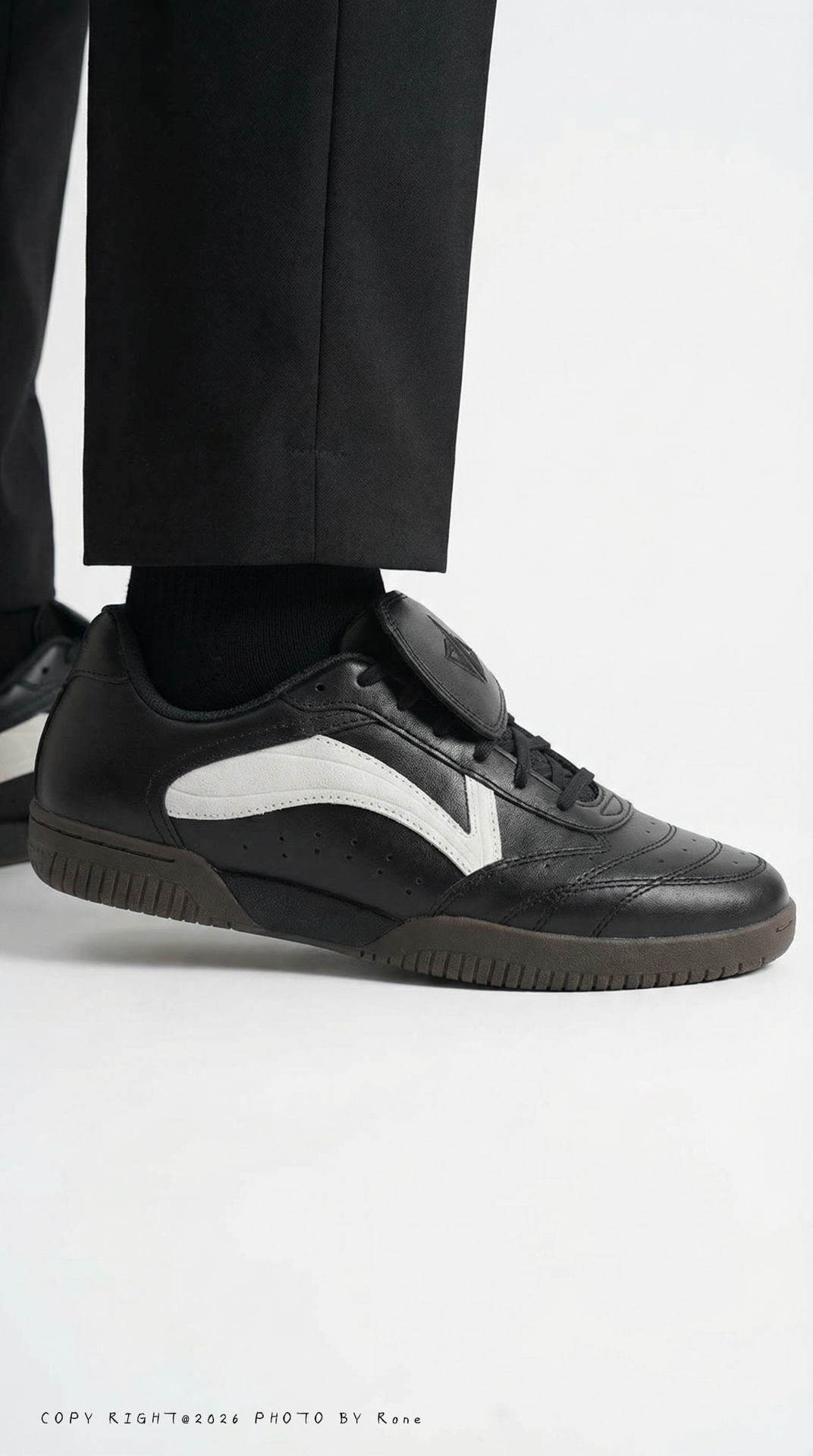 我最近入手巴特勒这款All Around生活板鞋,设计还挺有意思。以乒乓球鞋为底子,融入足球鞋细节,还加了扑克牌小元素,贴合他多元的风格。 纯黑皮革质感耐看,侧边白标点缀很清爽,薄底配足球鞋鞋舌很有巧思。鞋楦不挤脚不偏窄,中底脚感偏软,日常走路挺舒服,日常穿搭搭衣服也不挑。