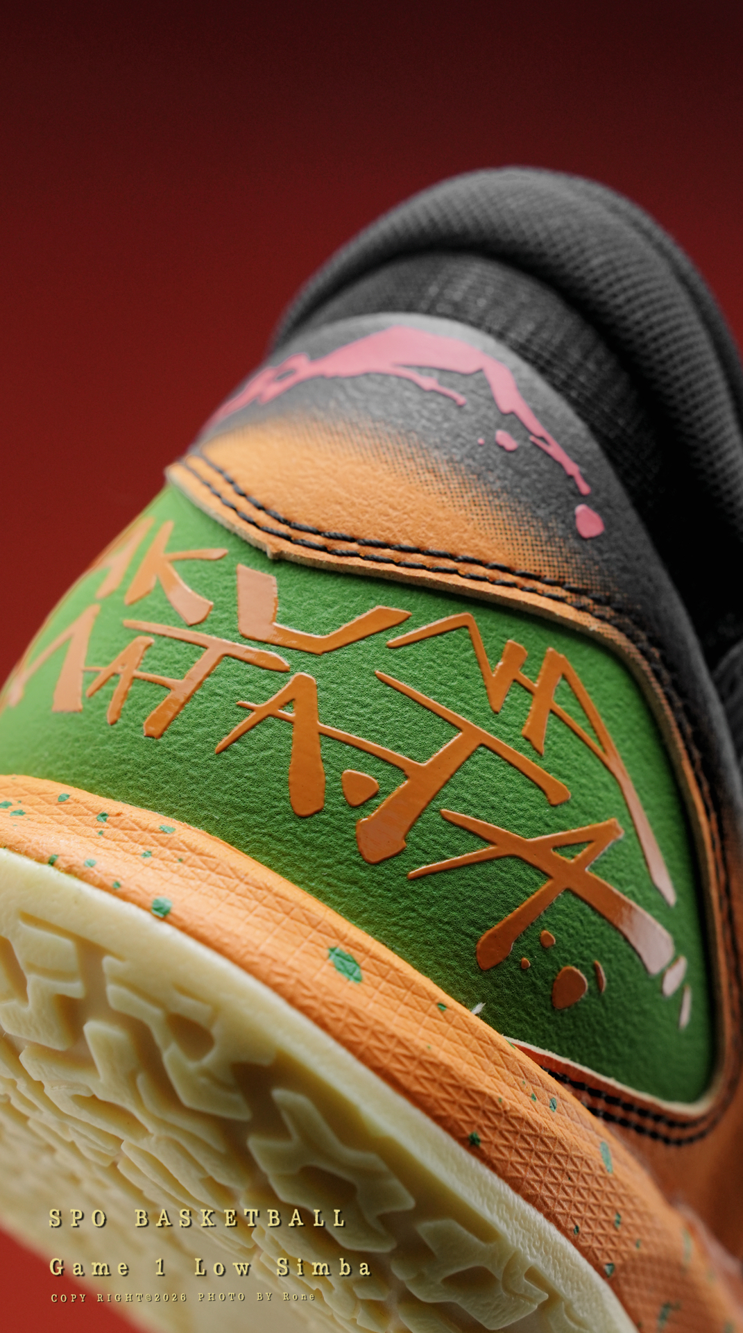 🦁还记得狮子王里的小辛巴吗?入手SPO这双Game1 Low联名配色,满满都是儿时回忆。 整体黑橙撞色搭配,再加上绿色鞋带和泼墨细节点缀,配色清爽耐看,很贴合主题。后跟印着经典台词HAKUNA MATATA,寓意自在顺遂,细节做得很用心。 🦁鞋身看着不算轻,其实43码单只重量把控得不错。中脚感顺畅,前掌反馈灵敏,后掌缓震也够用,日常打球训练没问题,夏天穿很有活力。 满满的童年情怀,这样的配色是否勾...