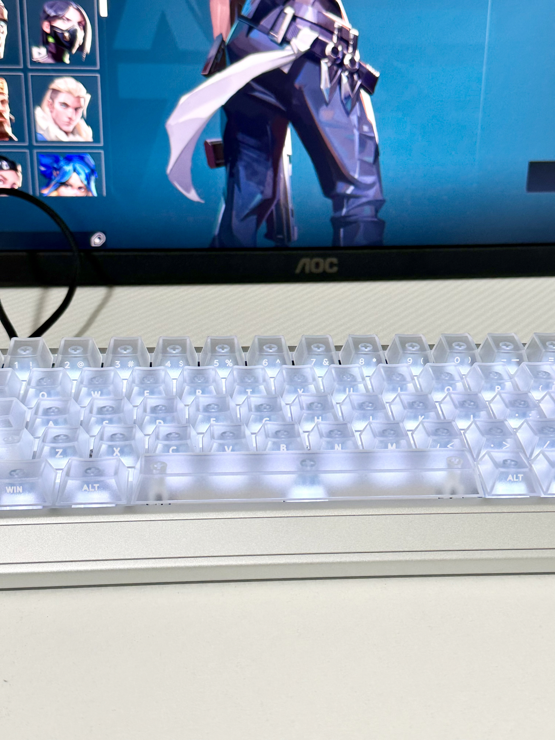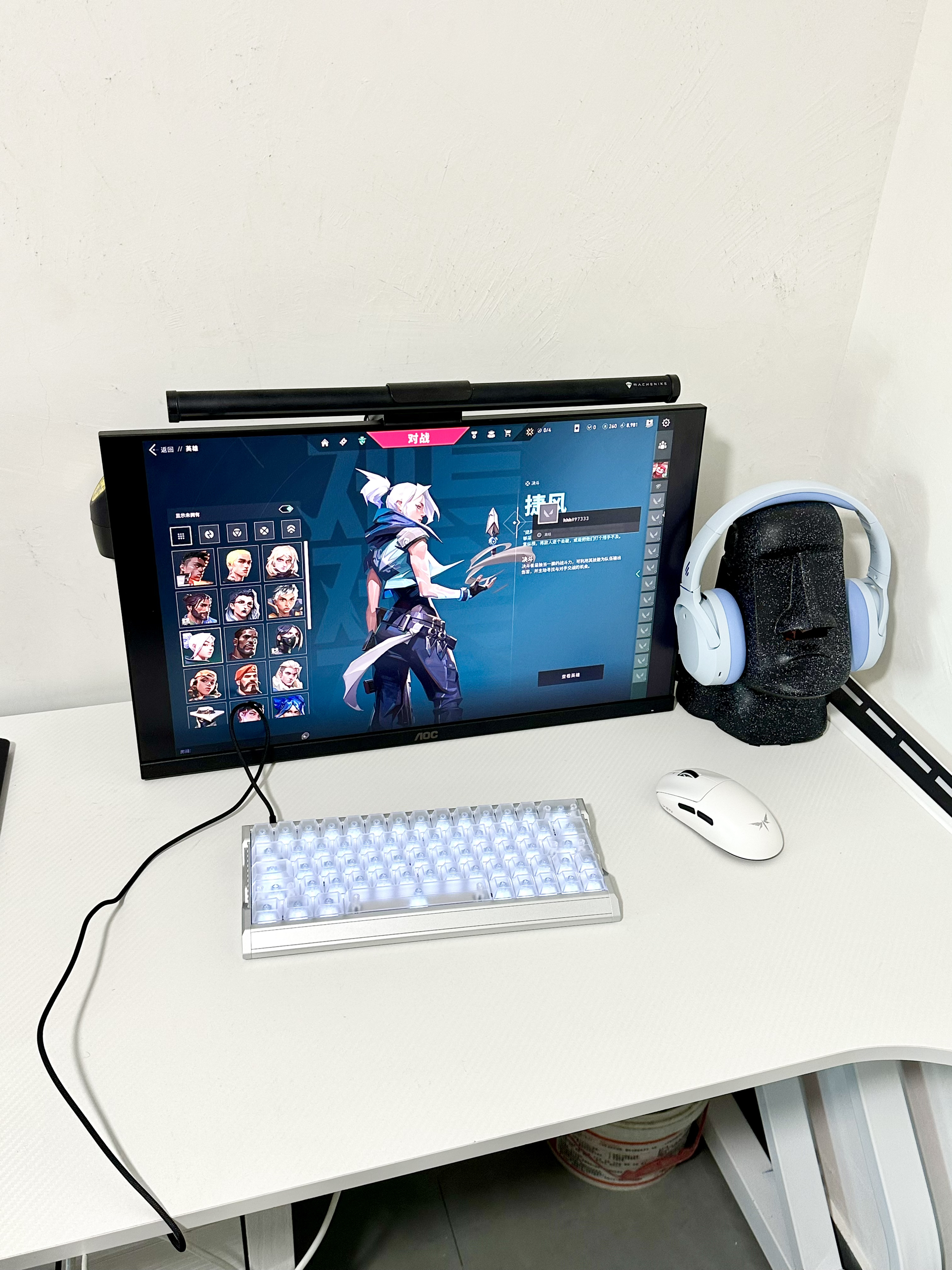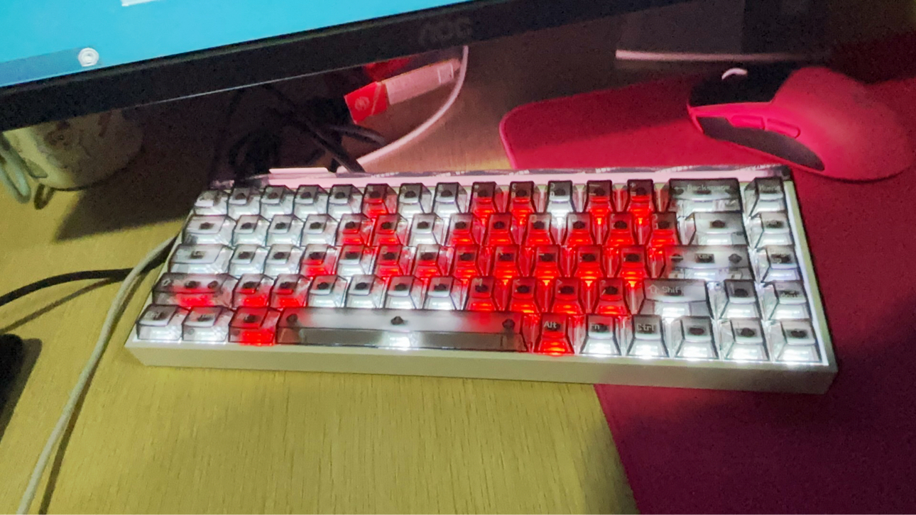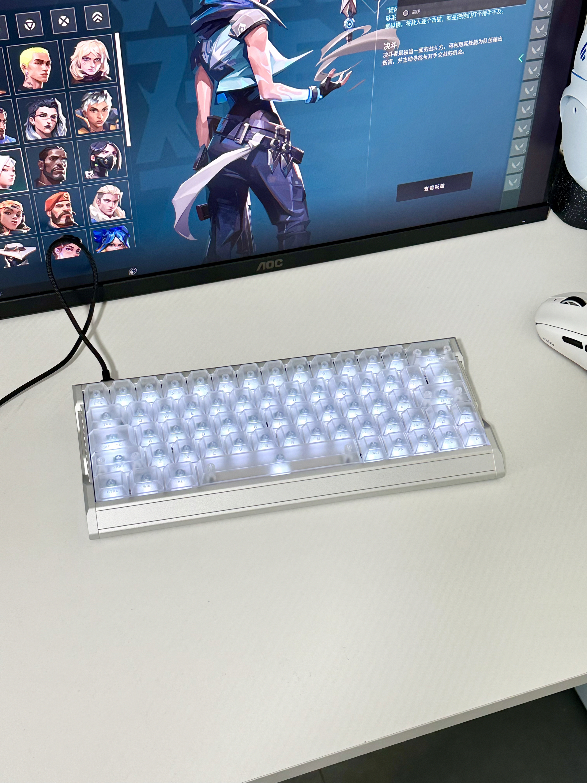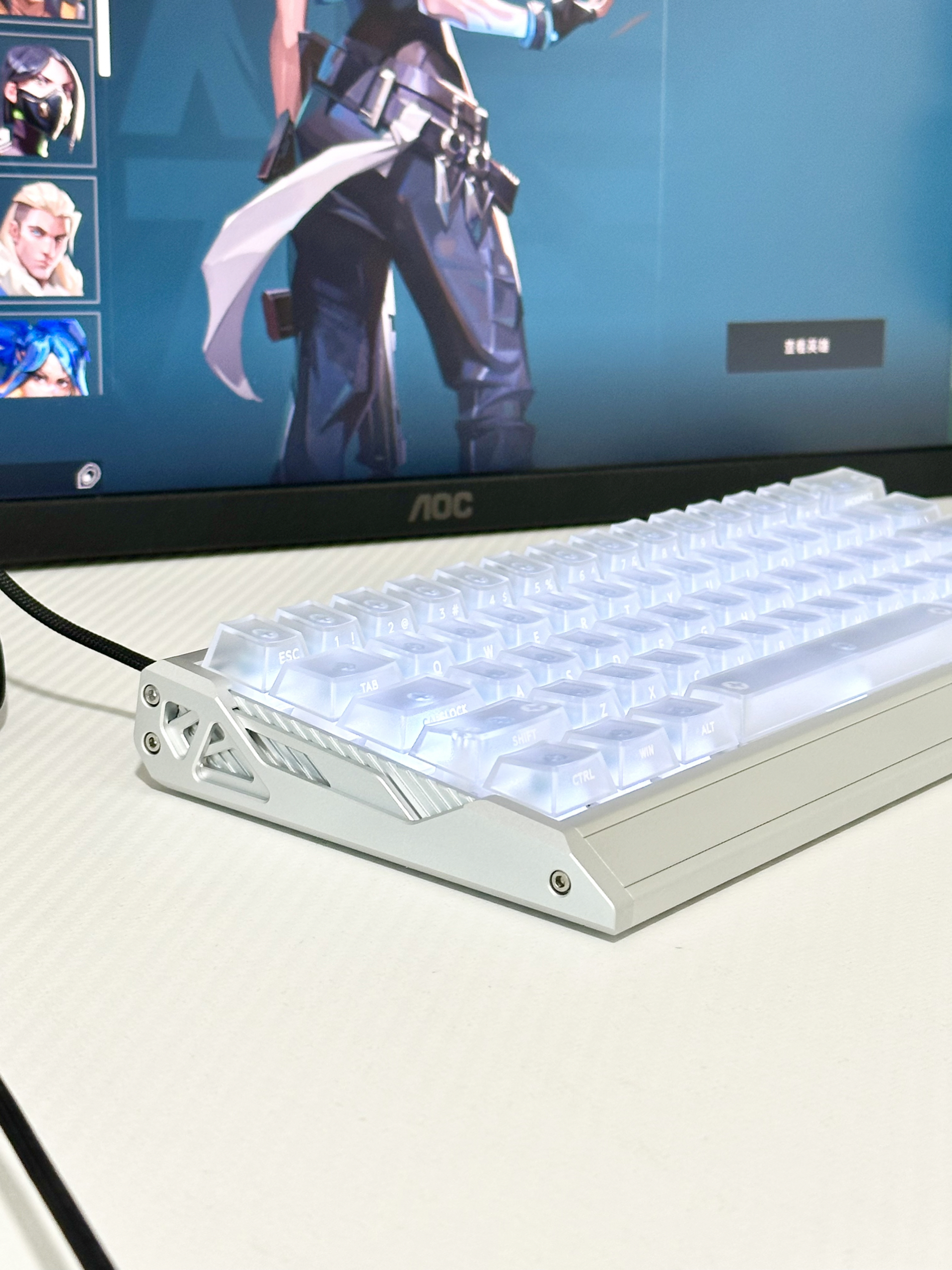 大家的打瓦桌搭是什么样子的呢? 为了打瓦打FPS这类游戏专门买了磁轴EV63银武士! 它的颜值与材质手感是真的好 高清透的键帽搭配银色铝合金外壳 给人感觉就是清爽 0.01mmRT分辨率 在游戏中拉枪线、颗秒急停这些操作都挺丝滑 0感延迟 玩FPS时用它开镜跟手度超棒 磁轴界的银武士确实有说法!