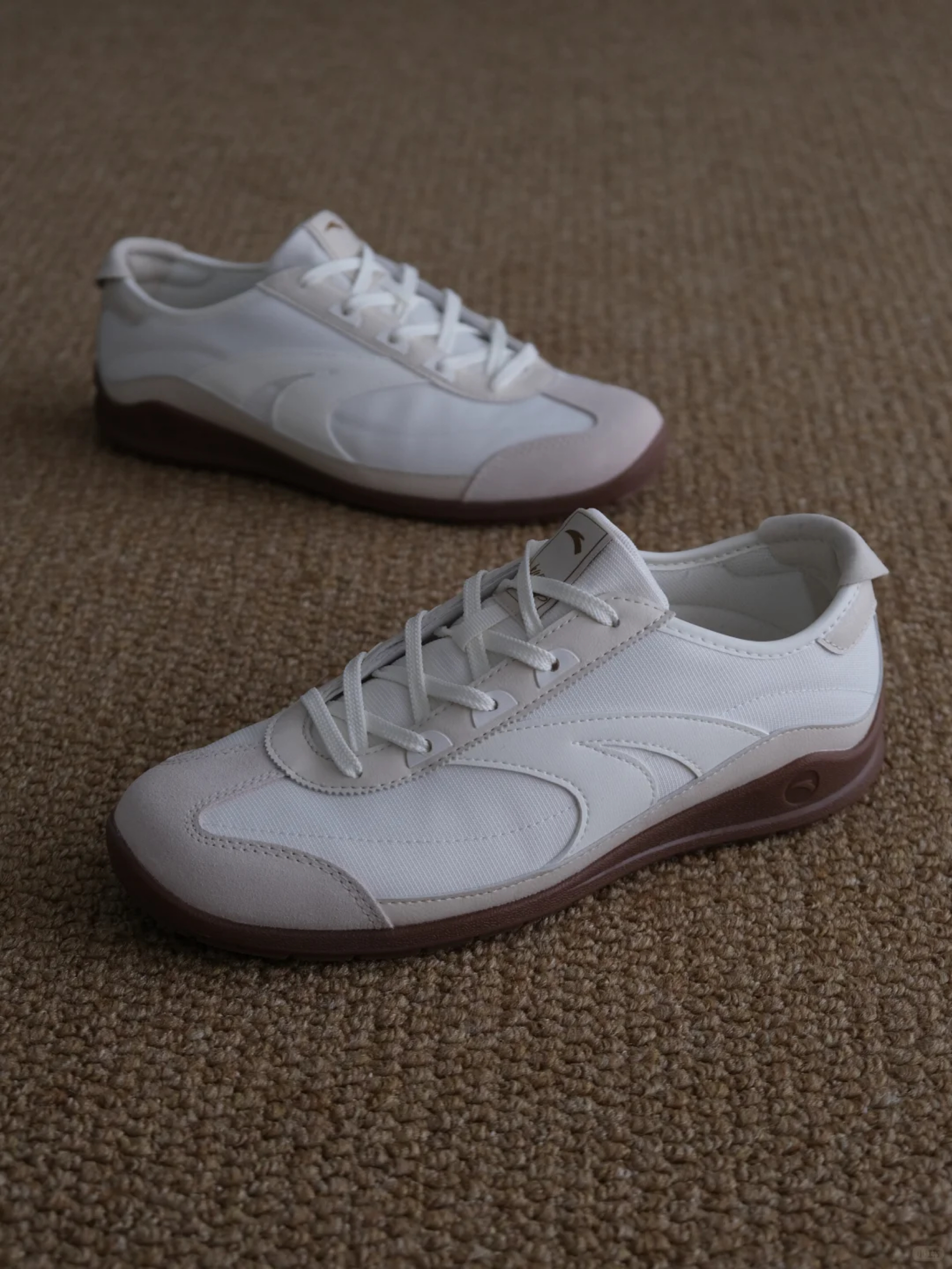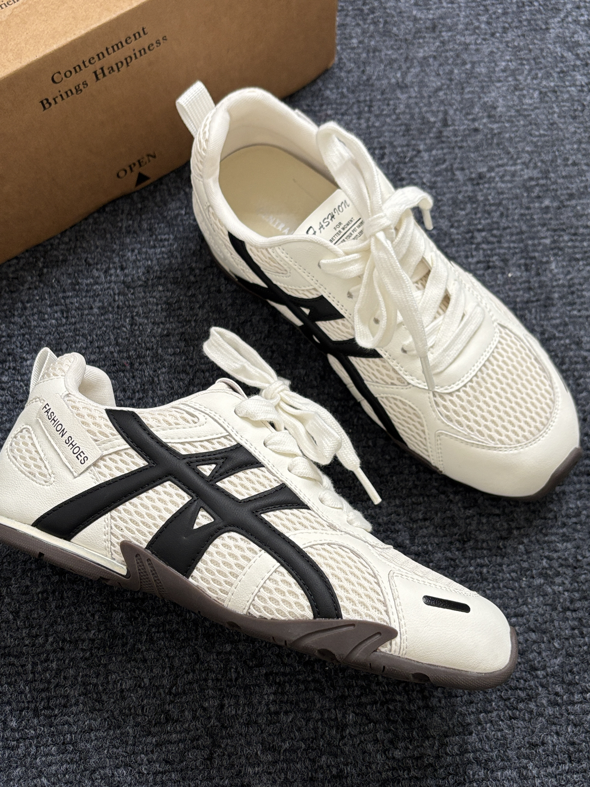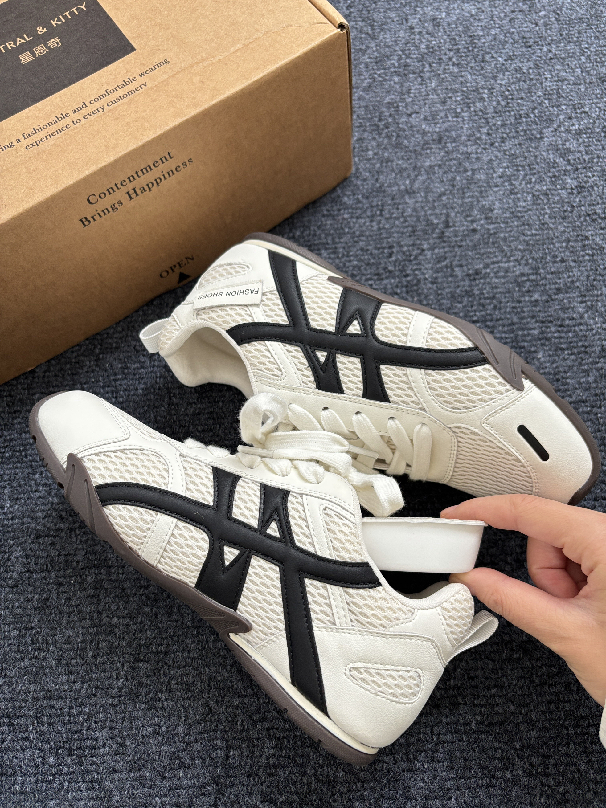 我现在是越来越喜欢简单好穿的东西了 主打一个实用主义派哈哈✌️ 这双 CENTRAL&KITTY 德训鞋就挺不错的 简单的黑白配色 通勤、约会穿都很适配~ 鞋面是网布+皮革拼接透气不闷脚 鞋子整体走线工整细节做工也挺到位👌 侧面的经典条纹Logo辨识度高不浮夸还挺好看✅ 鞋子上脚软软弹弹的很舒服不累脚😌 走路也很稳,越穿越舒服~