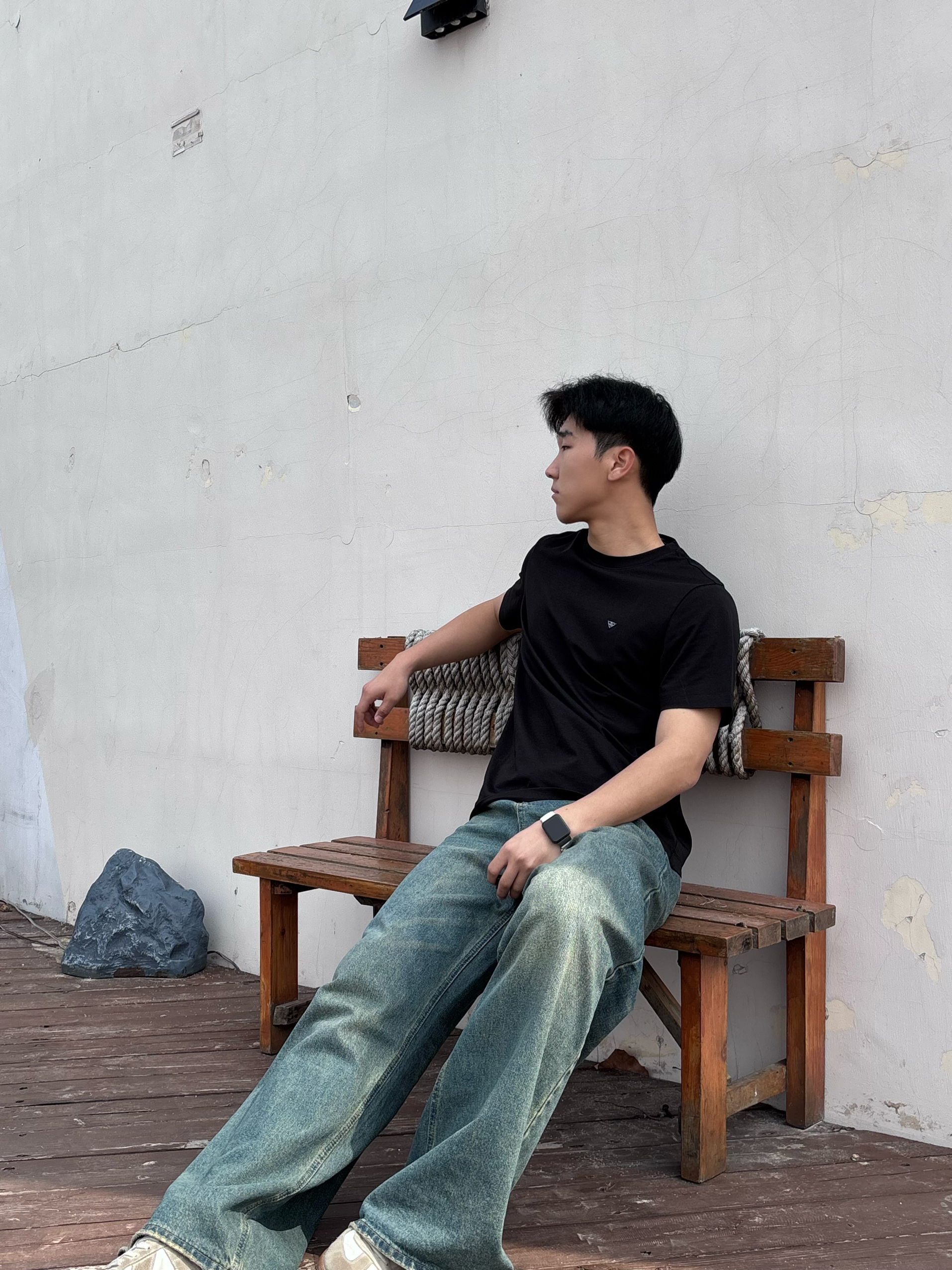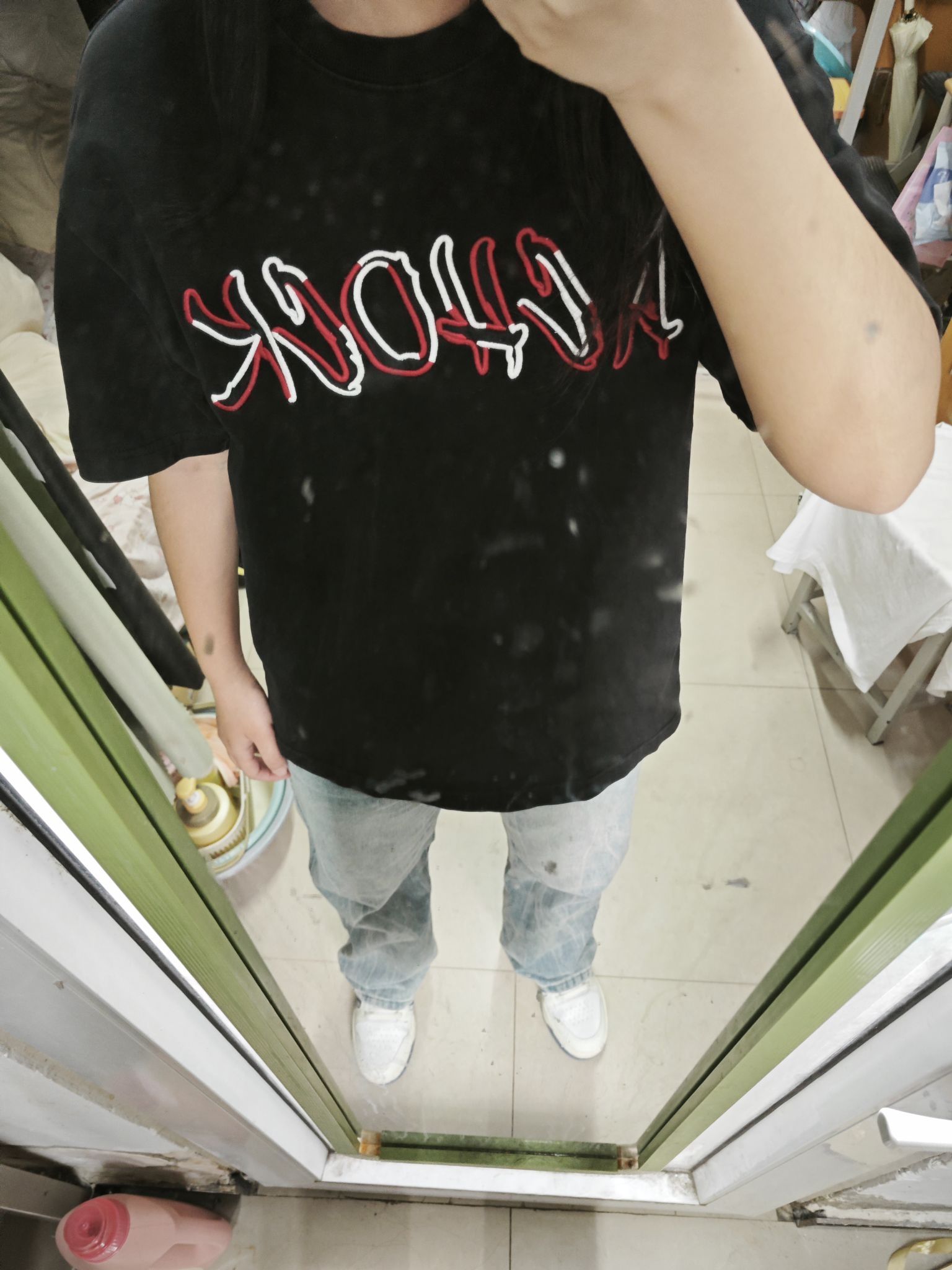 183/75kg 穿180/96A码,这件黑色短袖是我近期日常穿得最多的一件。面料摸起来软糯亲肤,春天出门散步、逛店一整天都很透气,不会闷汗 版型是微宽松的,不会紧绷也不会显臃肿,胸口小logo很低调,搭黑裤、牛仔裤都很利落,日常出街、通勤都合适,耐穿又耐看,基础款真的很省心