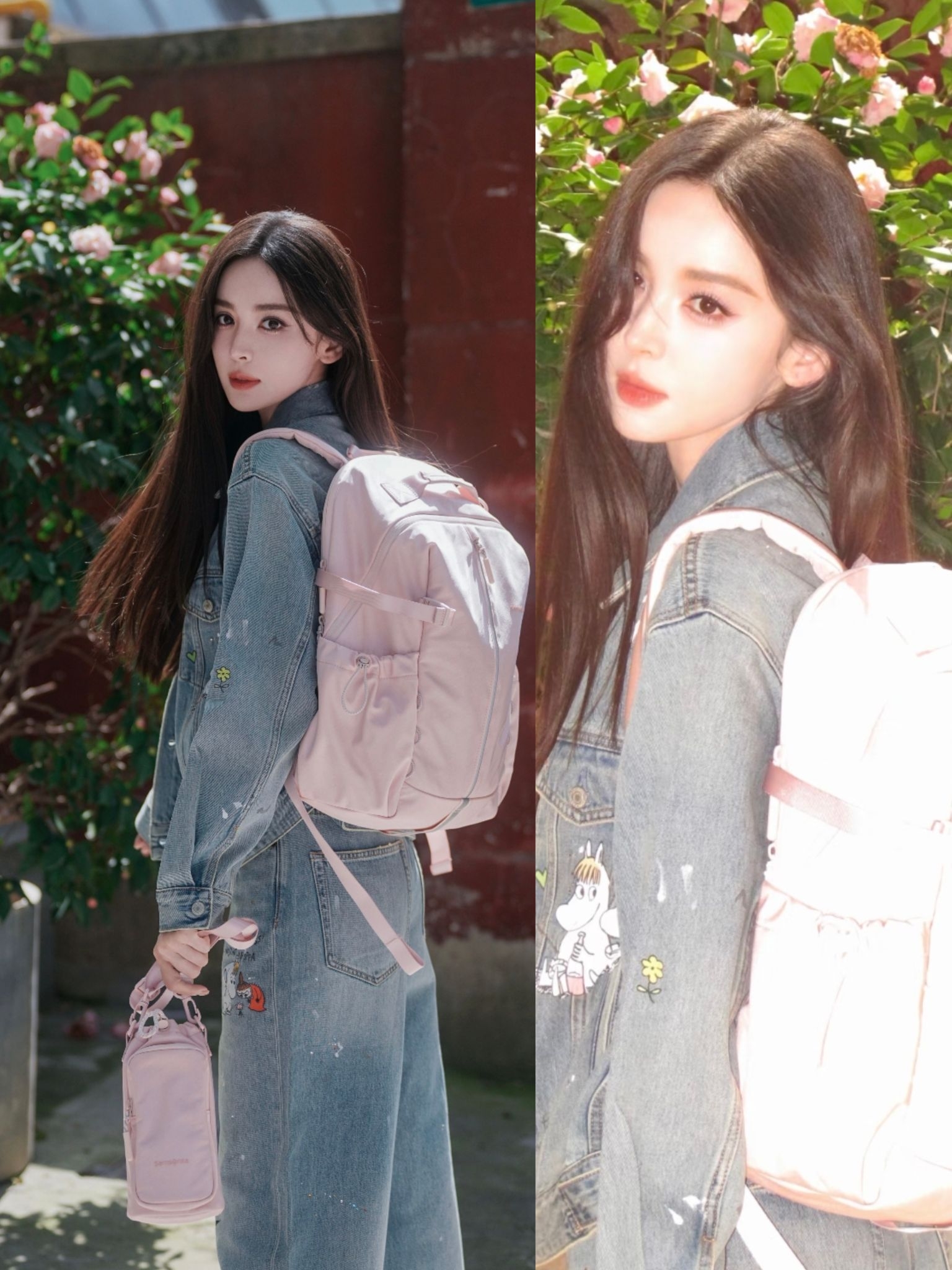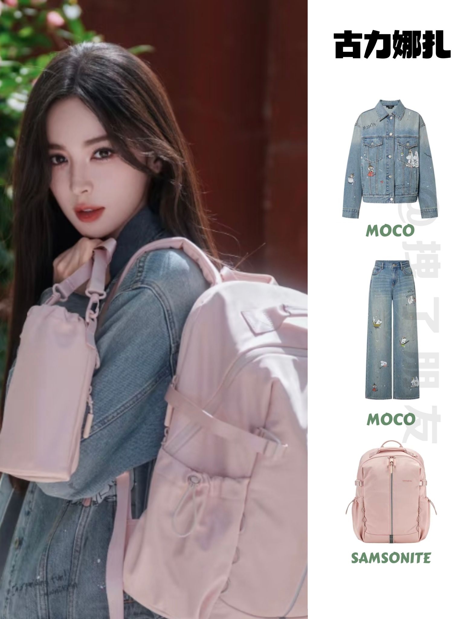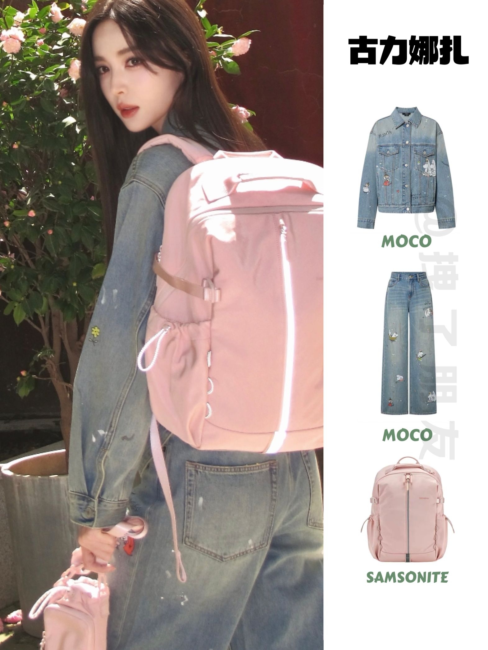 🧥MOCO白色墨印花做旧宽松型欧美风牛仔外 👖 MOCO联名宽松休闲直筒自然腰牛仔裤 👟SAMSONITE新秀丽22.2LROXANNE纯色拼接设计织物双肩包