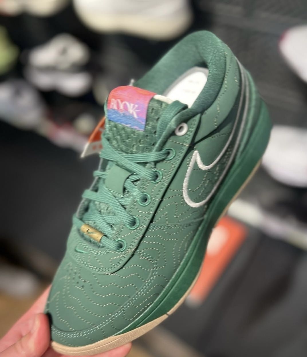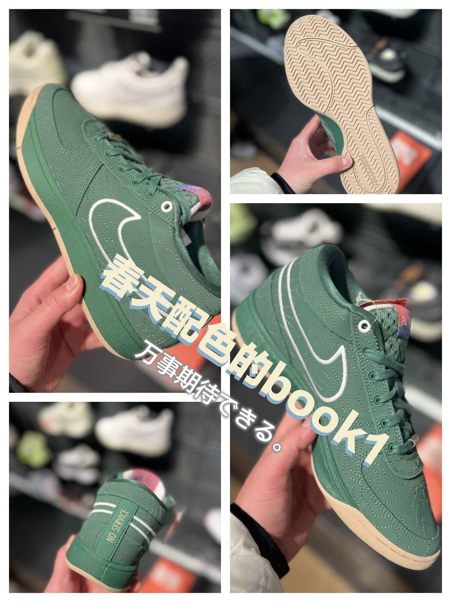 话说都春天了谁还没有一双很有春天感觉的鞋子呢 这双book1绿色的配色完全符合了我对春天的感觉 而且价格也才三张多一点,价格是真的香呀😎😎😎😎 鞋面选用细腻拼接皮革,触感扎实耐穿,专属走线纹路勾勒鞋型,细节质感拉满;鞋身暗藏自然风设计肌理,呼应山林绿意灵感,颜值辨识度直接拉满🌲 而且配置也不低 实战配置依旧稳:低重心鞋型贴合脚感,鞋面加固加持日常跑动;Cushlon 2.0泡棉搭配后跟Zoom配...