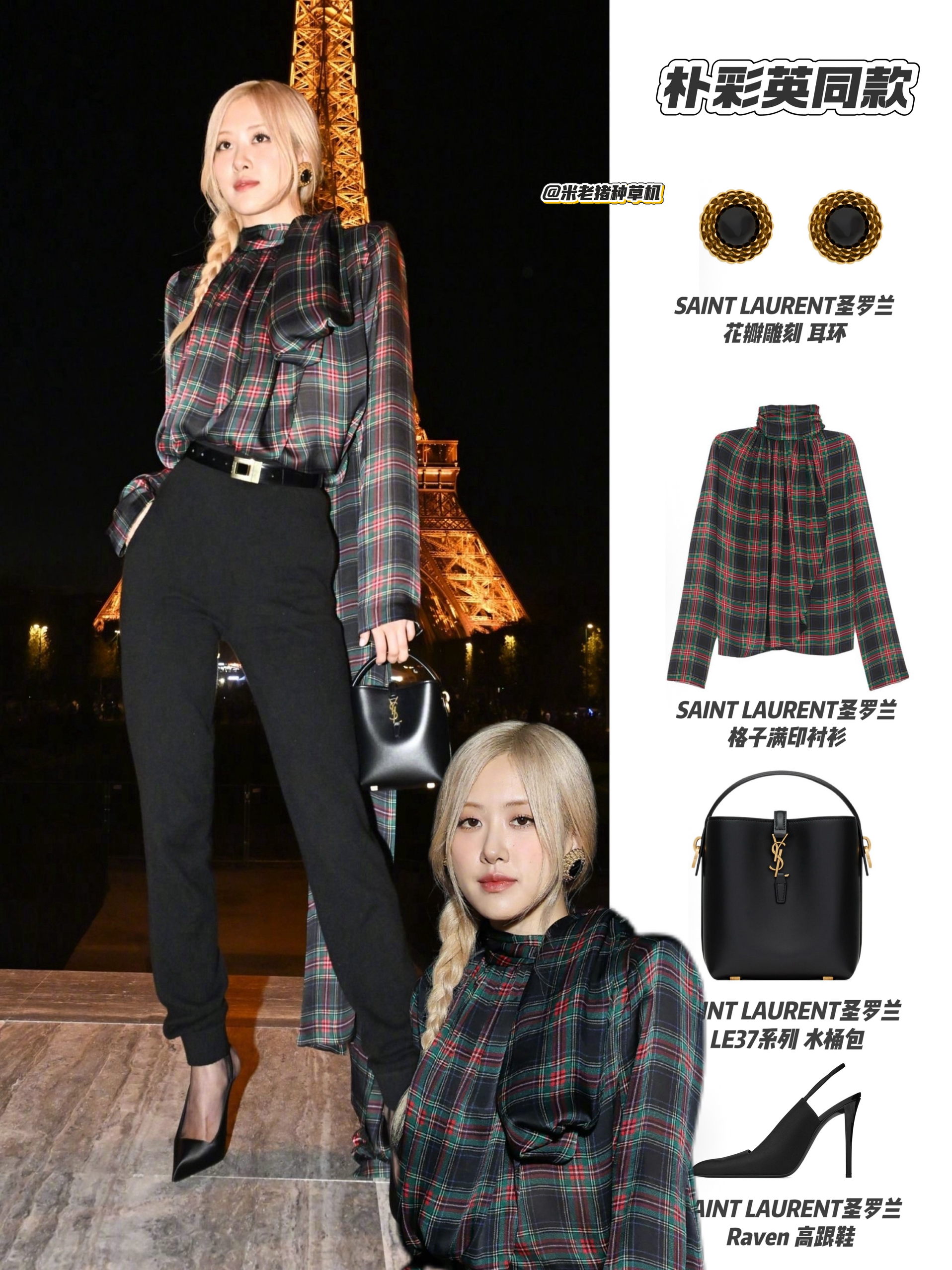 朴彩英这套YSL造型太绝了!时装周氛围感直接拉满✨ 格纹飘带衬衫复古又贵气,搭配利落黑裤和尖头高跟,松弛感与精致感完美平衡。 同系列配饰和水桶包加持,整套造型高级感拉满,完美诠释圣罗兰的摩登优雅,妥妥的时装周穿搭范本!