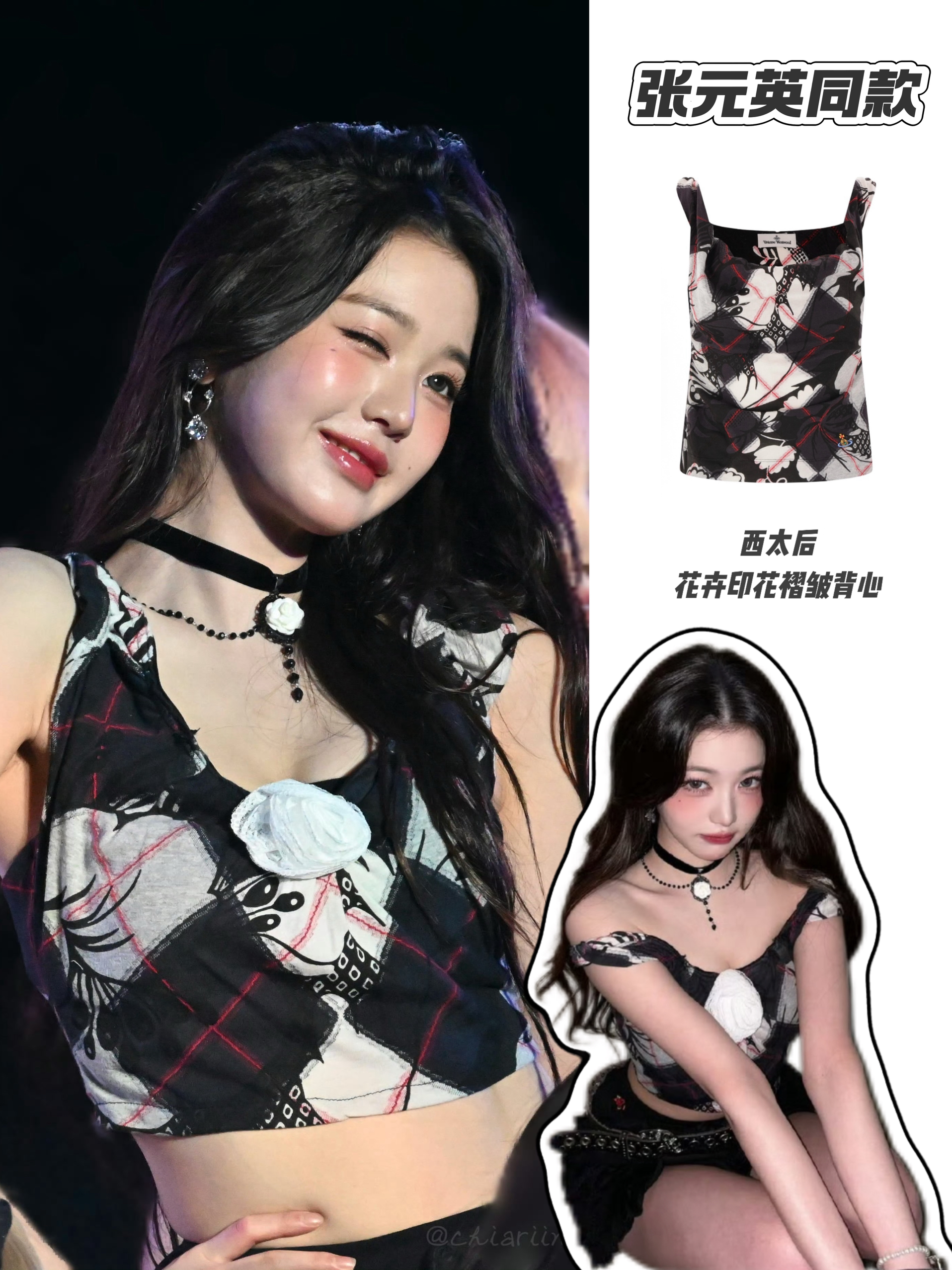 甜酷辣妹穿搭天花板✨张元英同款西太后花卉印花褶皱背心是灵魂单品,格纹撞花设计复古又时髦,立体玫瑰装饰甜感拉满,褶皱设计超显腰细。 搭配多层荷叶边蛋糕裙+重工腰带,辣度直接拉满,choker点缀更添精致感,妥妥的春日炸场穿搭,时髦感直接焊在身上!