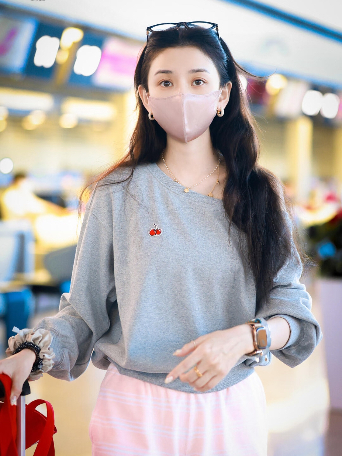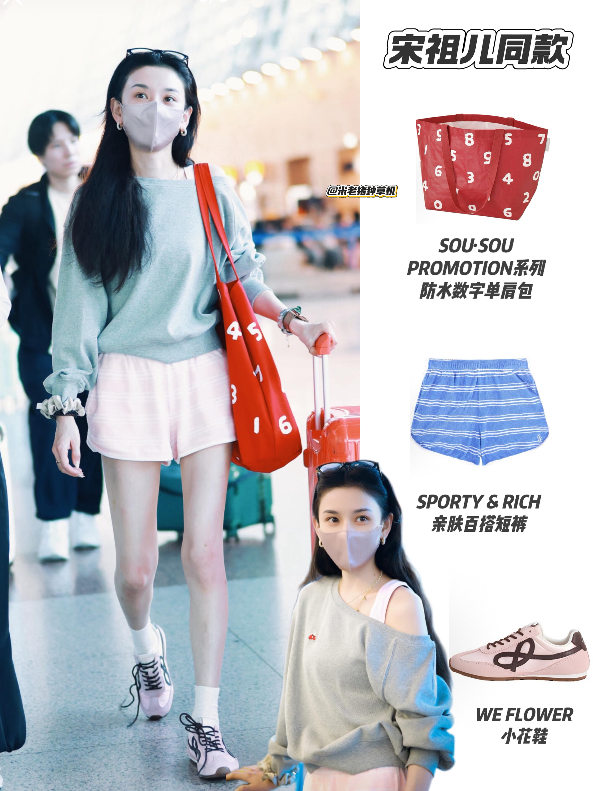 宋祖儿这套机场造型主打松弛感,灰卫衣配粉条纹短裤清爽减龄。 最吸睛的当属脚下WE FLOWER小花鞋,樱花粉配色温柔亮眼,与整体甜美元素完美呼应。精致的鞋身设计成为全身亮点,平衡了基础款的简约,既舒适又极具上镜感,堪称整套穿搭的点睛之笔。