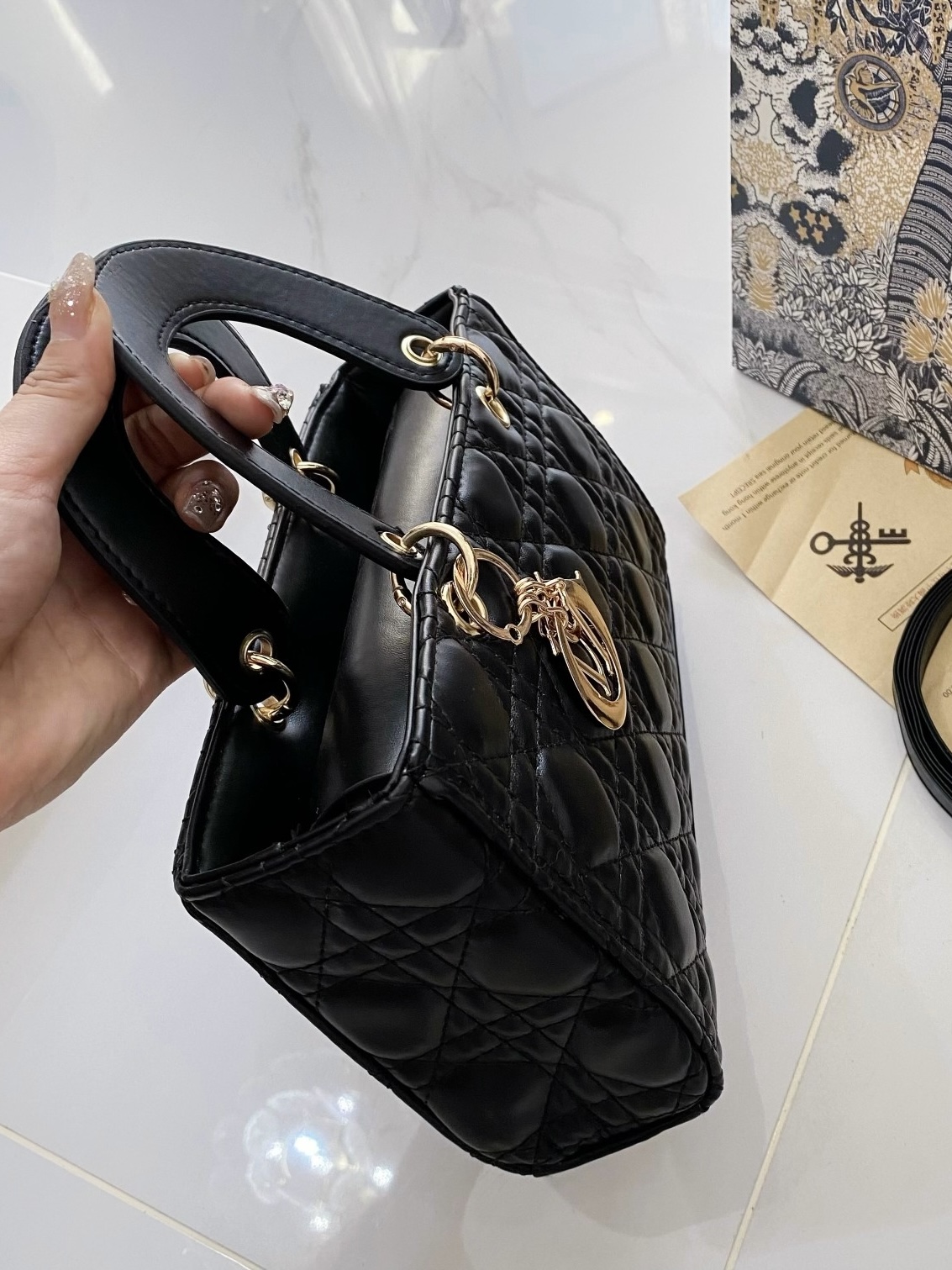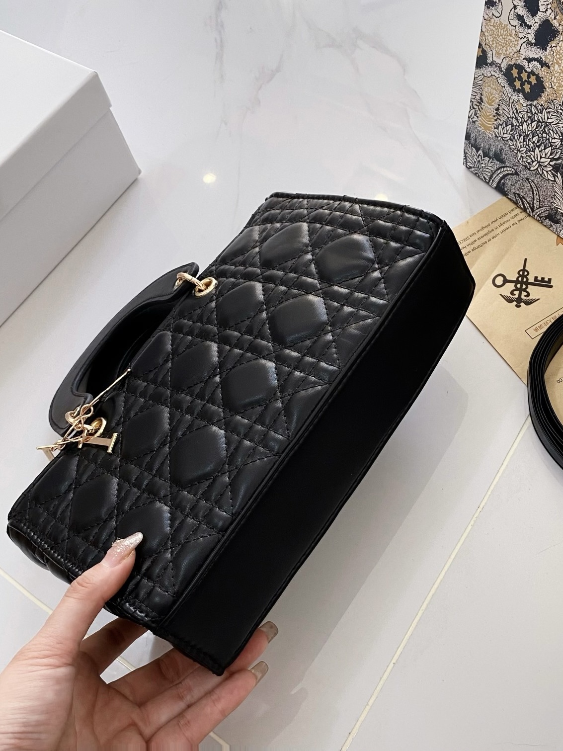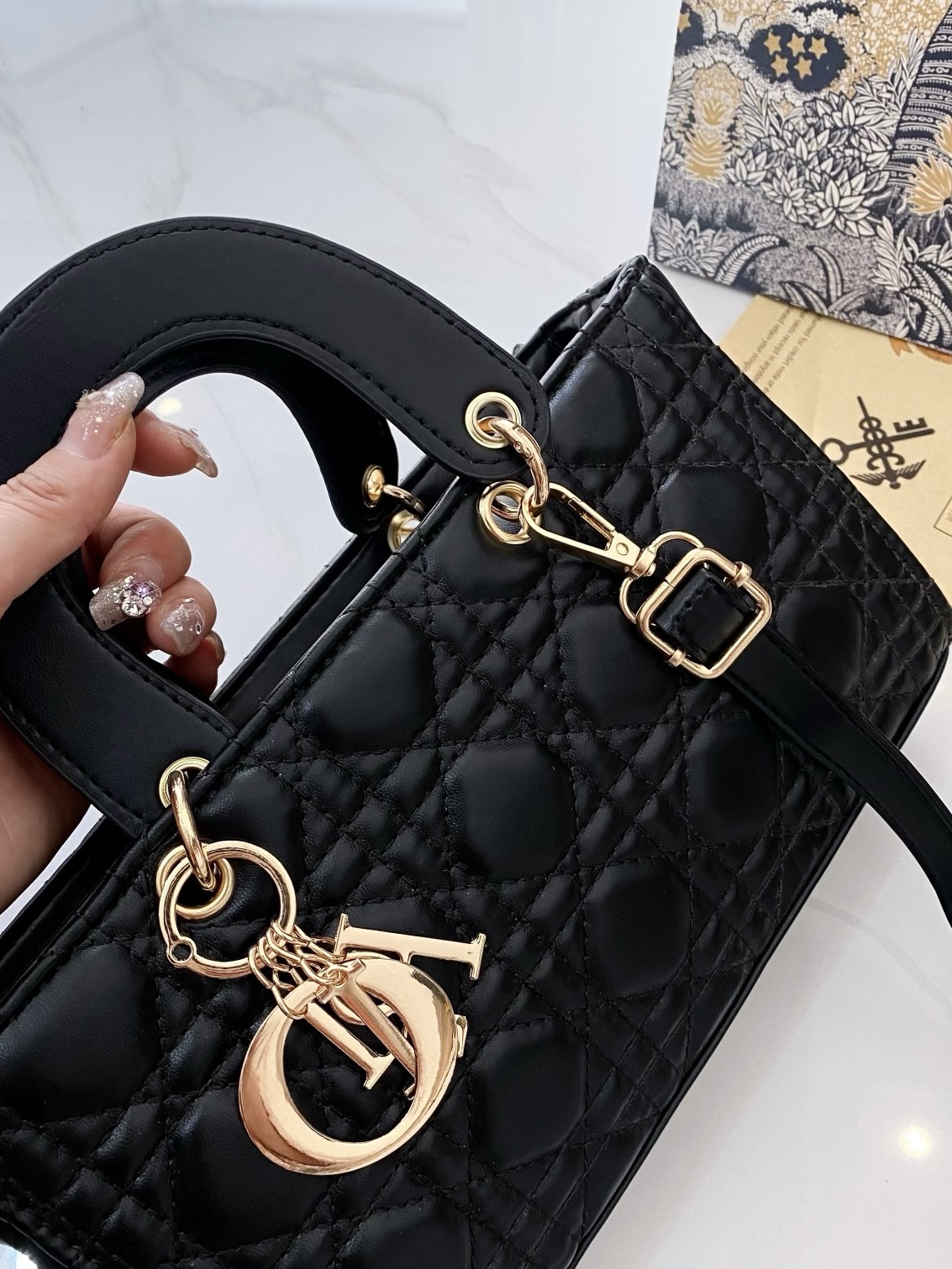 本篇笔记关联了Dior/迪奥 Lady D-JOY 饰面金属可拆卸吊饰坠钻石藤格纹羊皮革戴妃包单肩斜挎手提包 黑色等商品,为用户提供真实的使用体验和购买参考。