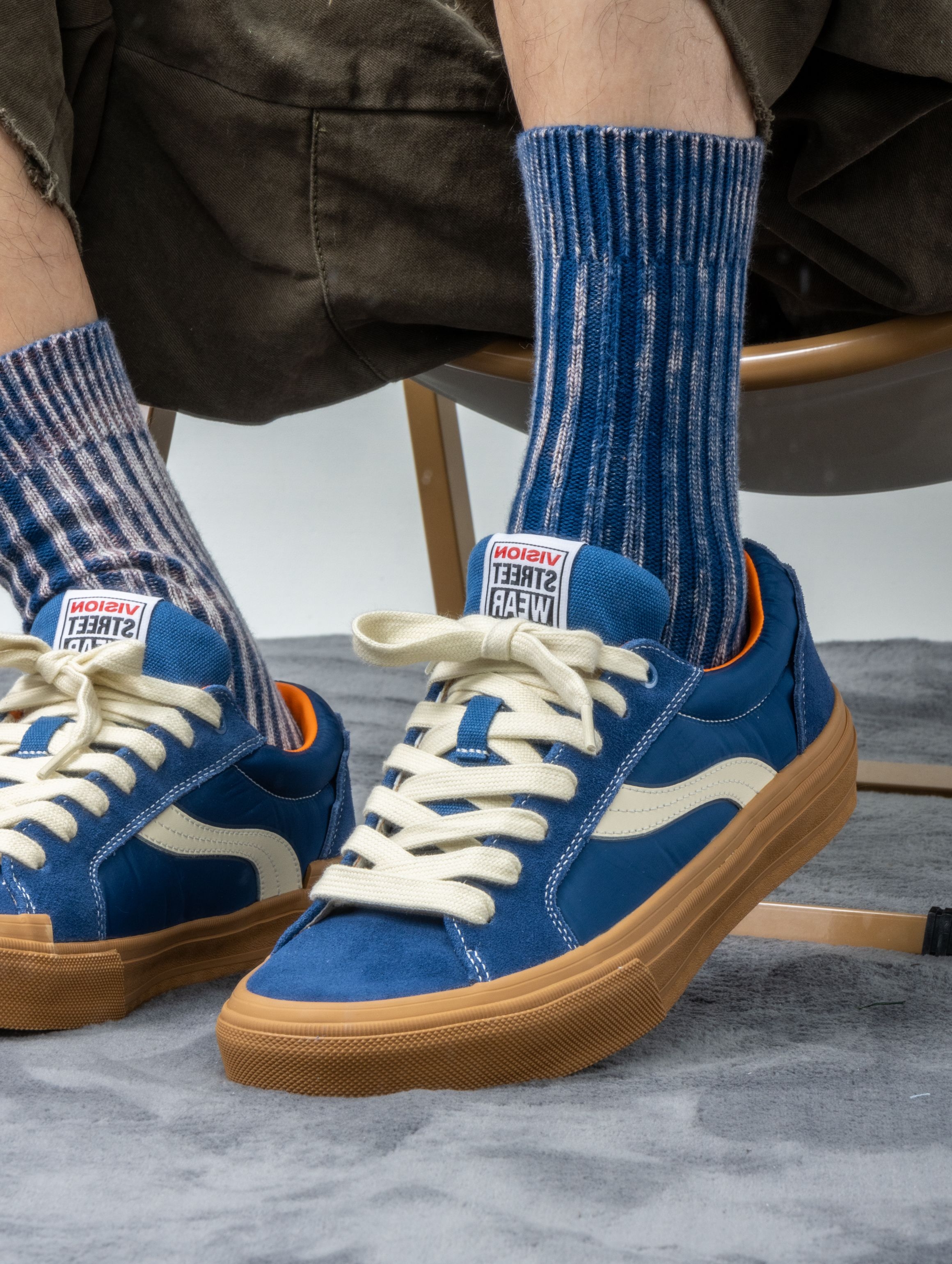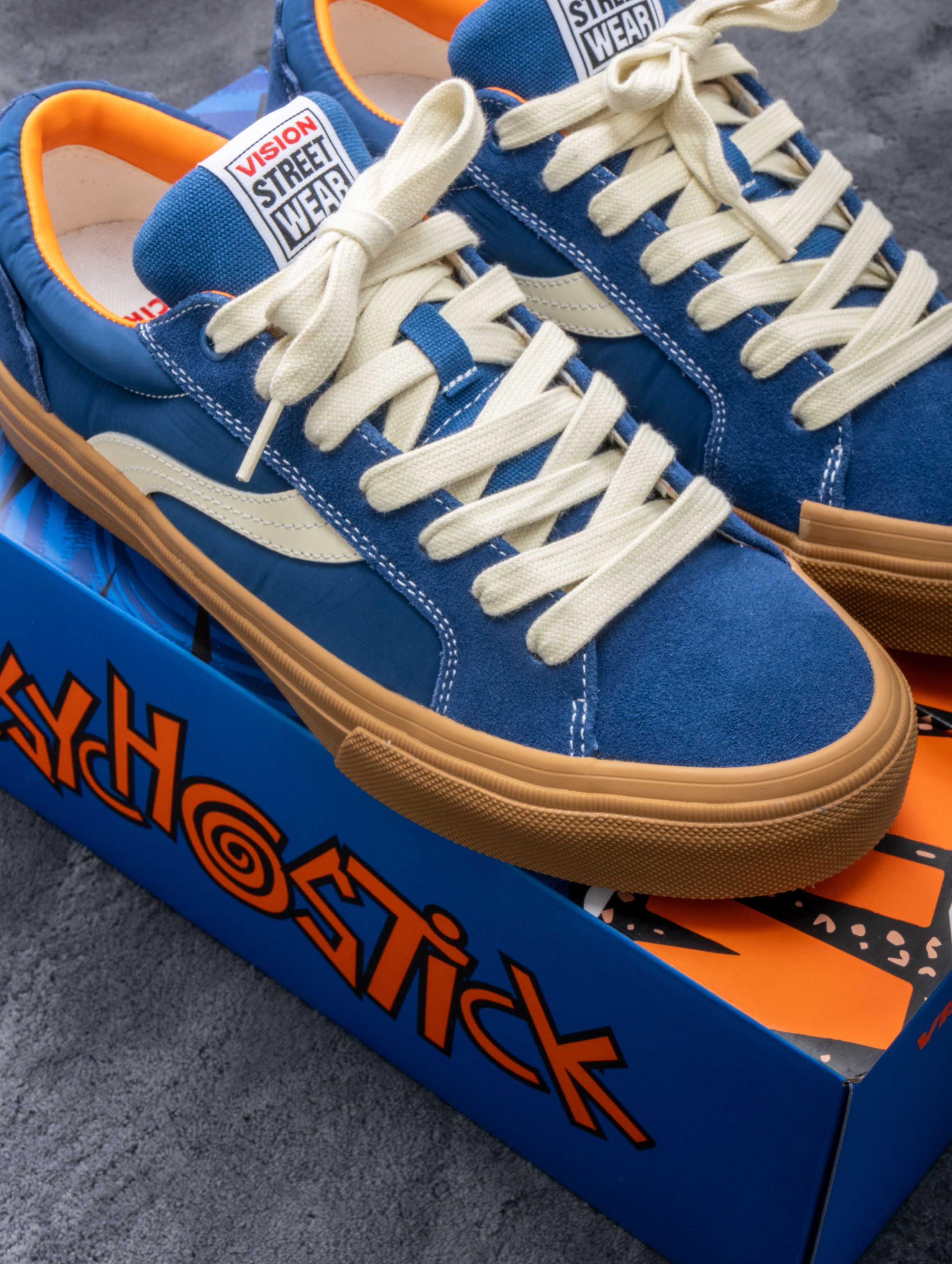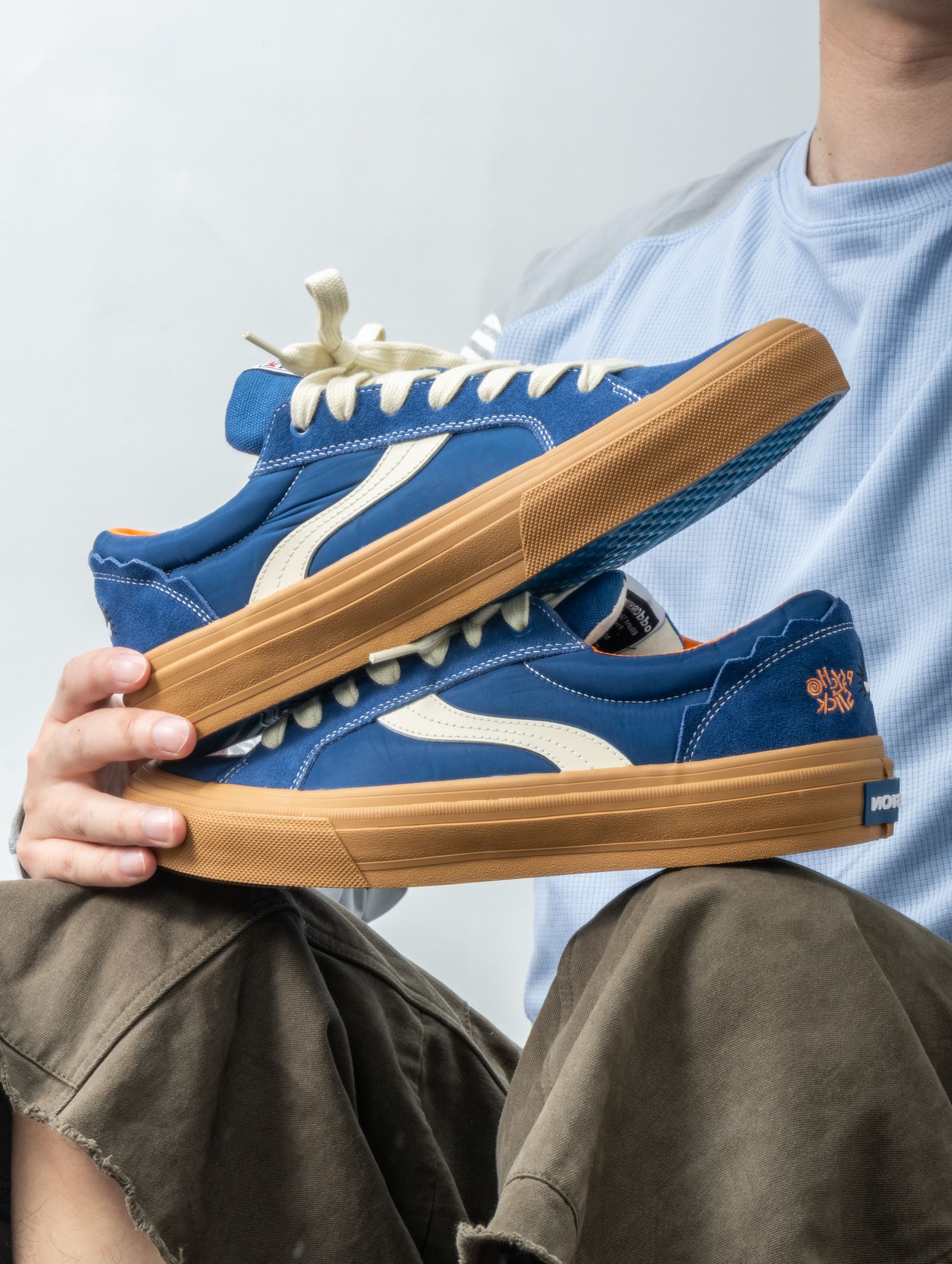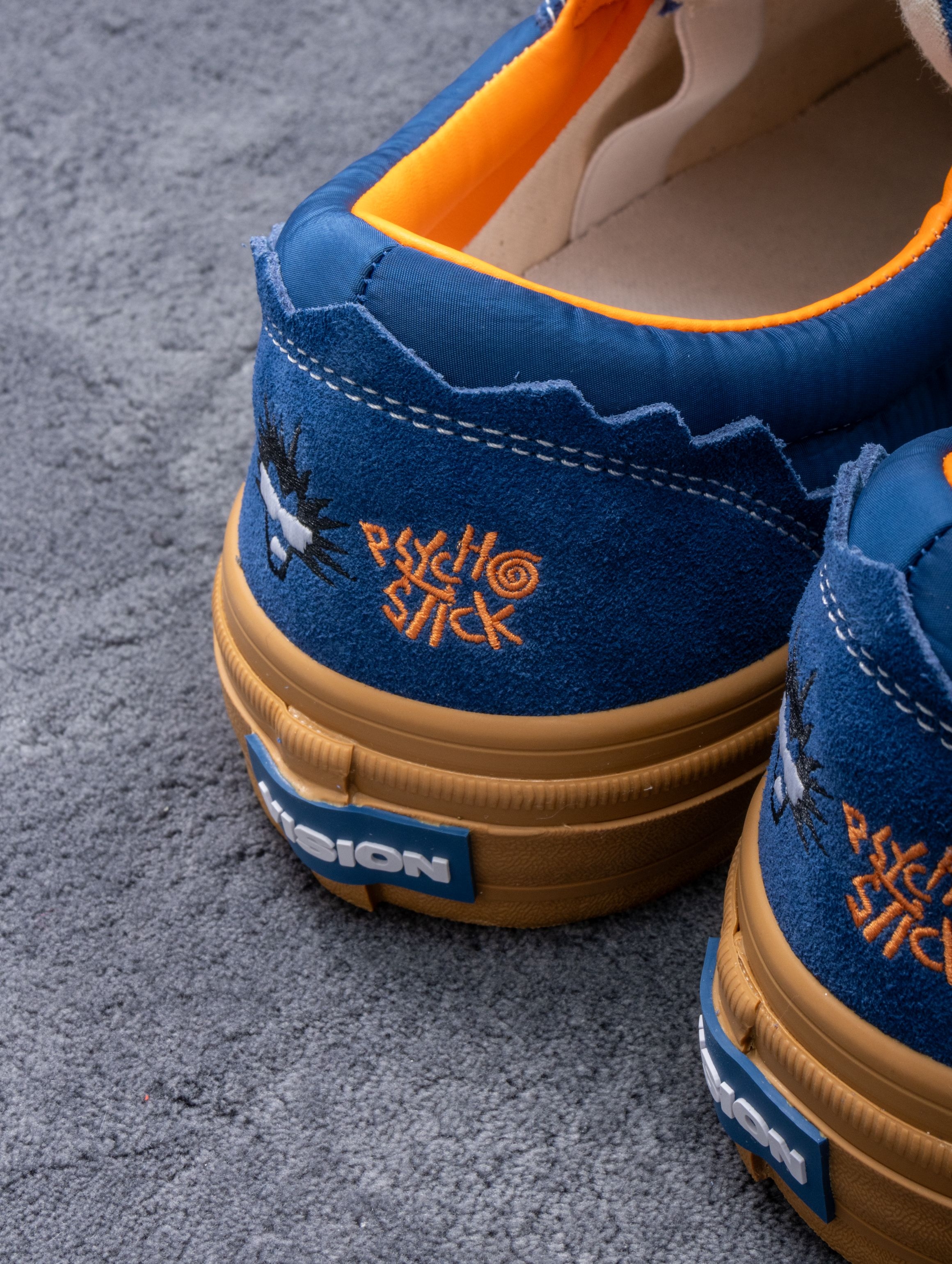 谁懂啊,时隔一年半VISION PSYCHO限定终于回归。这双Astley Pro上脚就被拿捏,纯正宝石蓝帆布鞋面,加上水晶大底若隐若现的PSYCHO家族图案,脚一抬全是细节。 内衬那抹亮橙色,把多巴胺感直接拉满,夏天配工装短裤清爽又有辨识度。 脚感方面,厚帆布扎实耐磨,Ortholite鞋垫软弹舒服,暴走一天不累脚。黑白灰穿腻了,是时候给鞋柜来点“疯狂”的颜色了。
