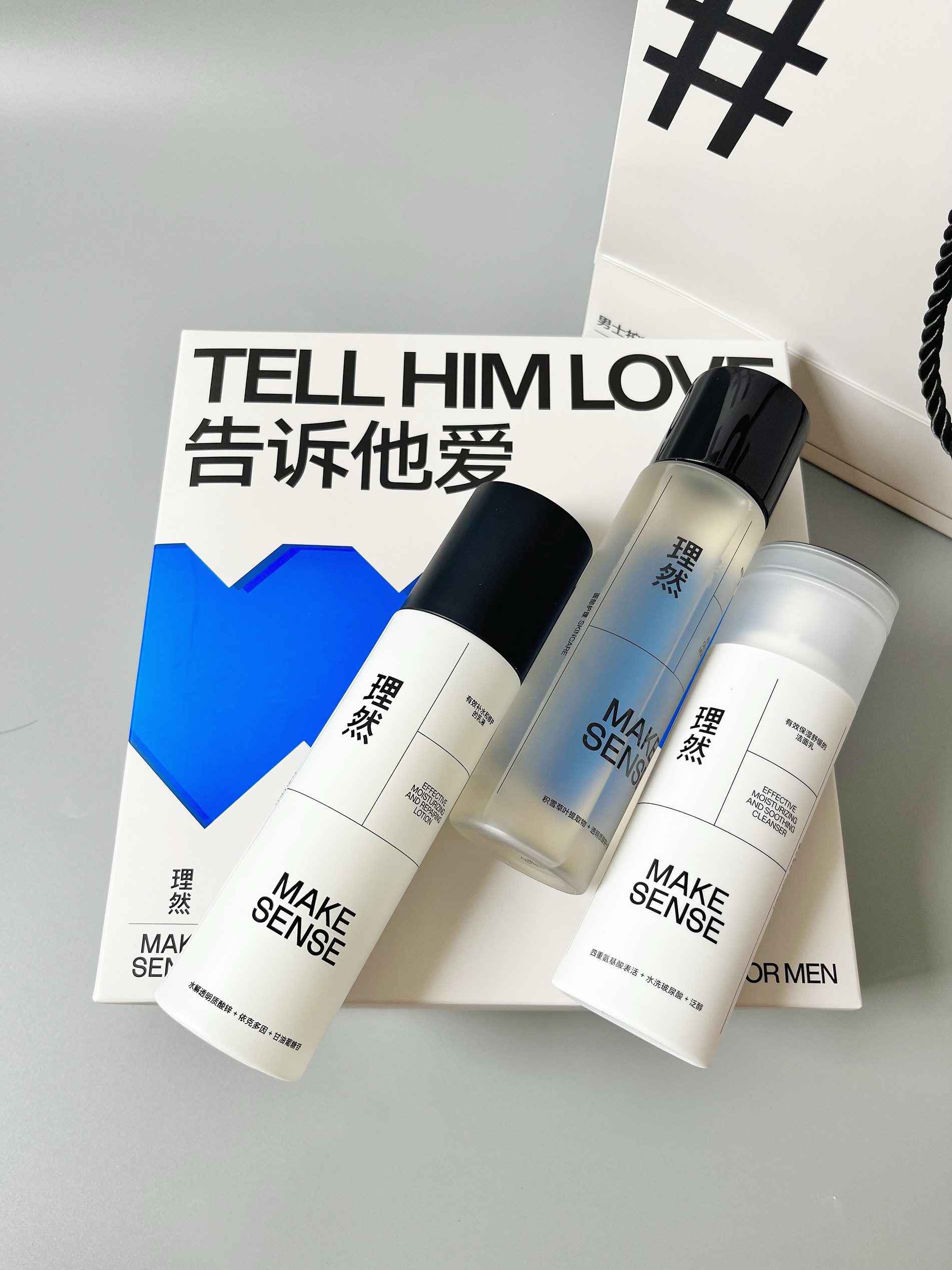 学生党挑选男朋友礼物真的好纠结 做了好久的功课 还好发现了这套理然男士的护肤品套装 礼盒包装 简约又大气 里面适合三件套 每天早晚都可以用 它主打的是控油补水 水乳质地也蛮清爽的 上脸吸收也快 价格也蛮友好的 学生党姐妹可以参考喔