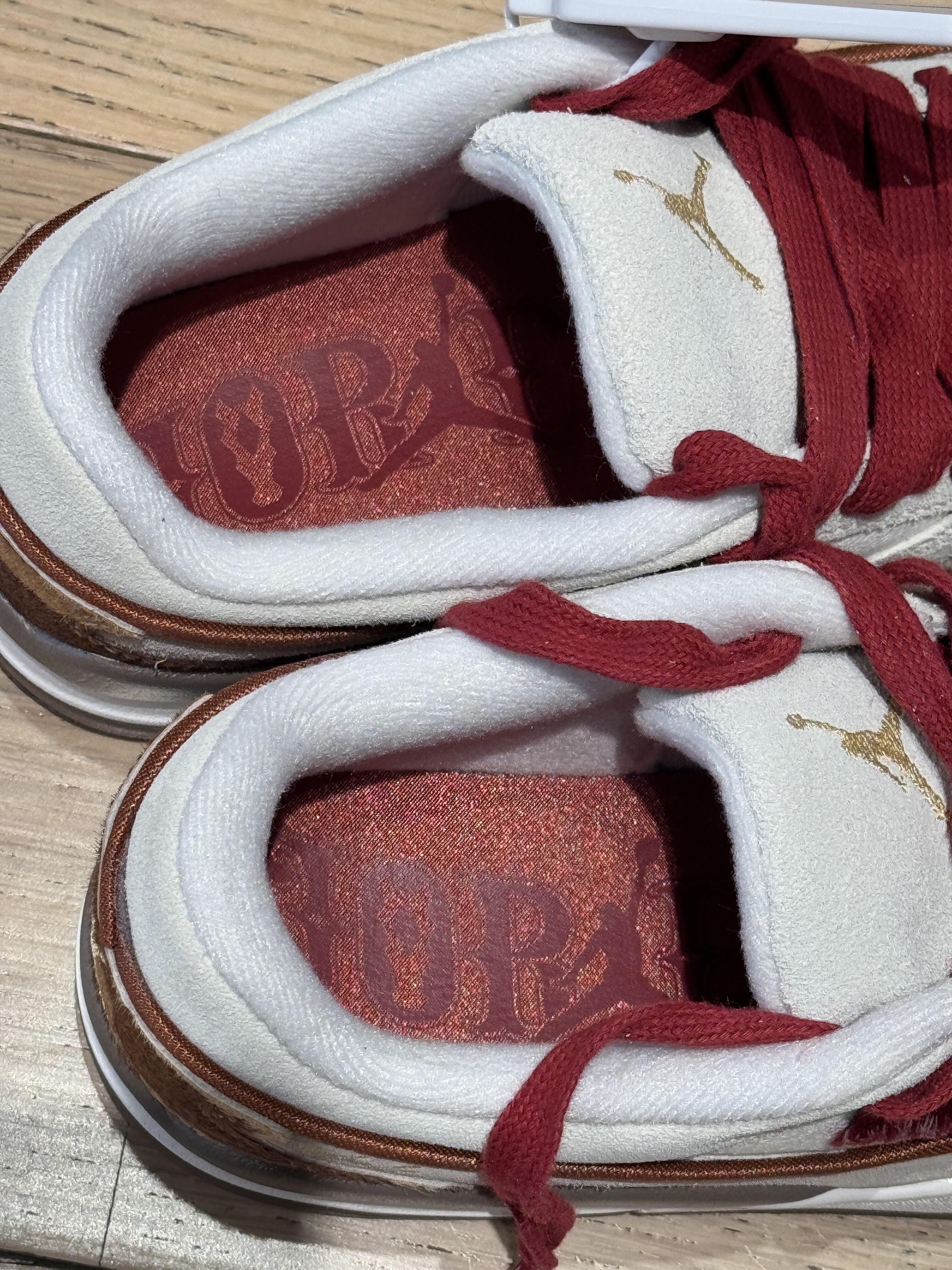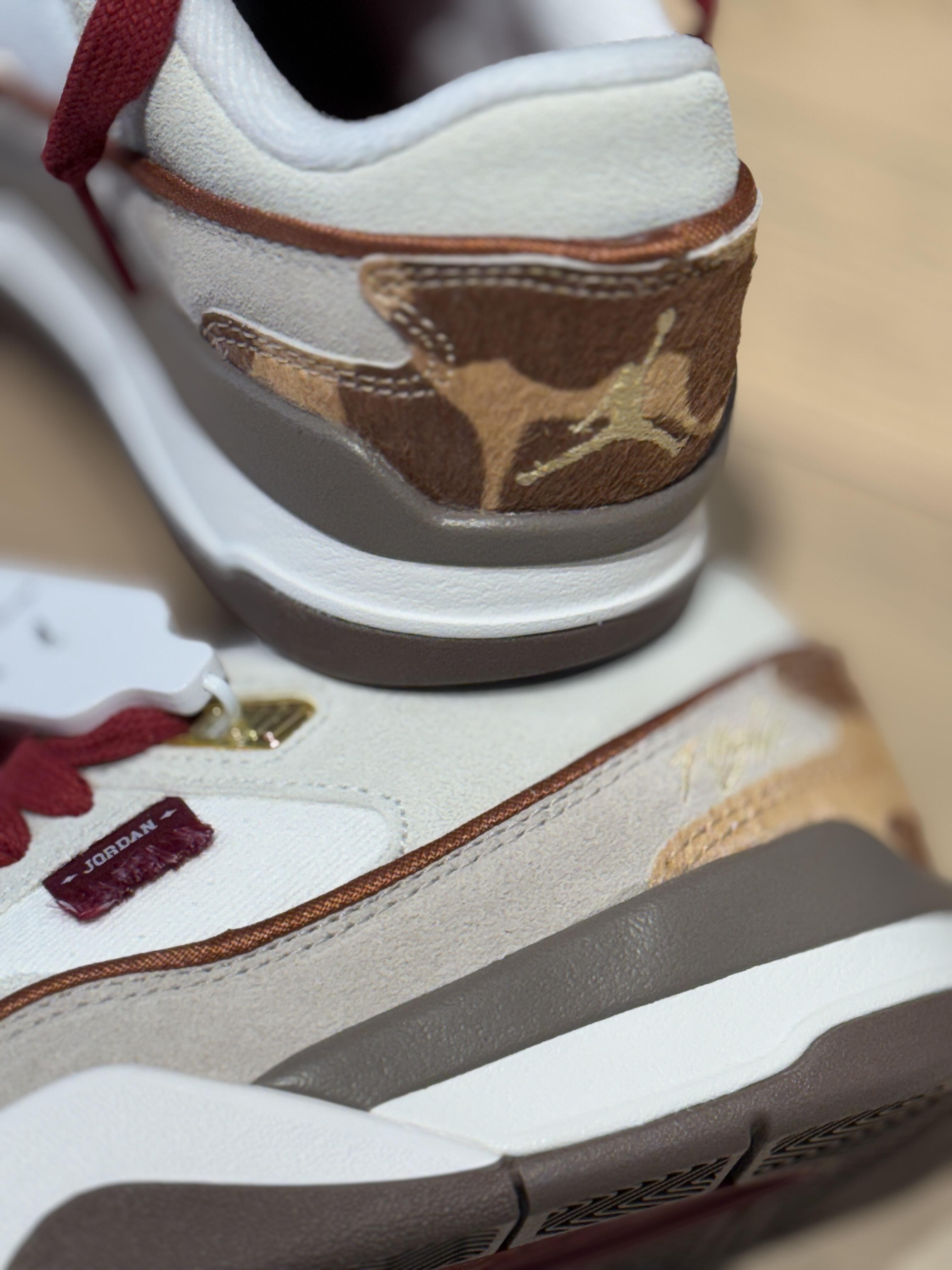 谁懂啊!这双马年限定AJ真的把“中式浪漫”焊在鞋上了 整体是奶杏+焦糖棕的复古调,配酒红鞋带直接戳中审美鞋身麂皮质感软乎乎,后跟奶牛纹皮质+金色飞人Logo 直接把“汗血宝马”的贵气感拉满! 鞋垫暗纹、上脚搭牛仔裤/运动裤都巨出片 限定款的独特性直接拉满回头率~Q0Cg “看一眼就想 all in”的年度宝藏鞋款,这波不冲真的亏!