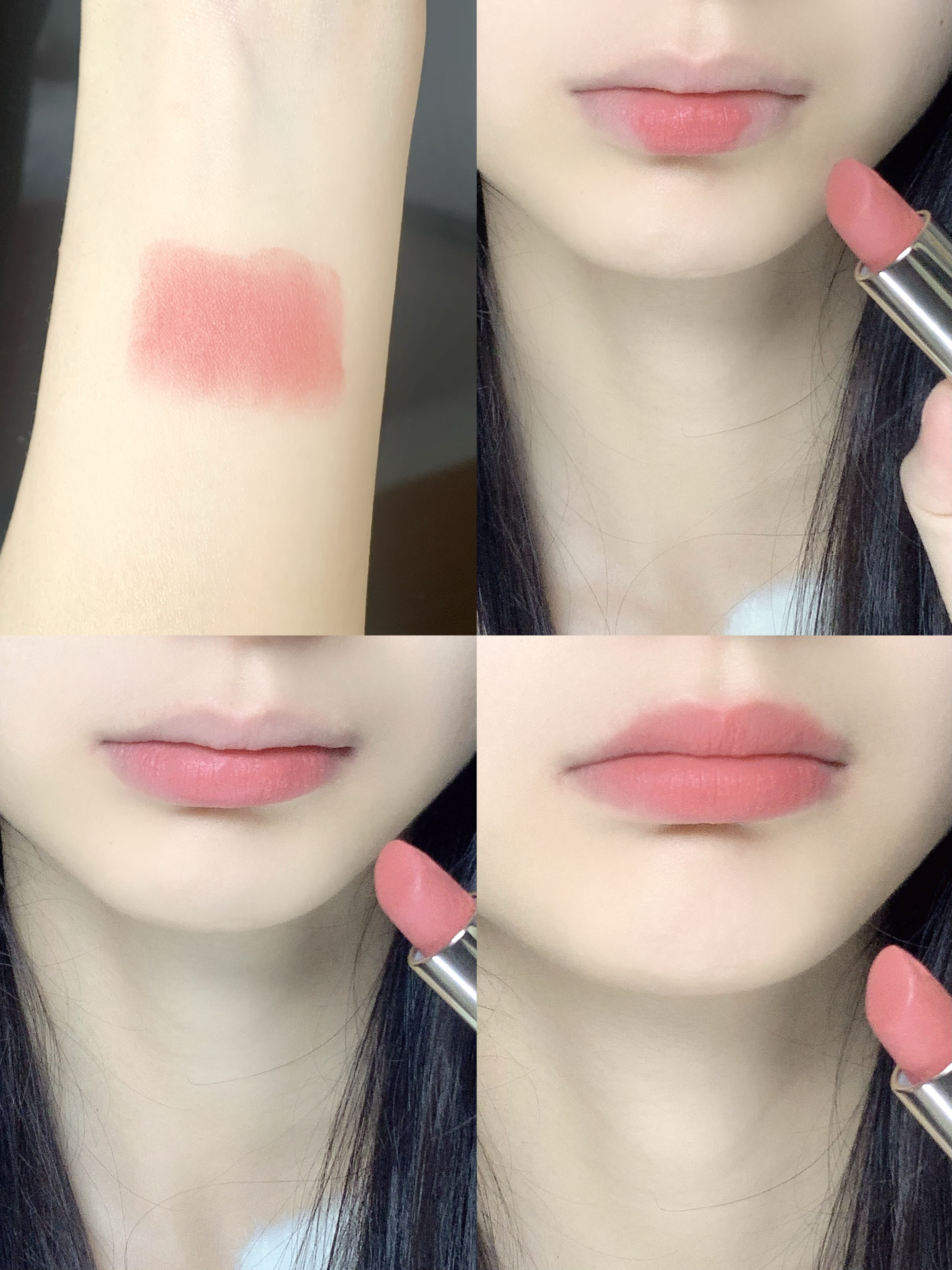 -色号定位:低饱和的玫瑰裸粉/乌龙奶茶色,上嘴是清透的“妈生感”。 不挑皮,素颜或淡妆通勤都很合适。深唇色可能覆盖力不足,更适合作为丰唇提亮。 - 妆效质地:镜面水光感,质地轻薄。 上嘴有清凉感,配方含樱桃油和玻尿酸微珠,能即时滋润、淡化唇纹并带来丰唇效果。 - 核心功效:90%天然成分,能显著提升唇部饱满度和光泽感。