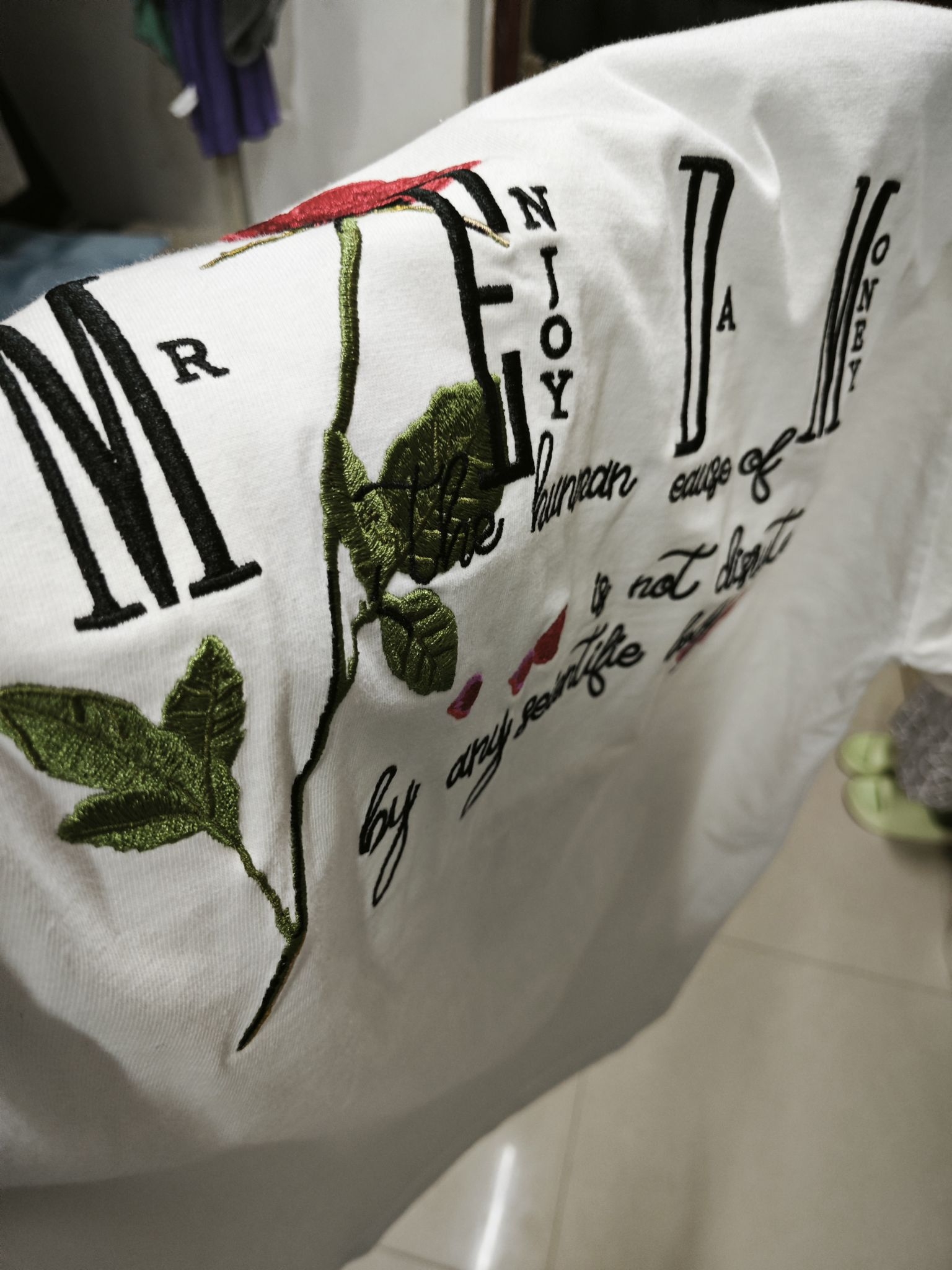 本篇笔记关联了【梓渝同款】MEDM 街头白玫瑰花立体刺绣圆领短袖T恤 MEDM00337 白等商品,为用户提供真实的使用体验和购买参考。