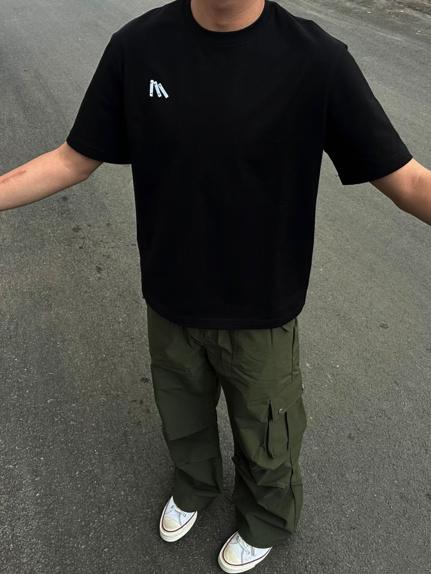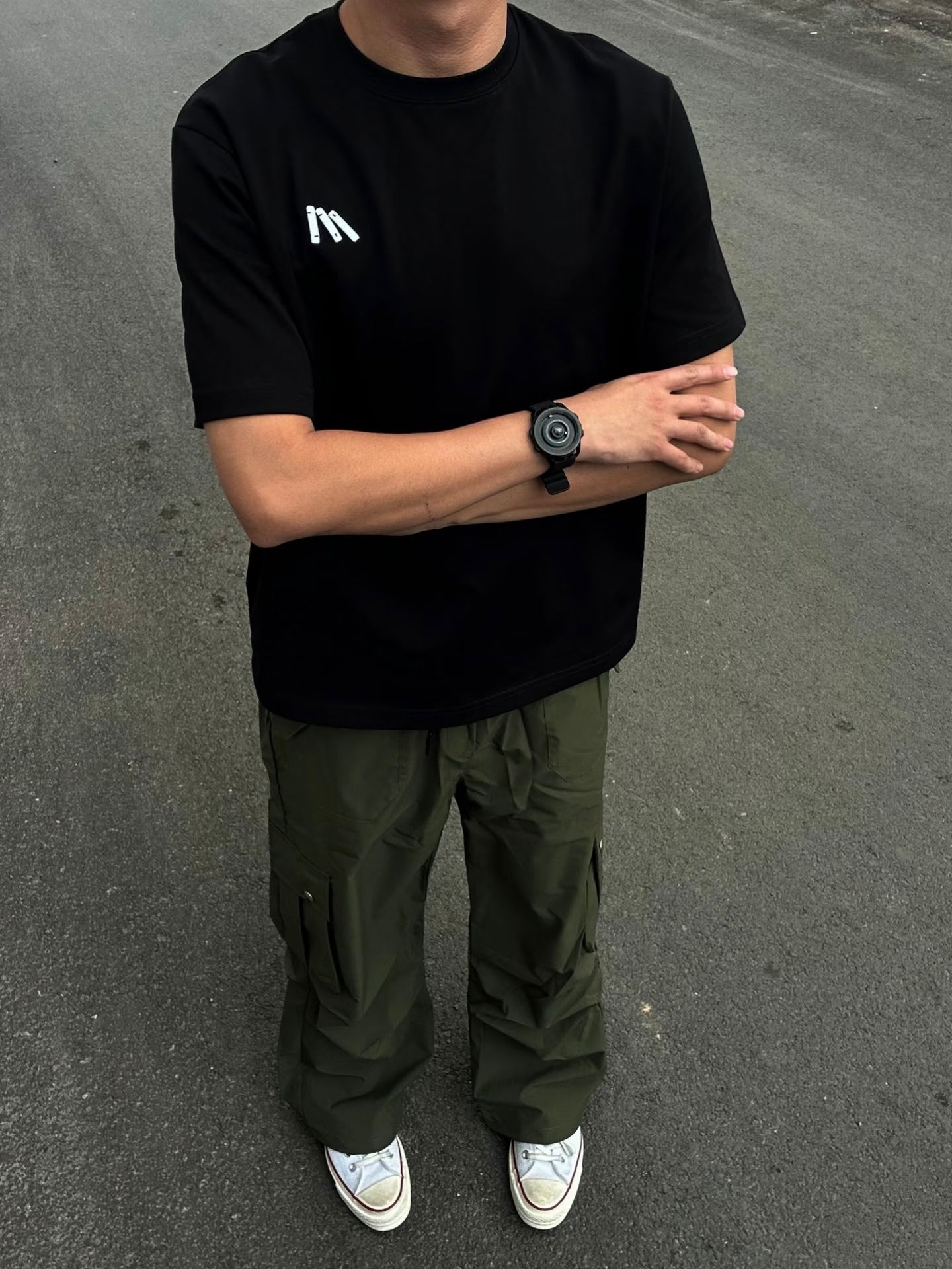 简约黑T + 军绿工装裤 利落又有态度,工装裤的褶皱和口袋设计,瞬间拉满街头感,不挑身材还显腿直,不用费脑搭配,出门随便一套,就是不费力的少年感。