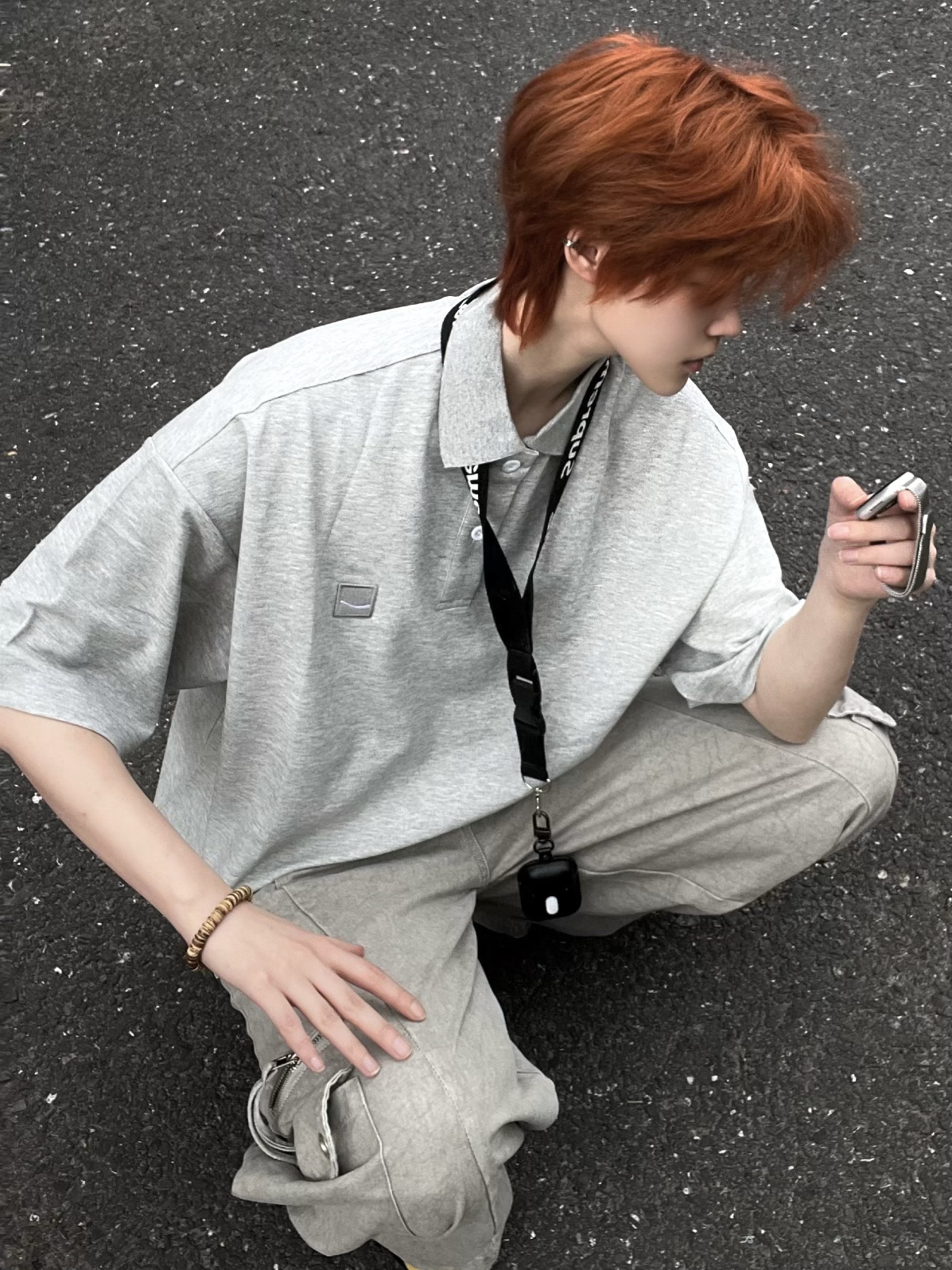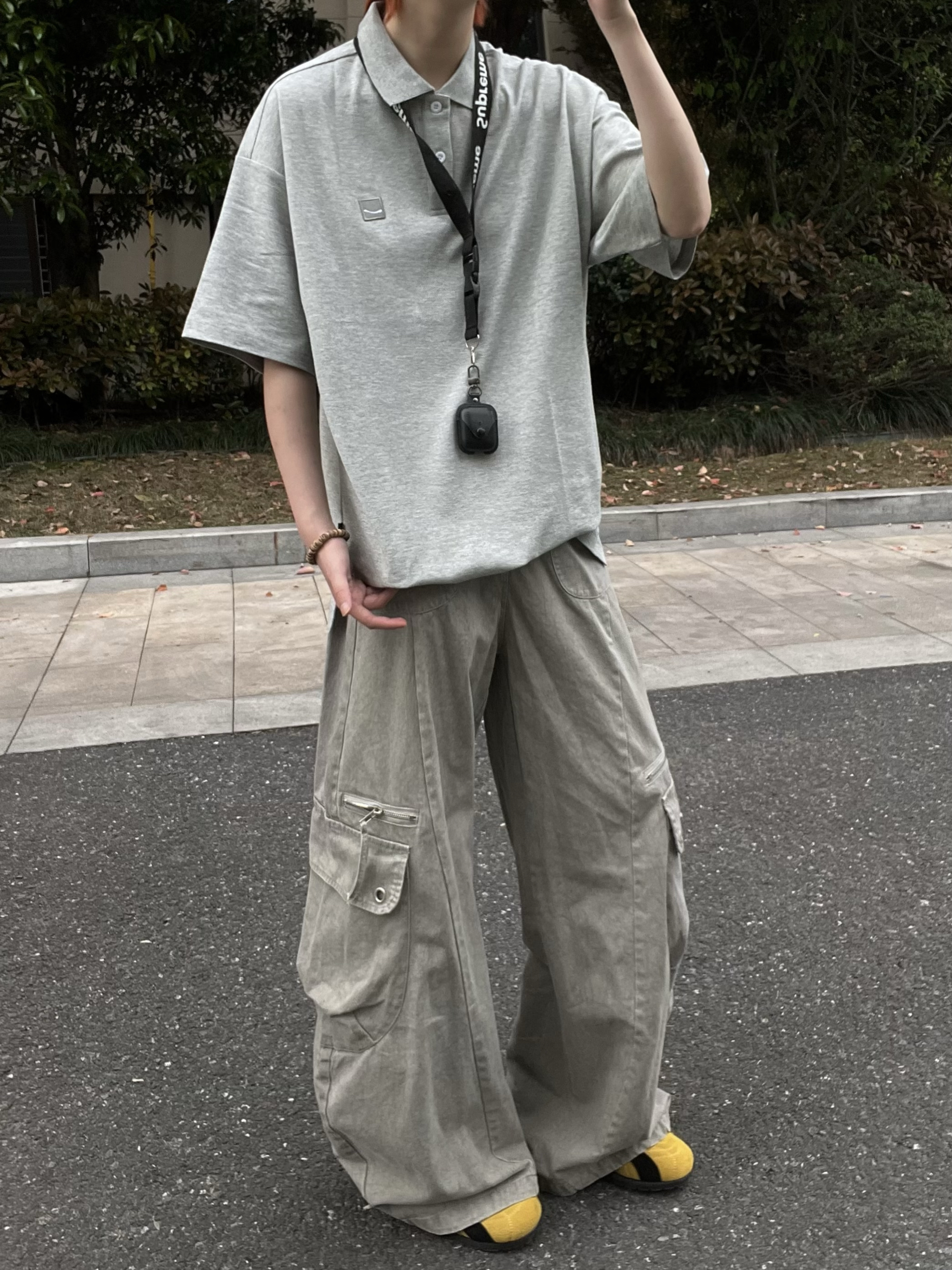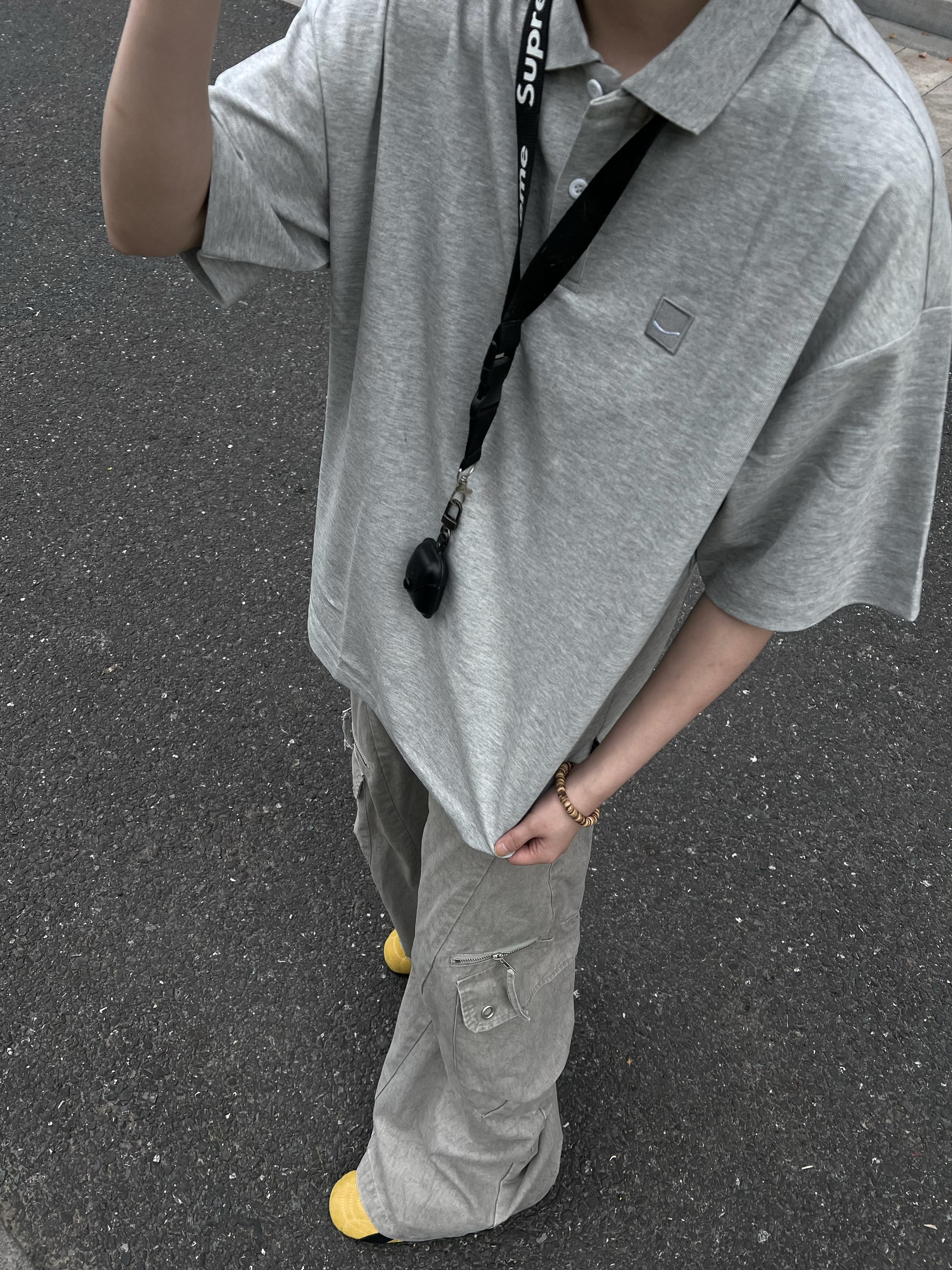 终于挖到了“懒人穿搭”的天花板✨ 一身同色系灰调真的太有质感了! oversize的polo衫完全不挑身材,小方标低调又有细节,搭同色系工装阔腿裤,上宽下宽的版型,把松弛感焊在身上。 挂绳和手串的小配饰,再加上一双亮黄色鞋子,悄悄提亮整体,不会太单调。 日常出门不用费脑搭配,干净又舒服,自带少年感的清爽氛围。 谁懂啊,这种不刻意的松弛感真的很难不爱!