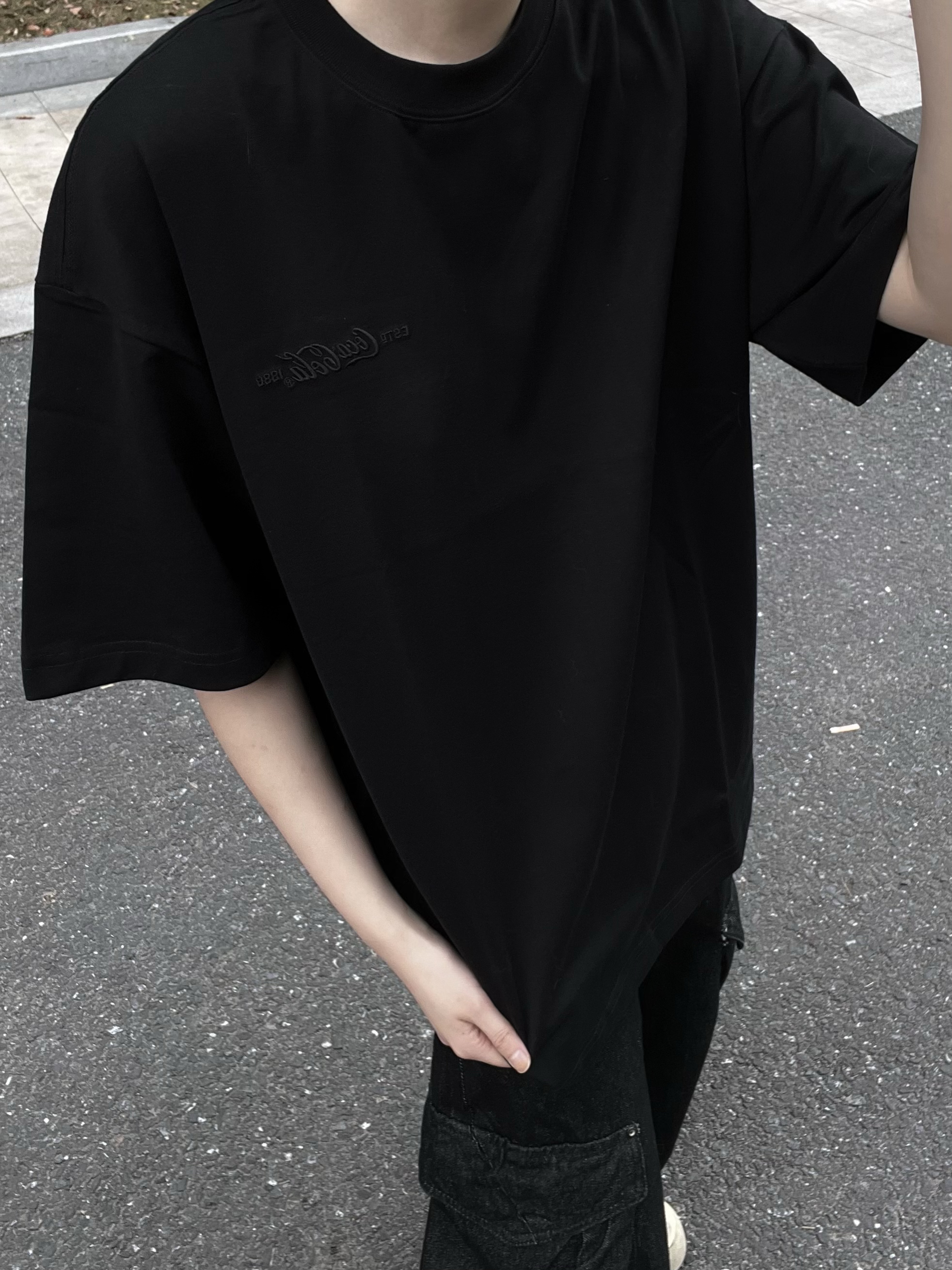 【街头感ootd|暗纹黑T,自带拽感buff😎】,由用户 Clime今天穿什么 分享,来自浙江。这是一篇来自识货社区的真实用户分享笔记。