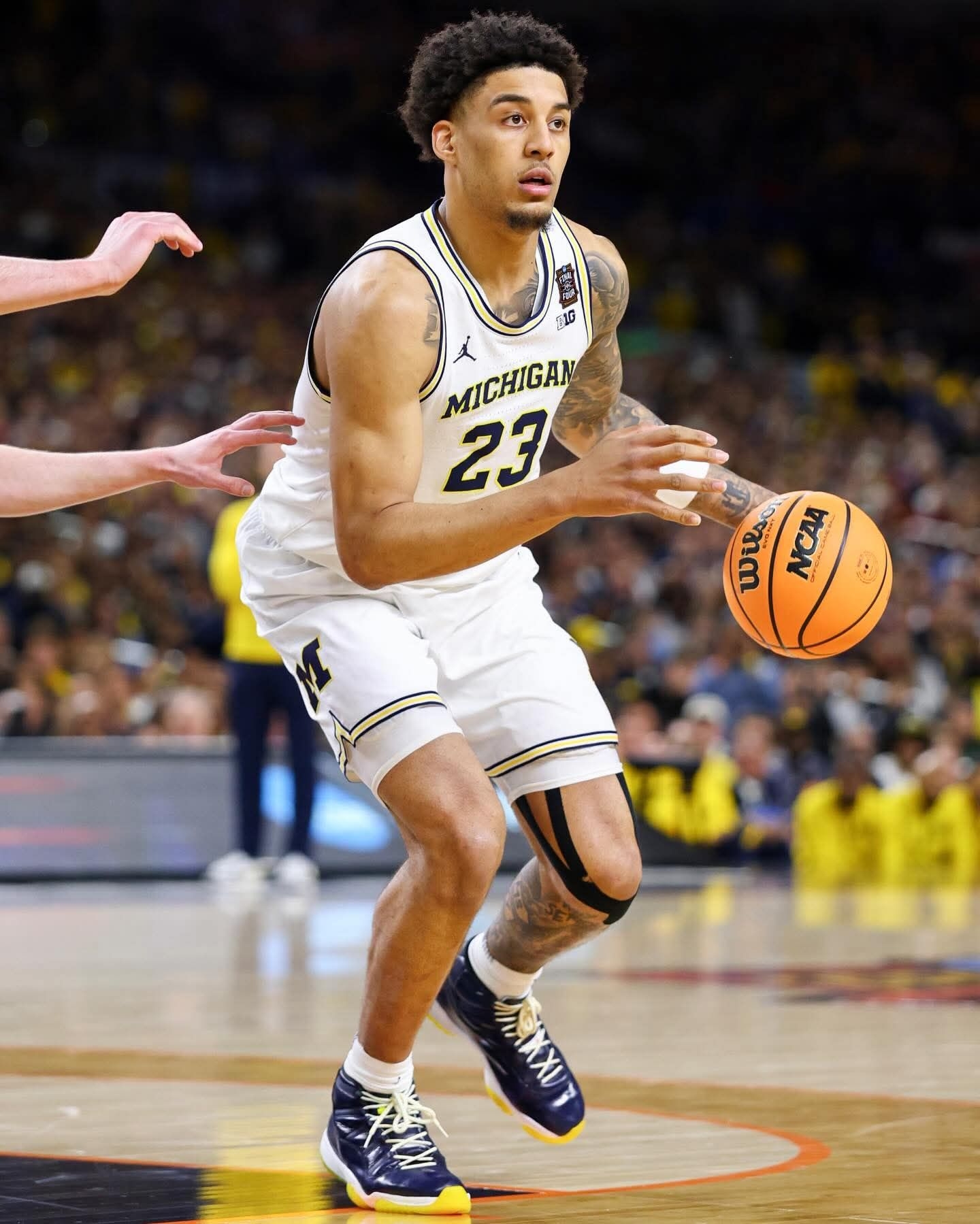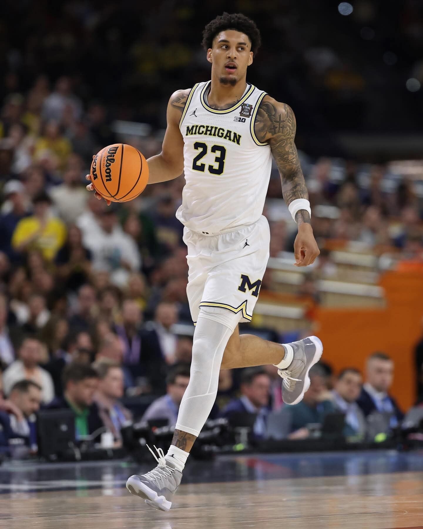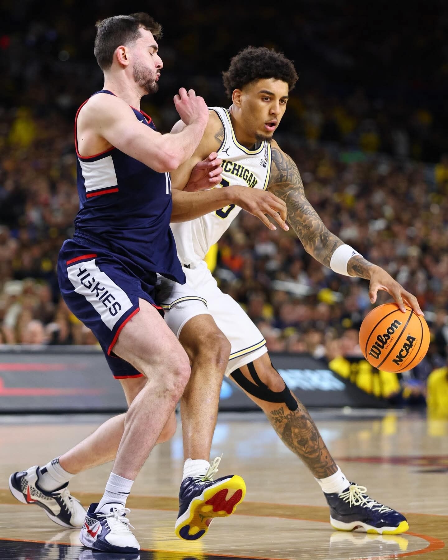 密歇根大学球员Yaxel Lendeborg,在NCAA决赛上脚专属定制AJ11! 藏蓝主色+密歇根黄点缀,完美呼应球队主场配色,鞋舌细节直接拉满 AJ11经典鞋型+大学专属定制,把大学篮球的热血与情怀穿在脚上 这才是NCAA赛场的专属浪漫,每一双定制鞋都是球员的信仰