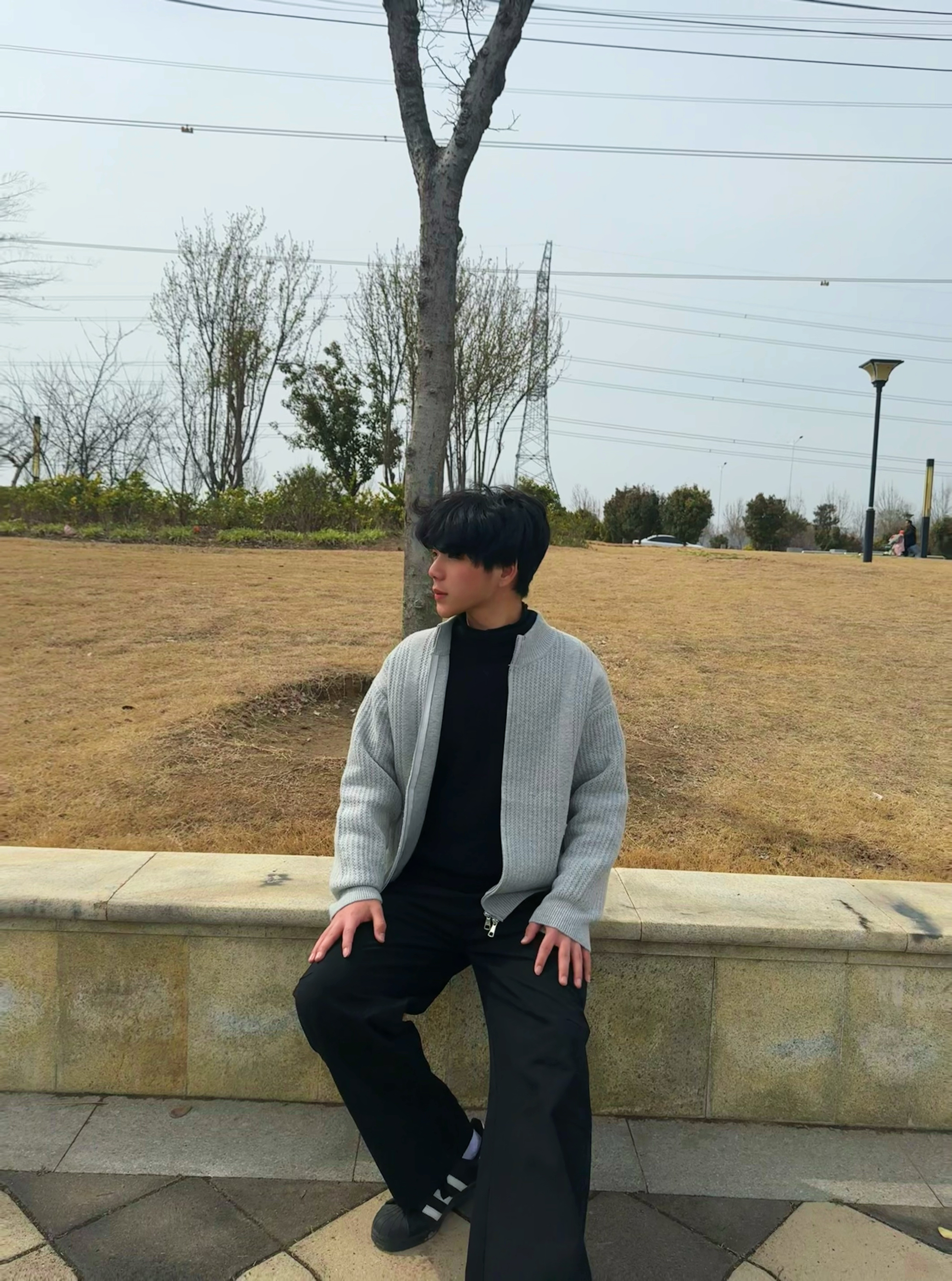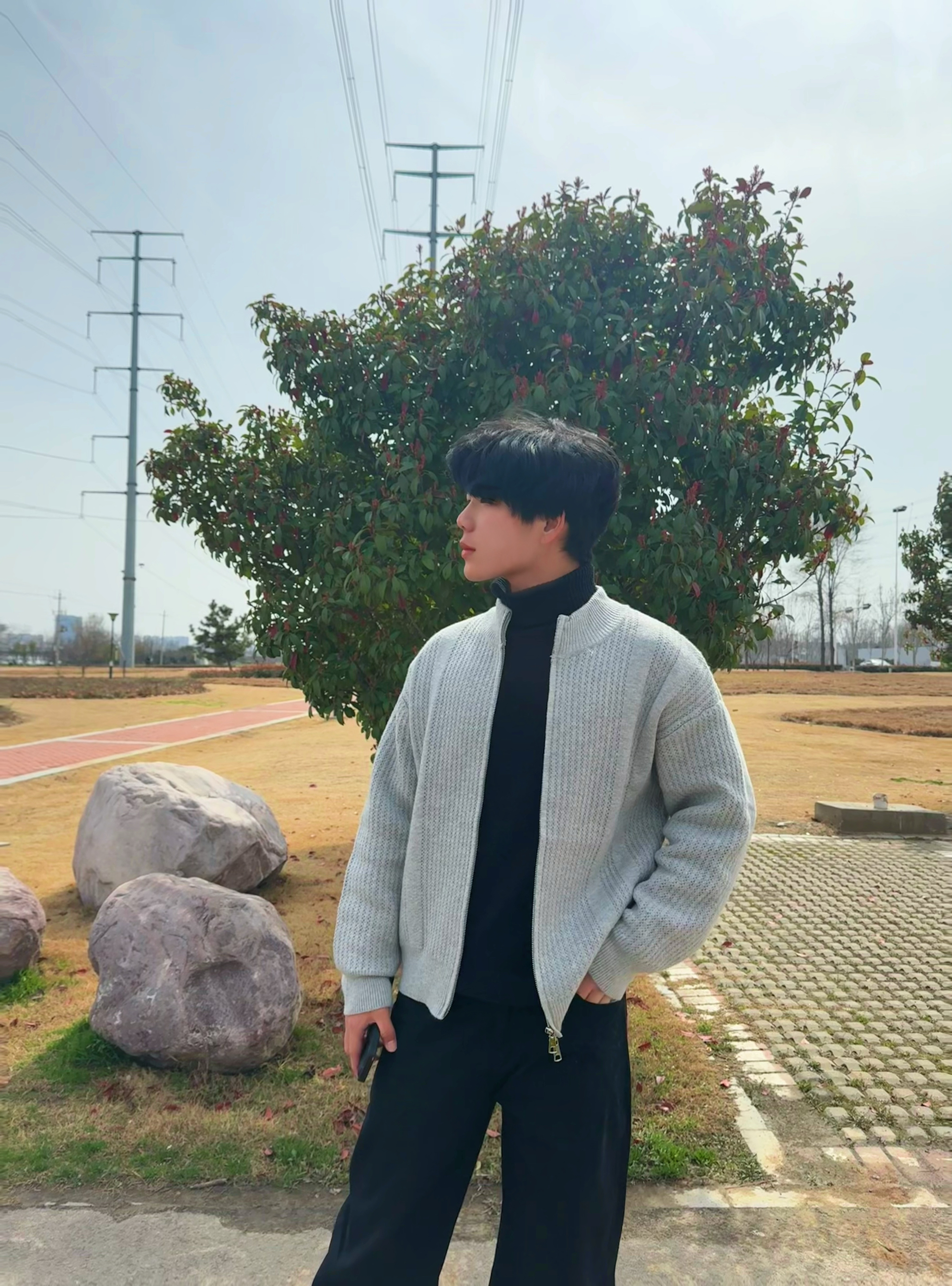 上身这件灰色开衫,面料软糯又厚实,贴身穿特别暖和,完全不扎皮肤。宽松的版型不挑身材,穿起来自在又松弛,拉链设计穿脱方便,还能随意调节开合度,日常通勤或者出门玩都合适。