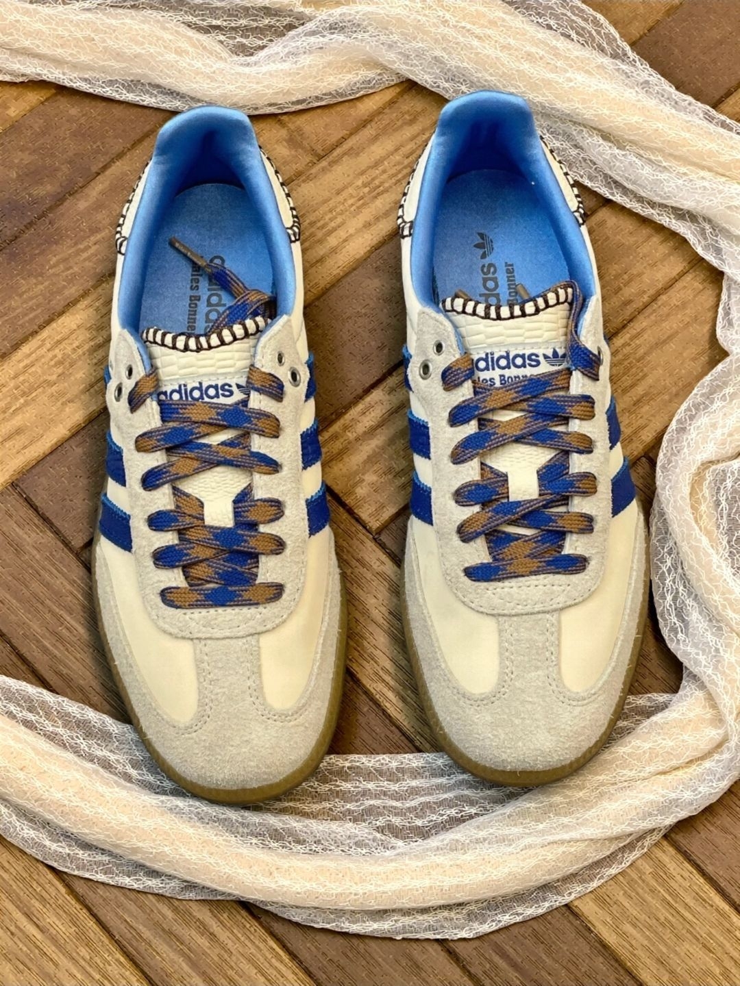 作为一个德训鞋爱好者,这双 Wales Bonner 联名款真的太戳我了🥹 蓝白配色清新又高级,编织鞋带、手工缝线的细节,每一处都很用心。 上脚试了下,鞋型很贴脚,完全不磨脚,鞋底软乎乎的,走路很舒服。麂皮 + 皮革的拼接,质感拉满,完全不挑穿搭,配牛仔裤、小裙子都超有范儿。之前穿别的联名款鞋子,总怕不好打理,这双的材质很耐脏,日常穿完全不心疼~