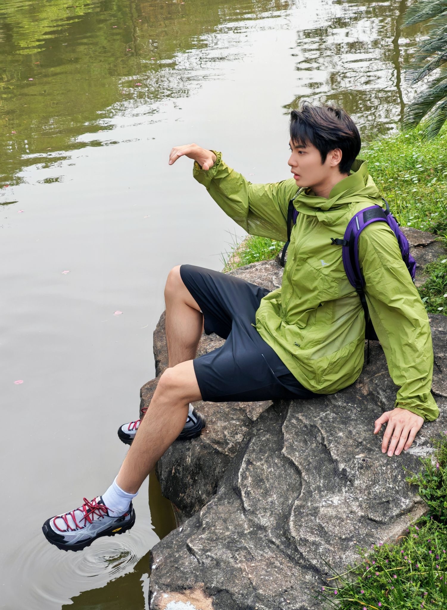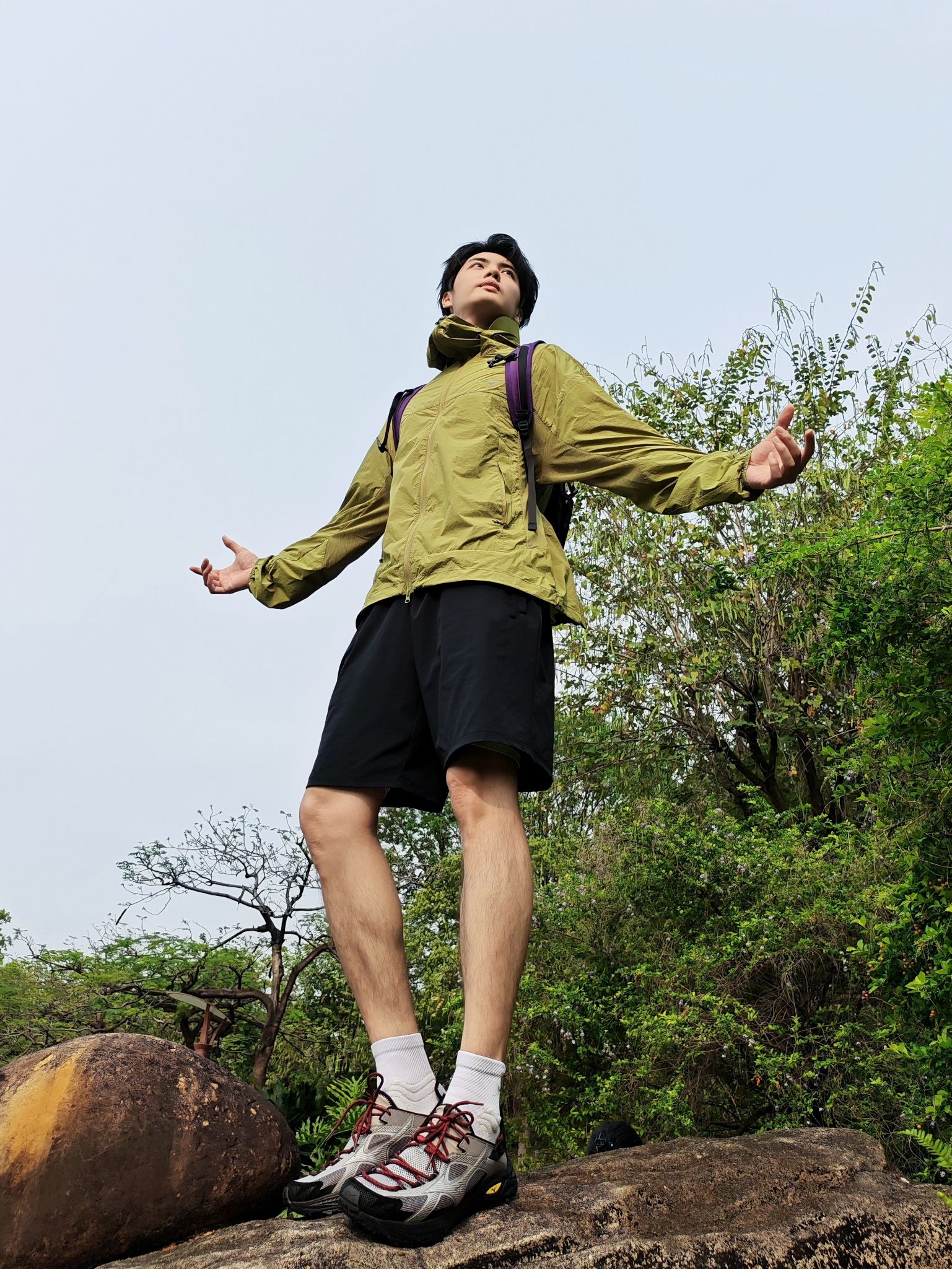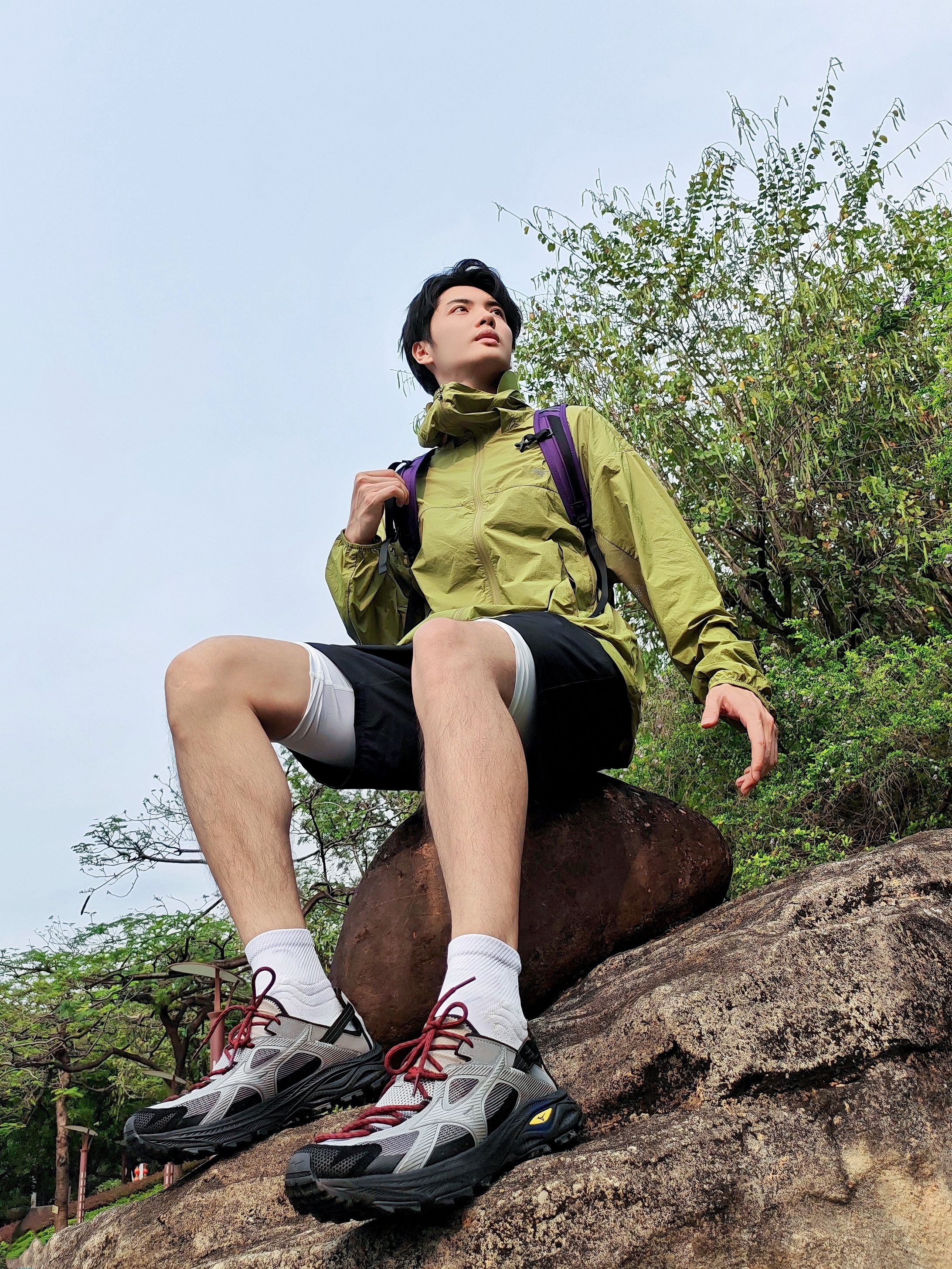 谁懂啊!这套户外穿搭直接把春日氛围感拉满✨ 重点夸夸这件果绿防晒衣,低饱和的绿色在自然里巨出片,面料轻薄透气,连帽设计既能防晒又自带松弛感,日常通勤、轻徒步都能hold住,完全不挑场景。 还有这双灰红户外鞋真的是点睛之笔!复古撞色设计超吸睛,上脚软弹舒服,防滑耐磨的大底也完全适配户外路况,和果绿上衣一搭,少年感直接拉满,整个人都透着清爽的活力感,出门被问了好几次链接~