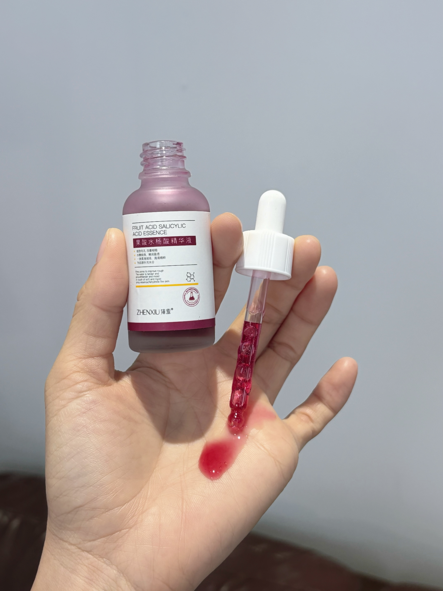 不知道是经常熬夜 还是化完妆后卸妆没卸干净 下巴脸颊都长出了好多闭口 鼻头黑头也是越来越多 各种刷酸尝试下来感觉是这个果酸水杨酸是比较好用的 我平时就隔两天拿棉片湿敷闭口粉刺多的地方 黑头就敷得更久些 它里面是果酸+水杨酸结合所以比较温和 我是敏感肌用起来感觉也不会刺痛啥的 滴管的设计也是更贴心 很卫生呀 用一周左右明显感觉脸都平滑了呢 宝子们等我再用过一段时间来跟你们再次分享哦!