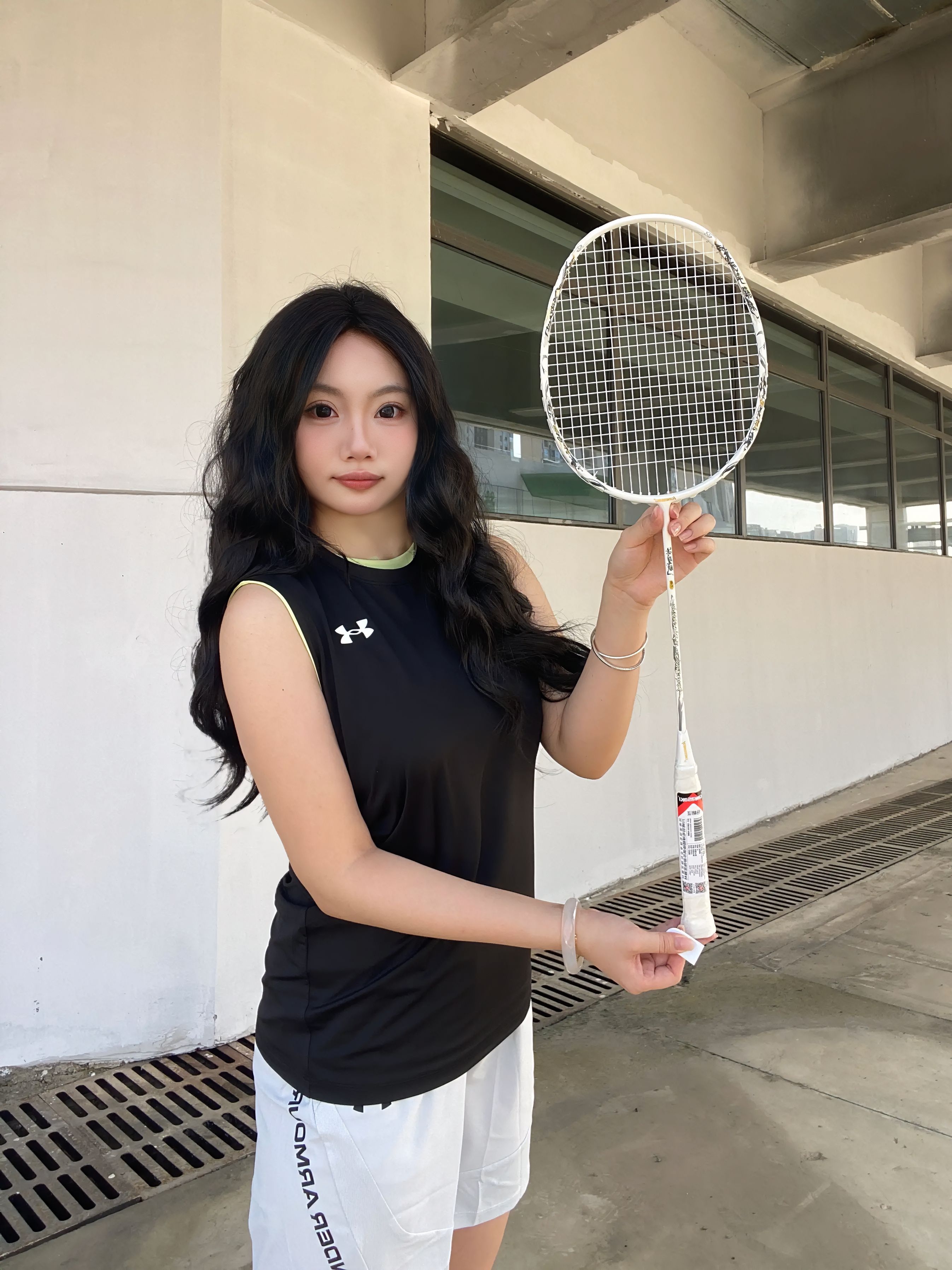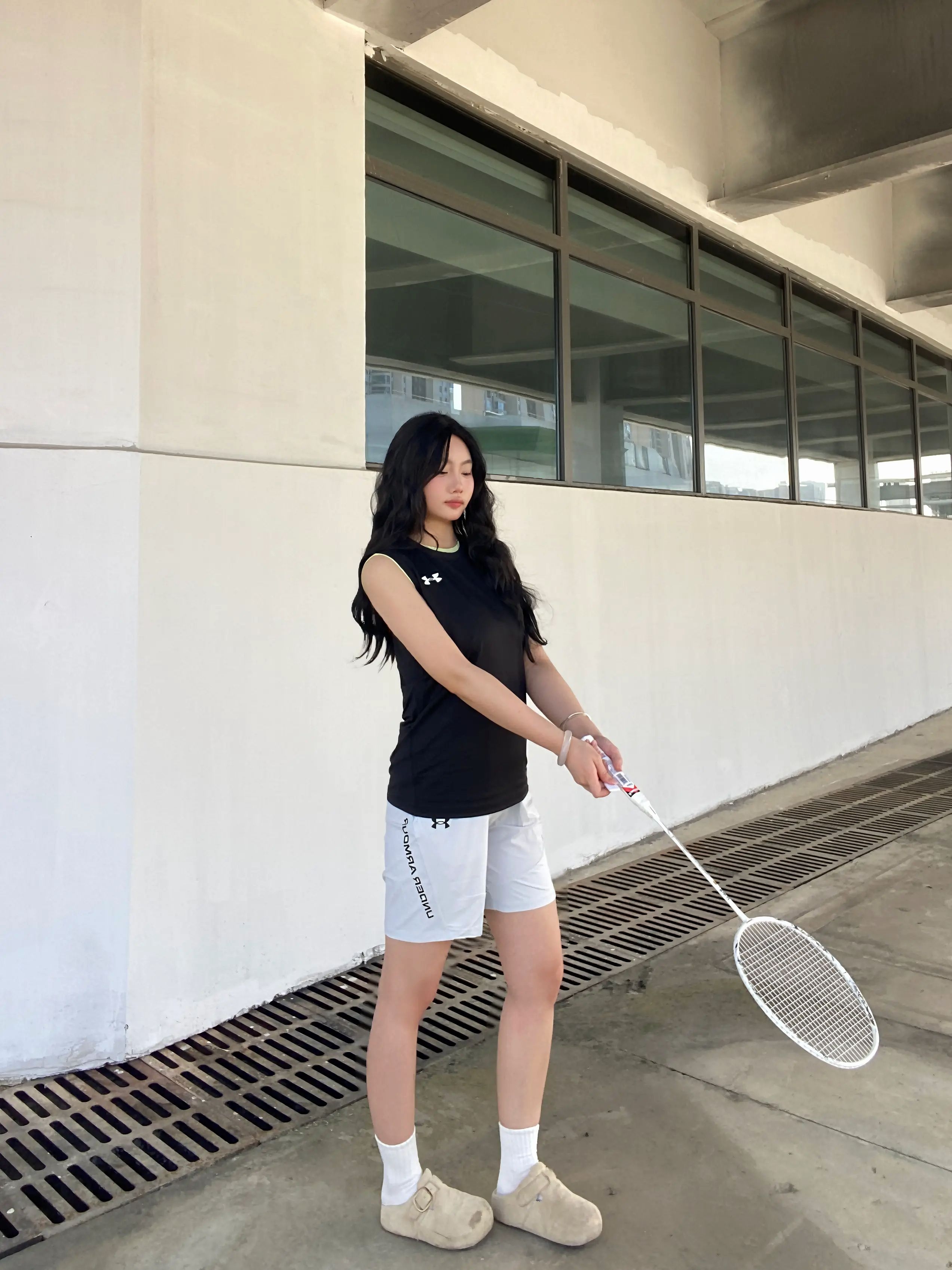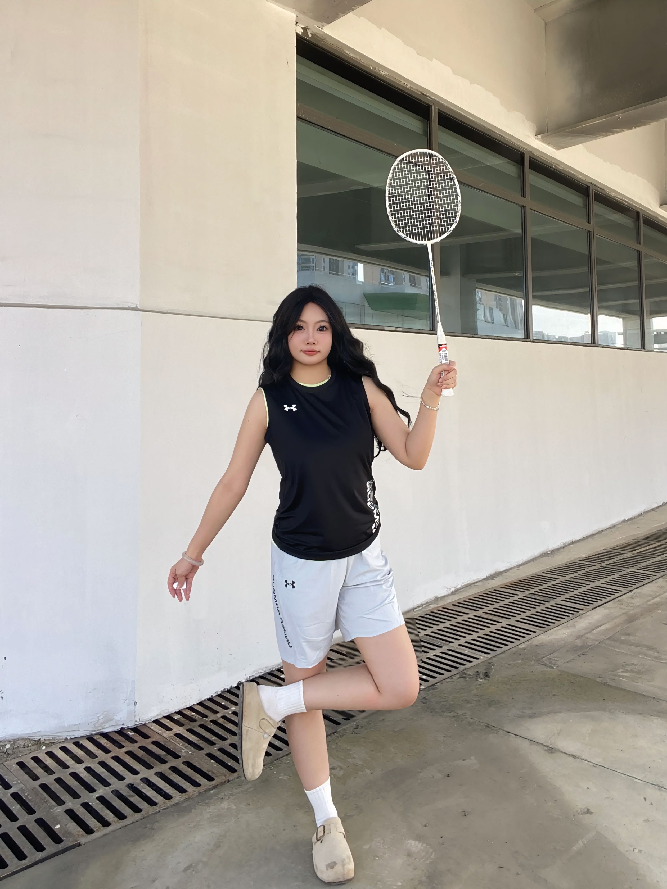 黑灰运动套装清爽又活力 无袖设计超显利落 散热又清爽 搭配勃肯鞋和白袜 休闲感满满 羽毛球拍一拿 运动少女感还不被我拿捏 日常打球、健身运动直接套上 微胖姐妹也能轻松驾驭~
