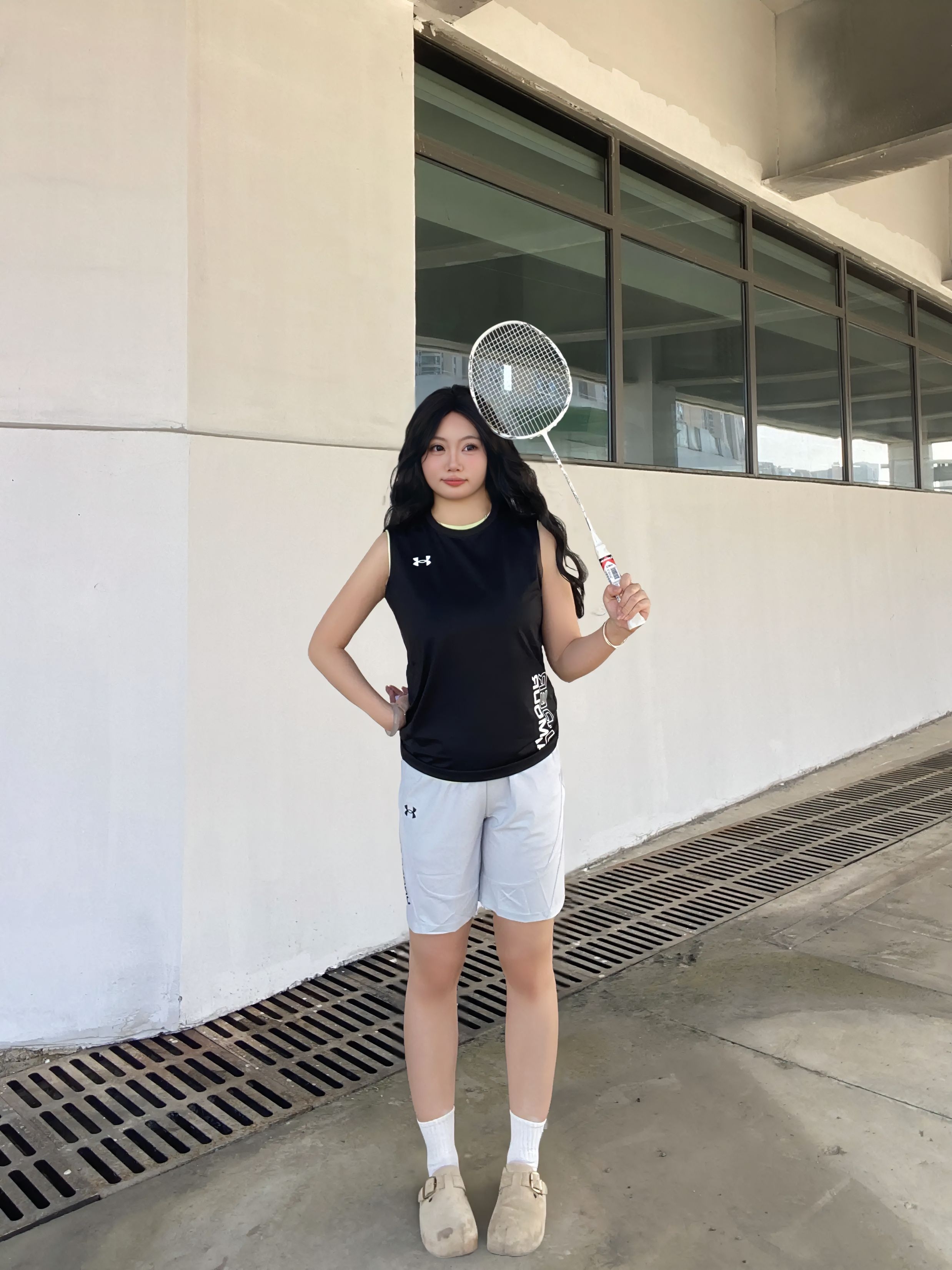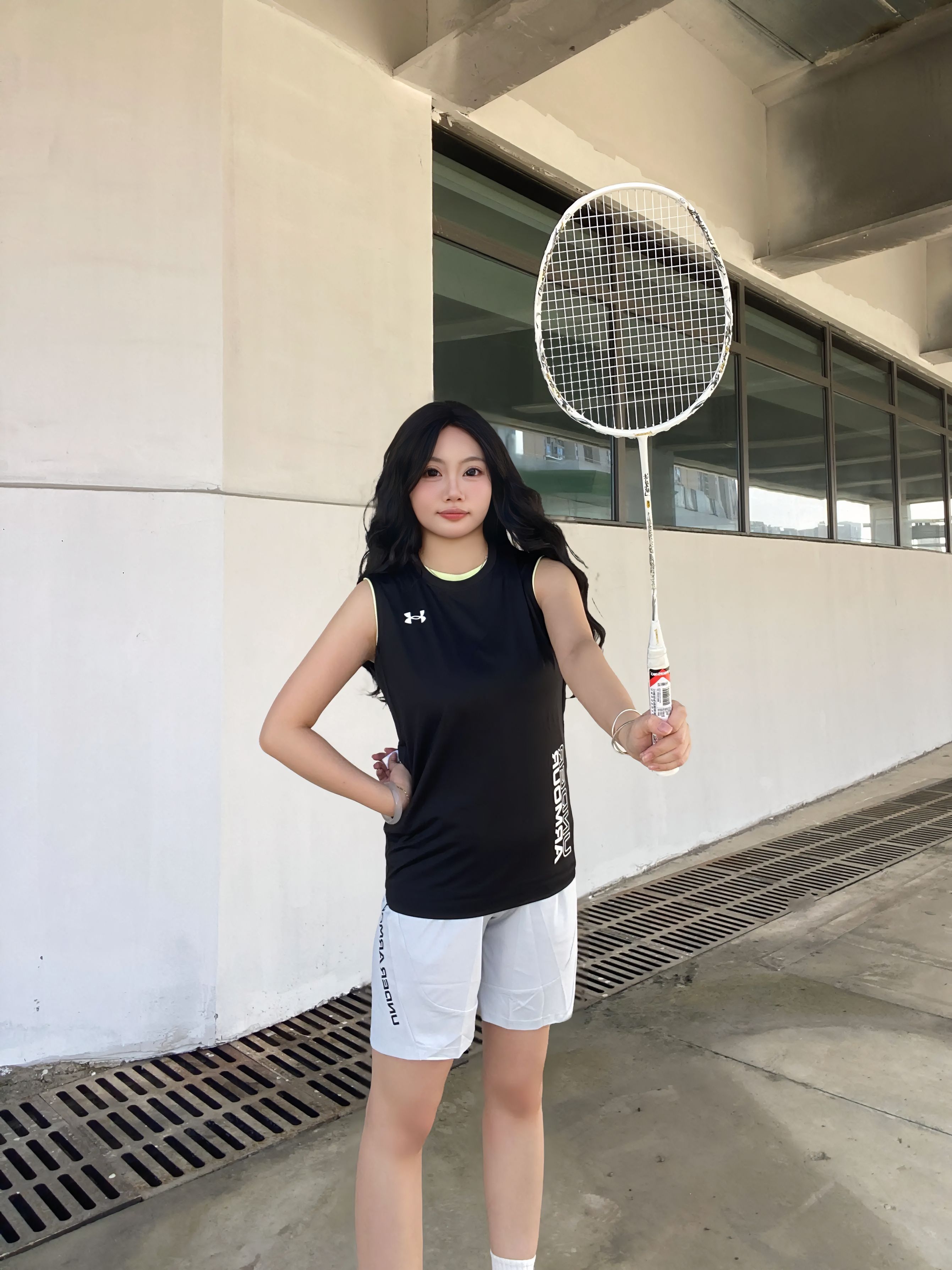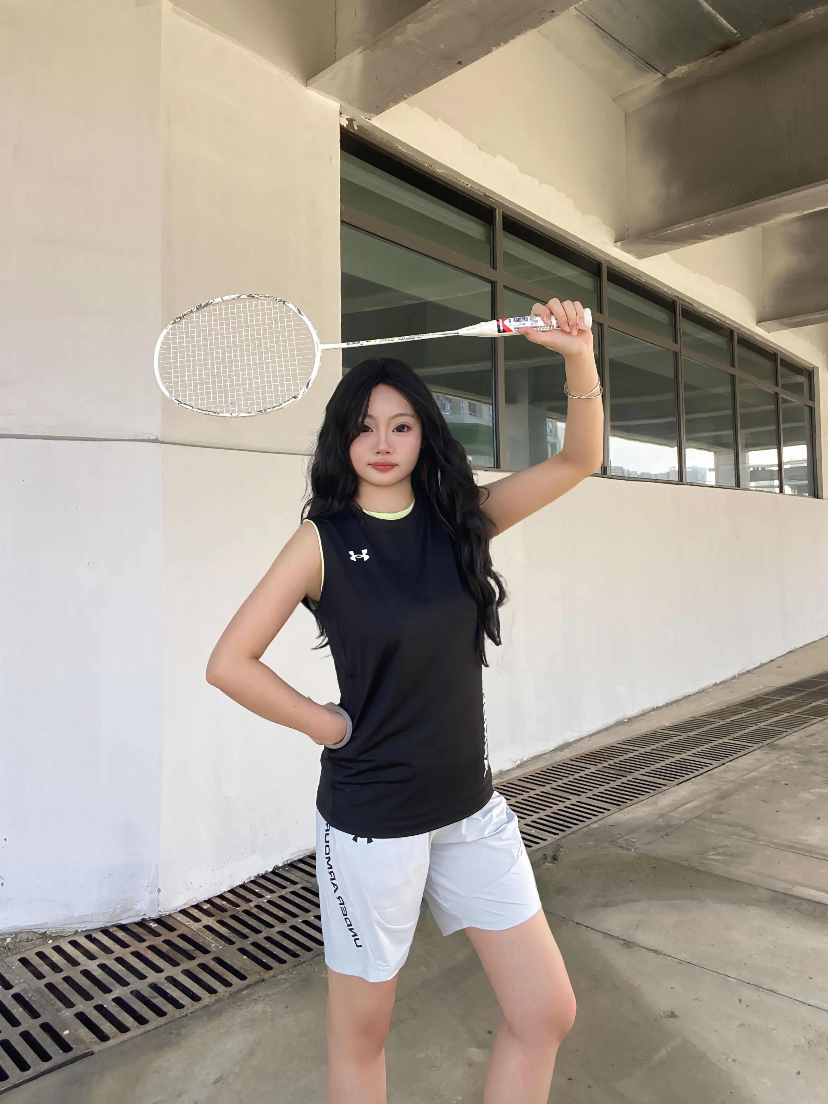 黑灰运动套装清爽又活力 无袖设计超显利落 散热又清爽 搭配勃肯鞋和白袜 休闲感满满 羽毛球拍一拿 运动少女感还不被我拿捏 日常打球、健身运动直接套上 微胖姐妹也能轻松驾驭~
