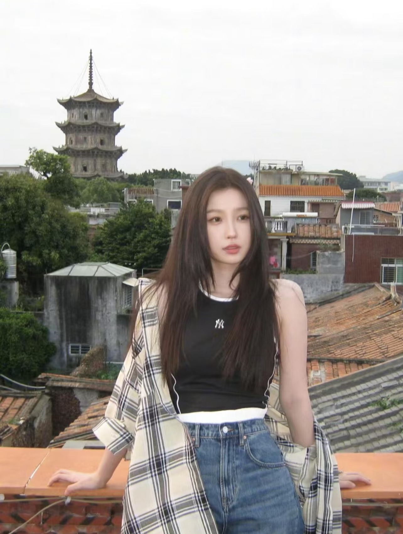 被欣欣子这套狠狠拿捏住了!格纹衬衫 + 小背心 + 直筒牛仔裤,看起来毫不费力,实则全是小心机,普通人也能轻松复制~ 什么叫“不费力的时髦”?这件oversize格纹衬衫就是答案——松松垮垮挂在身上,慵懒感立刻拉满。内搭一件撞色背心,不经意露出腰线,正好把宽松平衡得刚刚好。下身搭高腰直筒牛仔裤,腿长一键拉伸,再踩双休闲板鞋,清爽又舒服。 Citywalk、探店拍照、宅家追剧,随手一套就有同款松弛氛...
