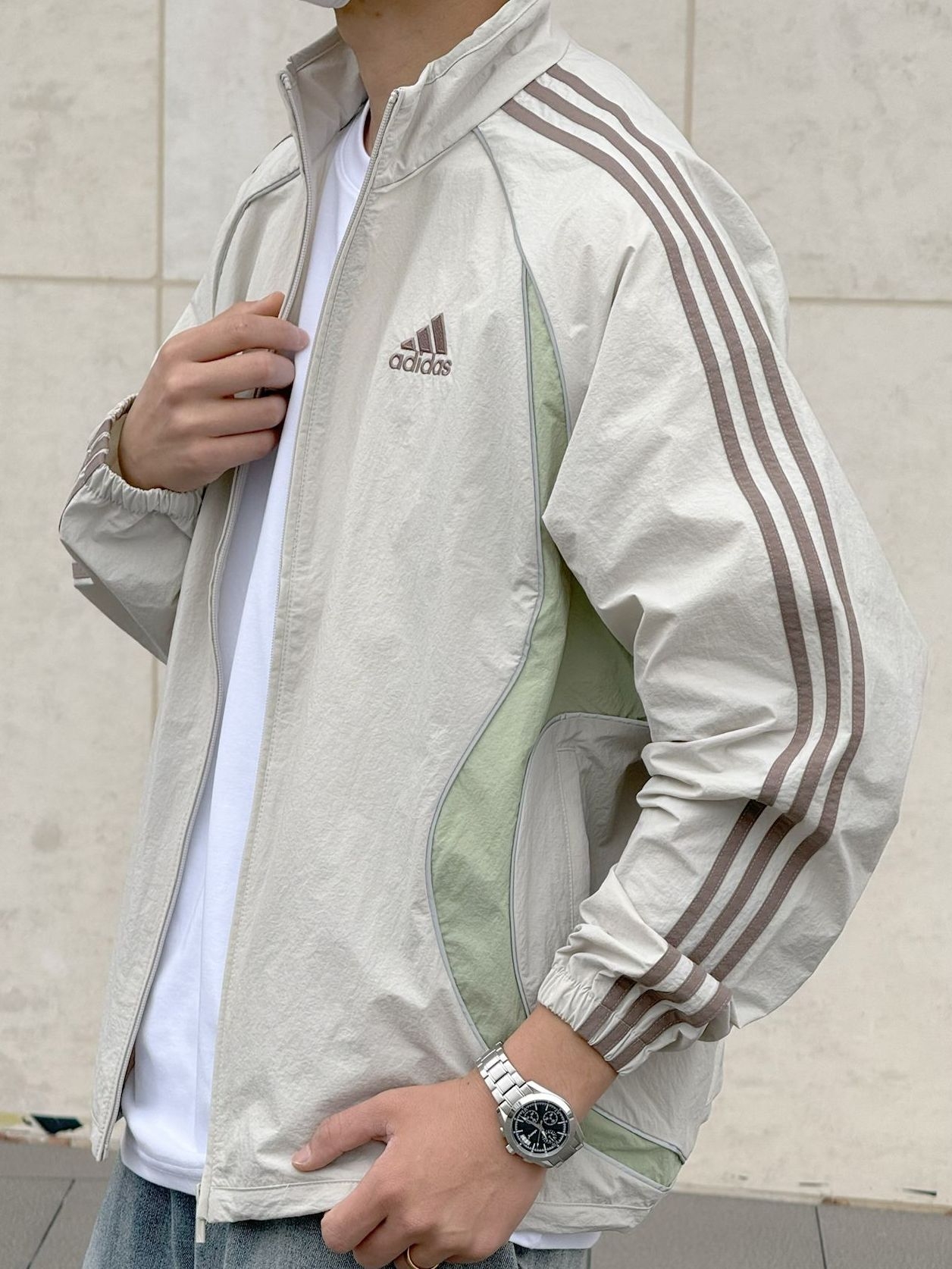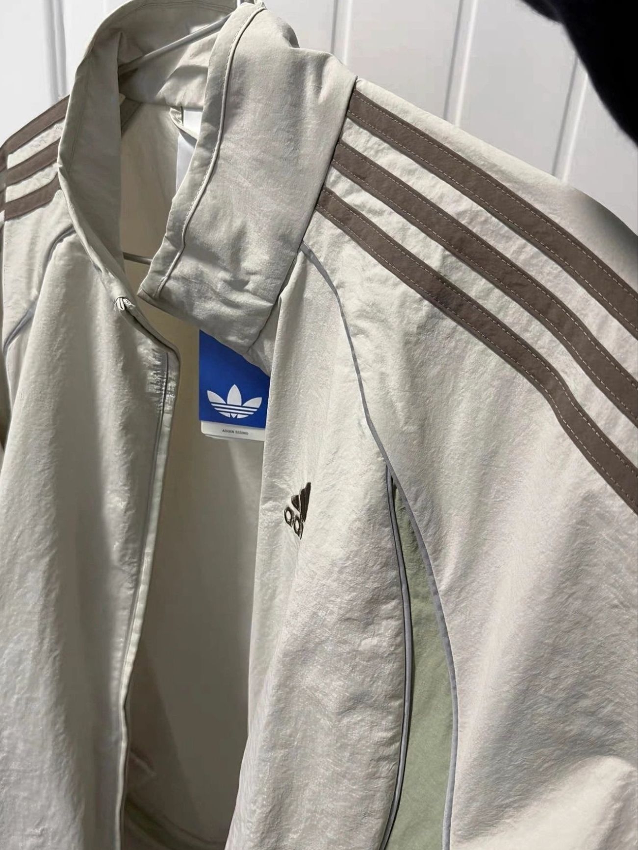 神仙配色+经典设计:米白底色搭配莫兰迪灰棕三条纹与清新绿拼色,视觉层次极其丰富,既高级又耐看,完全不挑人。立领剪裁利落精神,敞开穿是随性的美式复古风,拉上拉链则是干净的运动感,一衣多穿。 全能面料:采用轻薄透气的梭织科技面料,速干抗皱还耐造。春秋防风、夏季可作防晒衣,四季实穿率极高,洗完晾干即穿,超省事儿。#阿迪达斯 神仙版型:宽松落肩剪裁对各种身材超友好。能巧妙修饰溜肩、窄肩等身形短板,藏肉...
