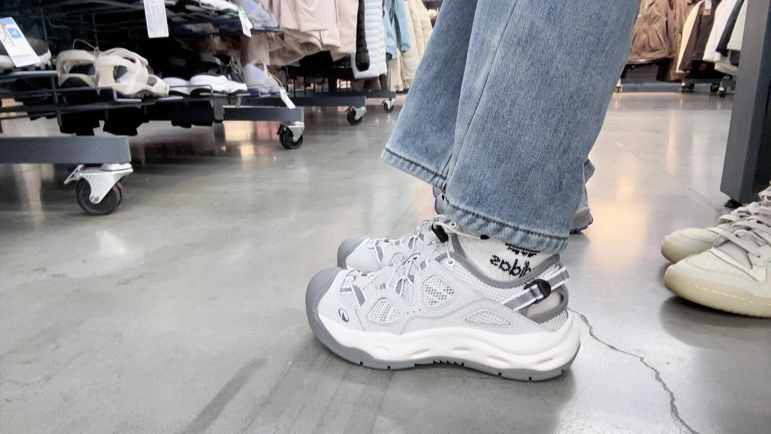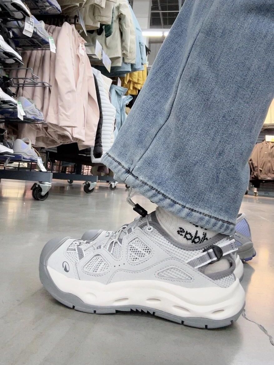 这是户外神搭子吧,不管是山间小道还是溪流深处,通通轻松拿捏。5毫米颗粒状防滑鞋底,就像给脚装上了小吸盘,湿滑石头、松软沙滩,走上去稳如泰山,安全感直接拉满💯 而且这鞋透气一绝,三明治网面设计,让脚丫子能自由呼吸,长时间暴走也不闷热。EVA中底超软乎,踩下去就像踩在云朵上☁ 回弹性也超棒,日行两万步都不累~ 重点是,它颜值还特高,极简灰白色调,山系风拉满,搭配阔腿裤或者彩色长袜,出片率超高📷 性价比...