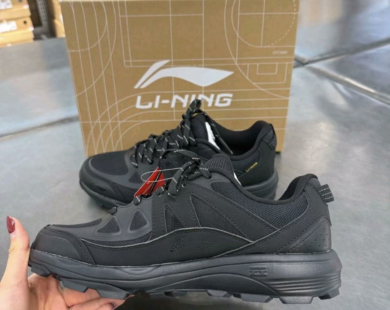 Hello!今天我来做开箱分享的是 #李宁 高达系列的的一双新款低帮的户外休闲鞋 全黑的鞋面我来挑战一下~ 整体鞋身的做工是用到了皮革和网面材质,虽然不是那种特别大镂空的网面[坏笑_blue]但是现在这个天气也足够透气🤭 鞋身做的很修长,宽脚的我正码上脚果然有点费劲[耍帅_blue]脚背的部位有一点顶住了,大一码上脚就好 把鞋带系紧以后整体的包裹感很足,不用担心徒步走久了或者跑步🏃➡...