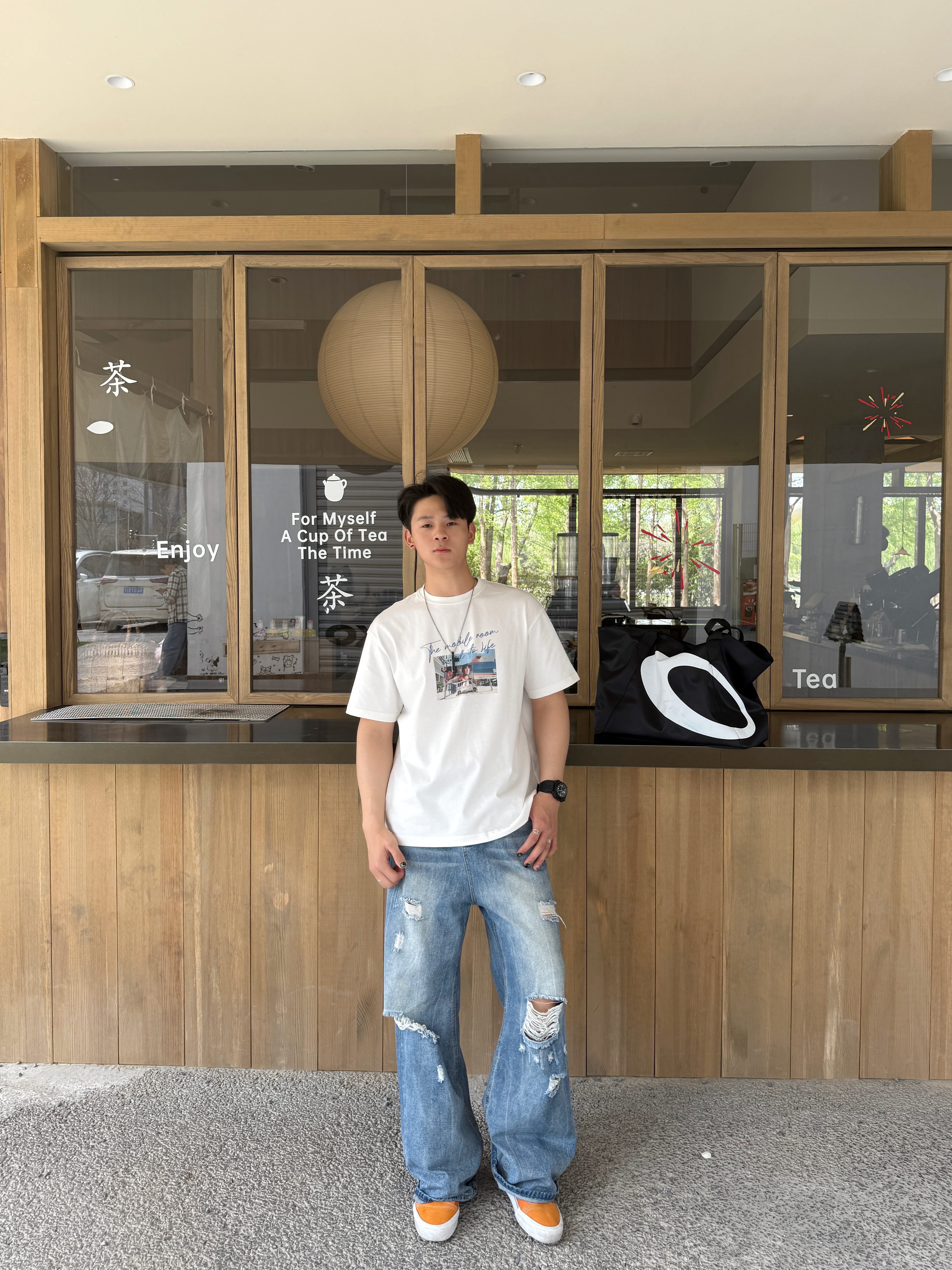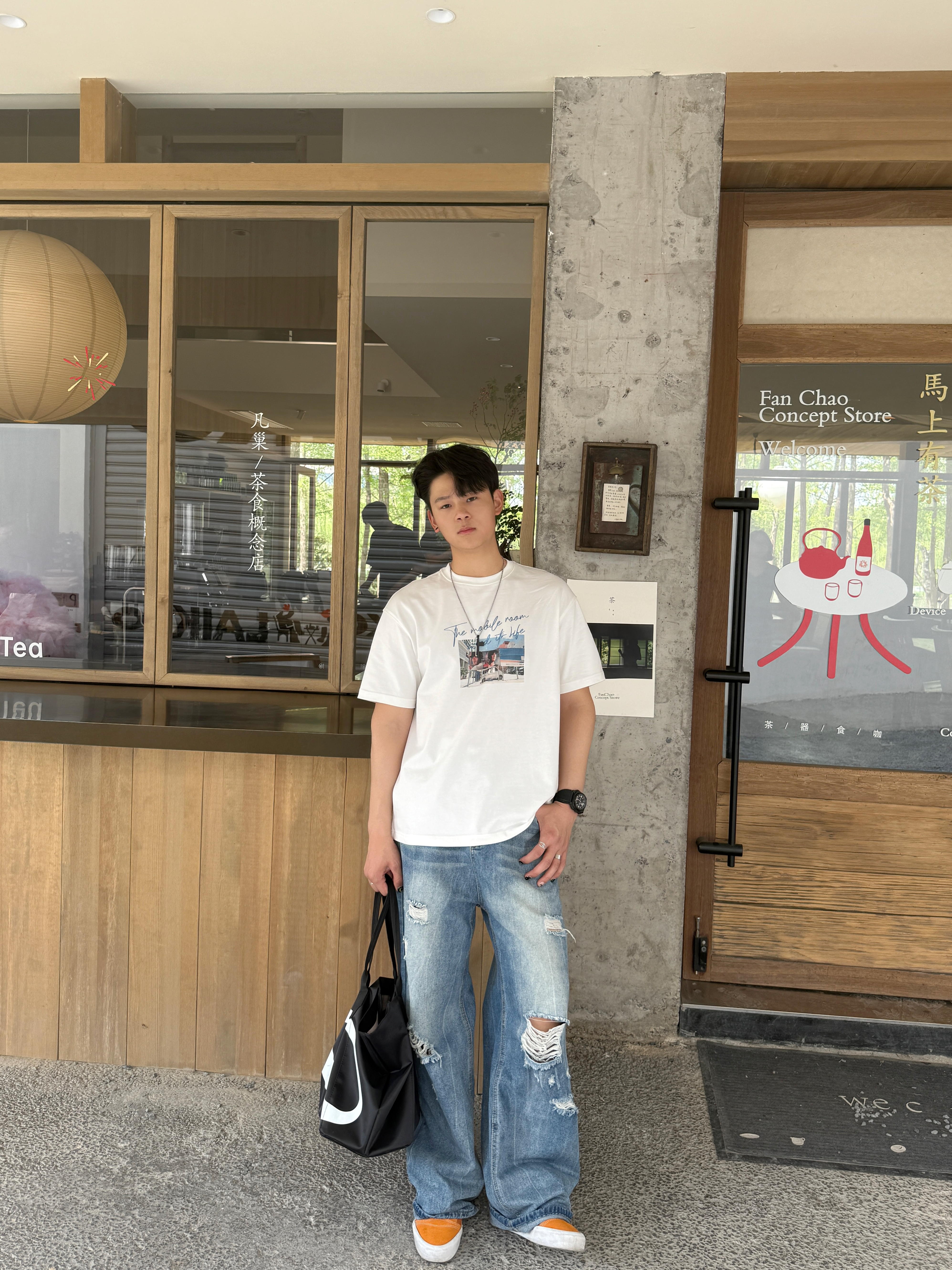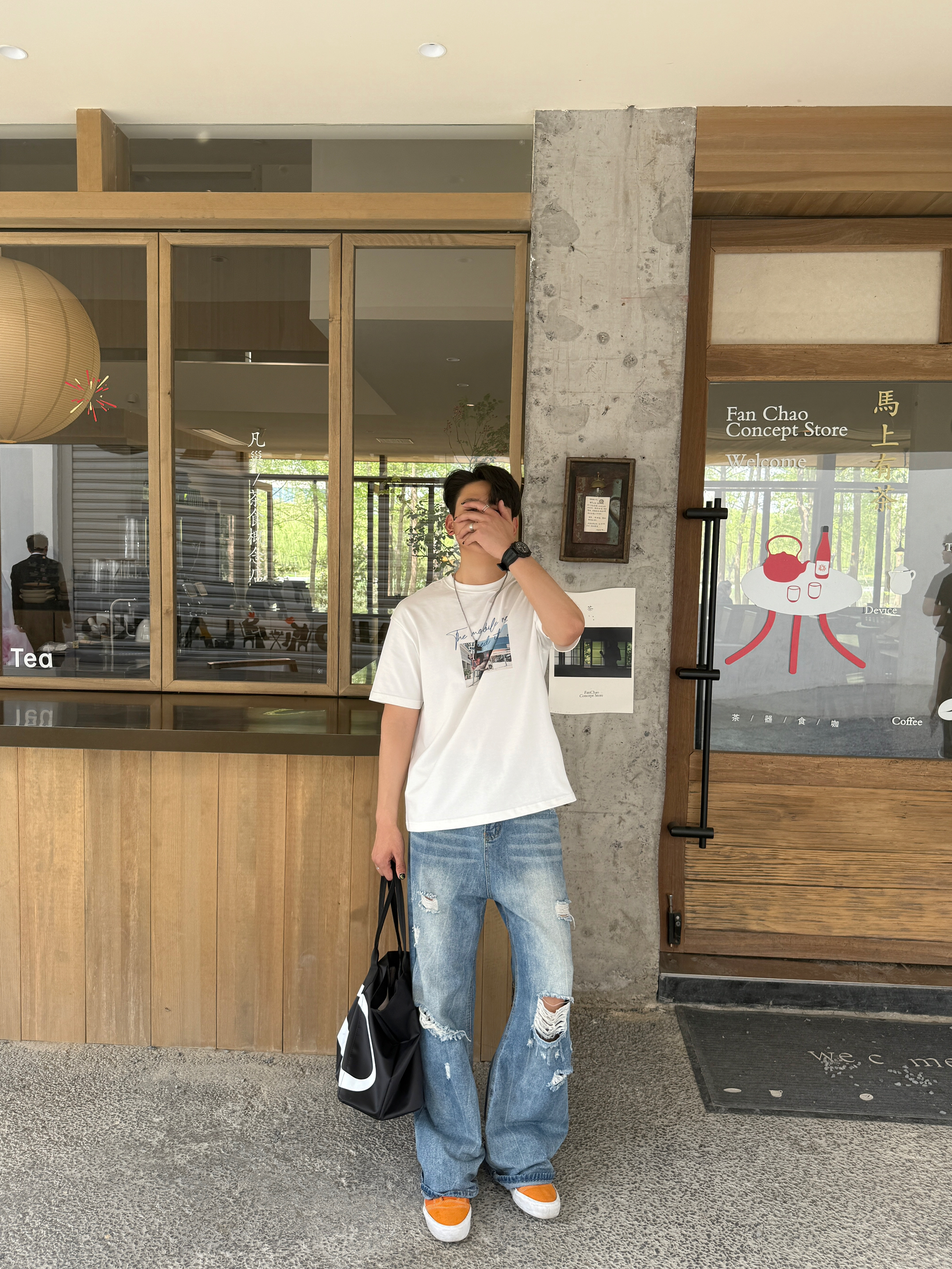 衣服如果选的对,气质那不得翻倍? 今日份ootd 上衣我选择一件图案印花的白t 裤子我选择一件美式破洞牛仔裤 破洞穿起来凉快 美式感也十足~ 橙色的鞋子点缀整体 这样一身下来清新美式感十足~ 你认为这样穿帅不帅?