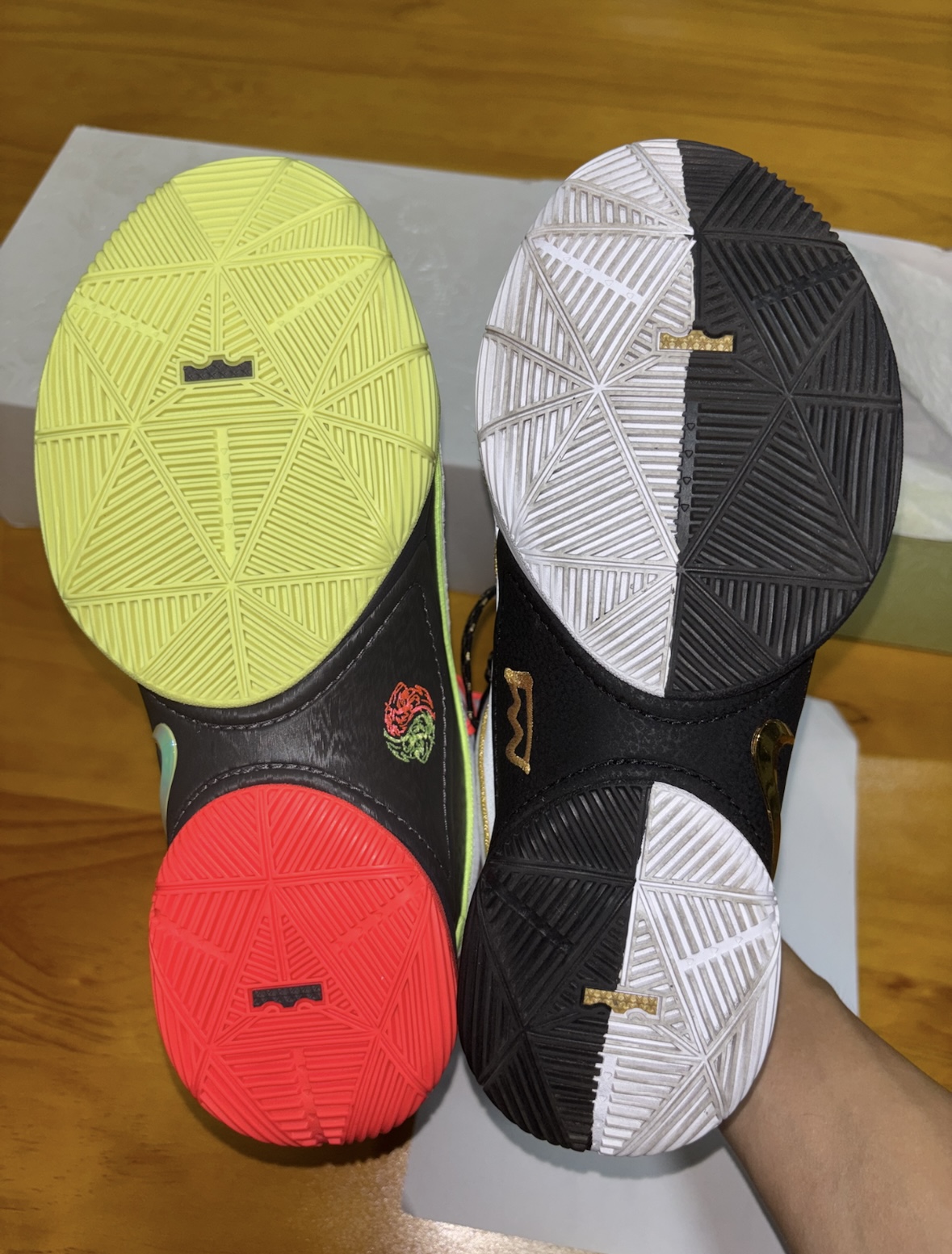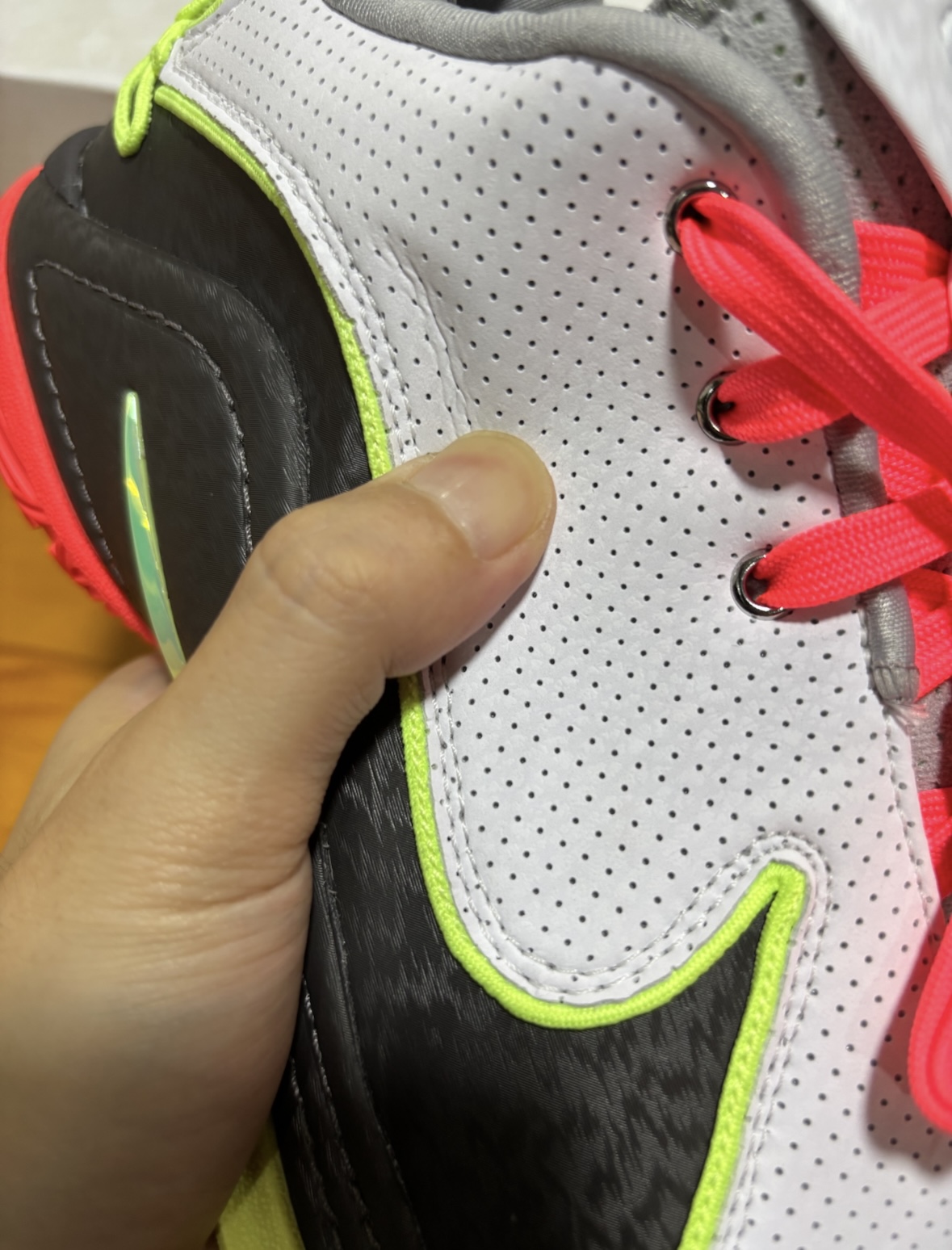 勒布朗22代首发配色已经打骨折到350块钱左右了,之前买了黑白太极配色实战起来性能挺全面的,这是你能买到钩子最高配置和性价比的球星签名鞋了,目前这个首发配色最便宜!(穿上附带死亡之瞳技能包) 首发配色的面料是合成革,图片看起来有些廉价,但实物到手质感还是可以的,挺柔软的,23代中底已经把气垫取消了,我还是更喜欢踩气垫那种中底反馈。