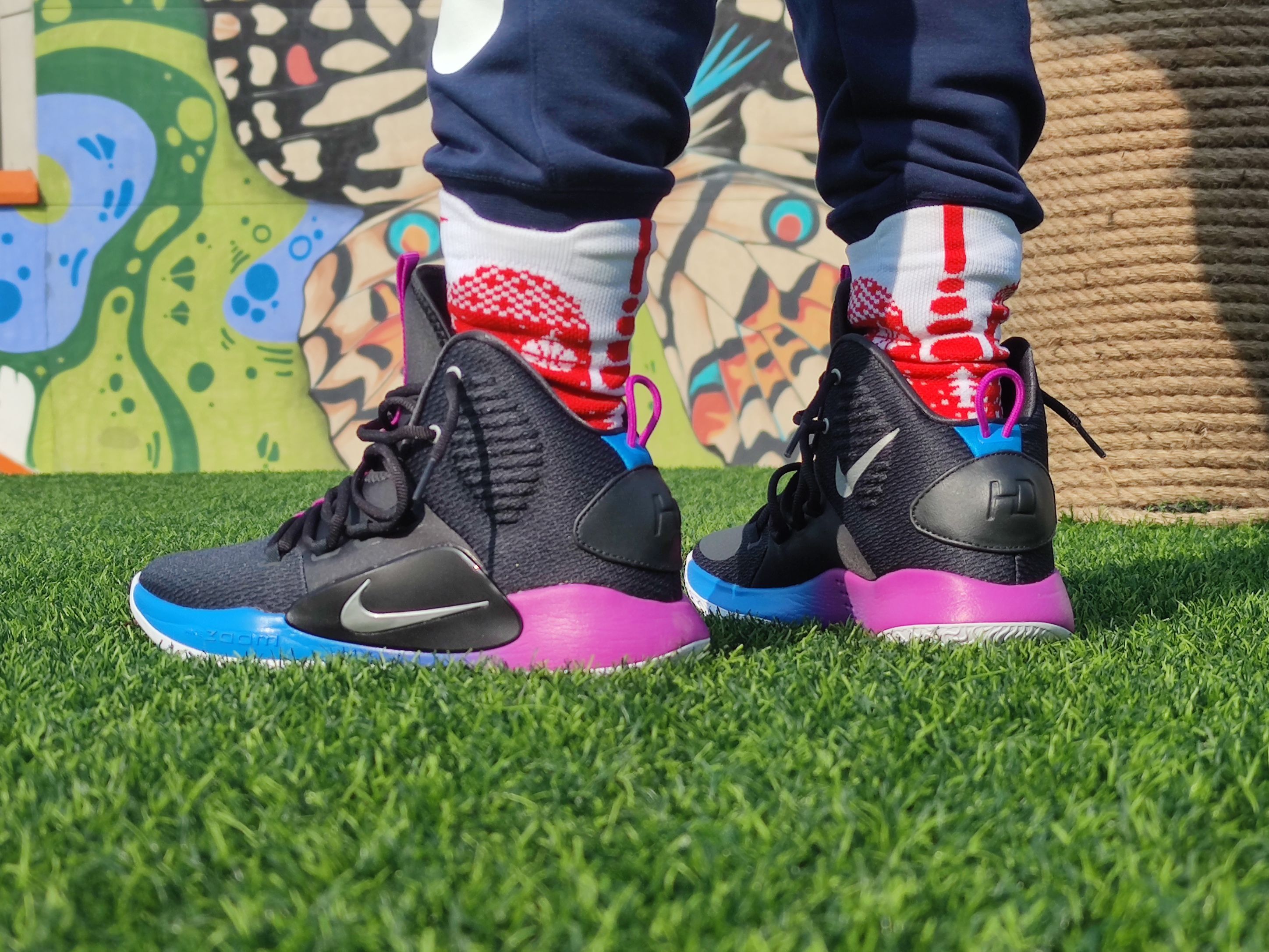 这双hd2018高帮实战感受确实不错,并且现在价格也挺合适的,中底的渐变紫色有股南海岸的意思。